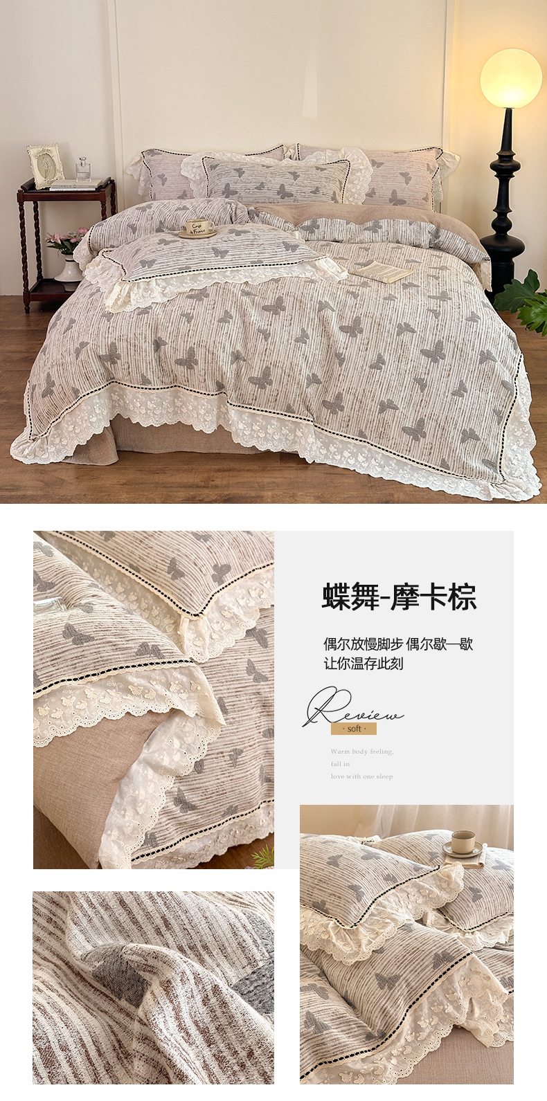 (总)淑女公社家纺 2025秋冬新款法式空气提花皱皱纱四件套-蝶舞,蝶舞 静谧蓝,蝶舞 摩卡棕,蝶舞 抹茶绿,蝶舞 太空灰