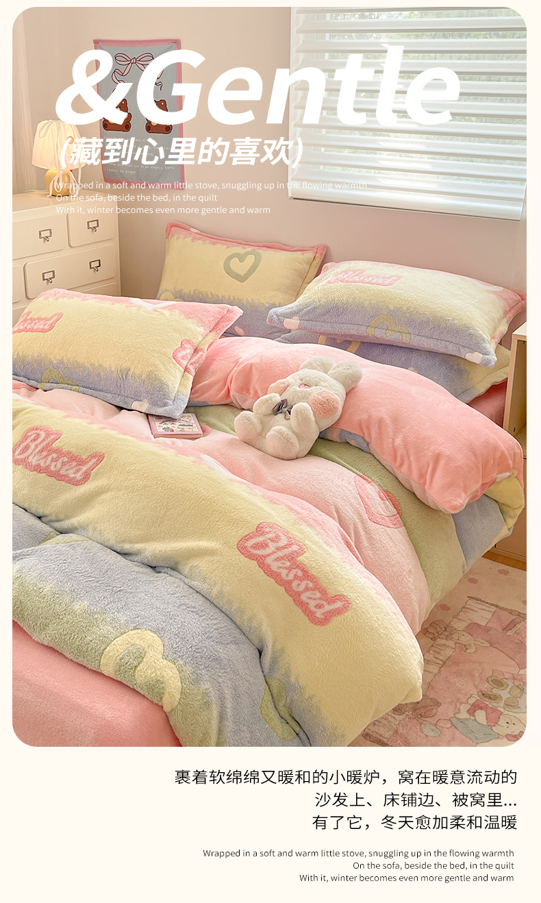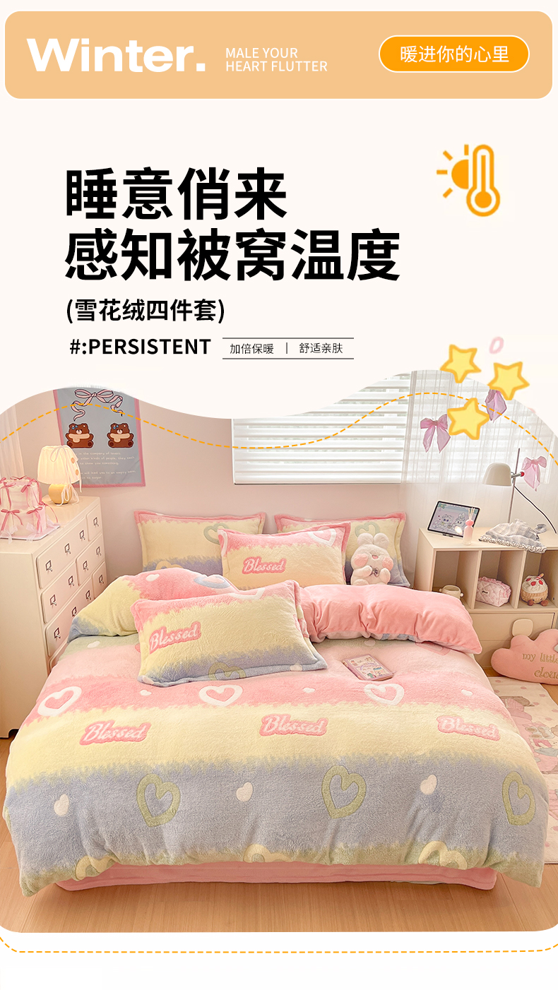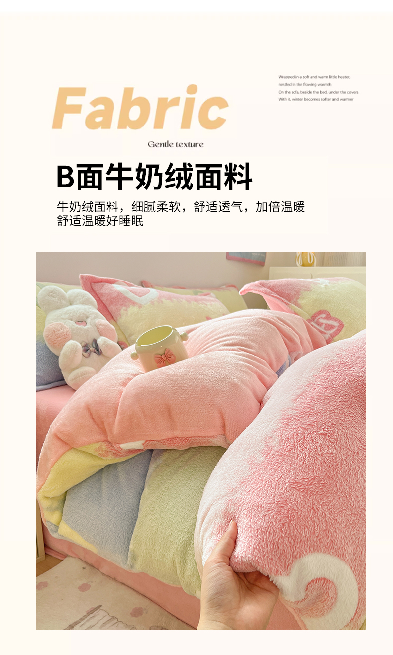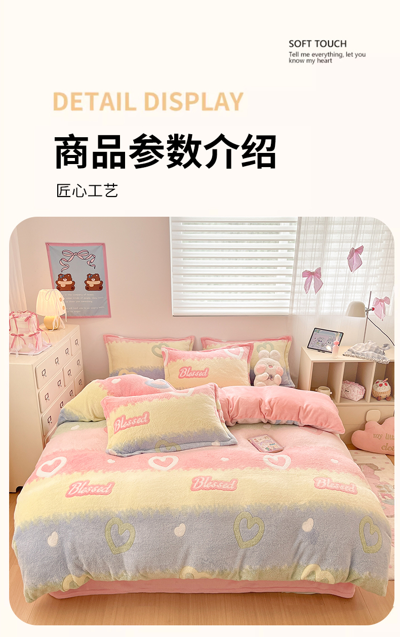 当前位置: 91家纺网 > 商品网购 > 床品套件 > 四件套 > 其它四件套 > 川悦生活 2025新款立体雪花绒印花大床四件套系列一场景一 彩虹爱语粉