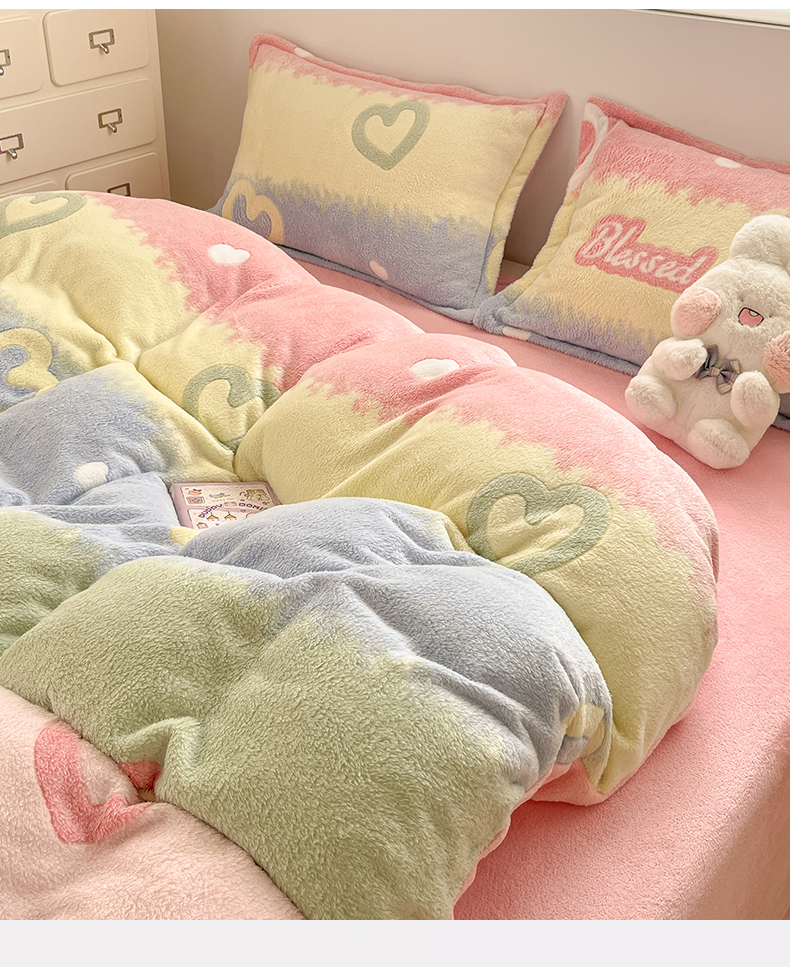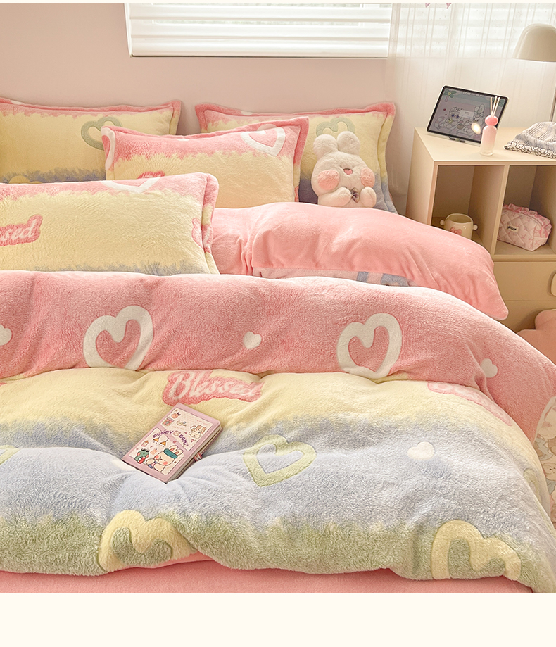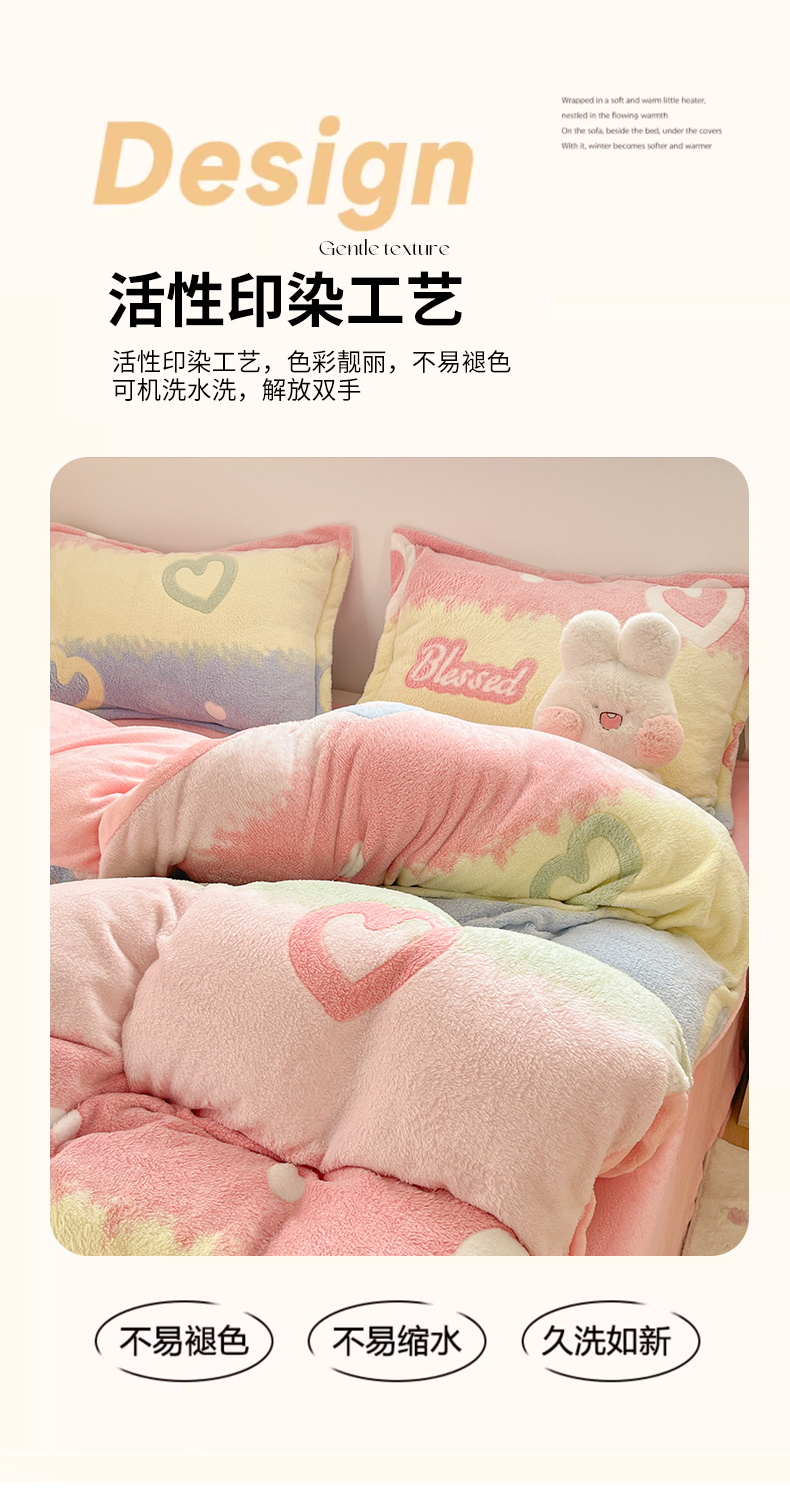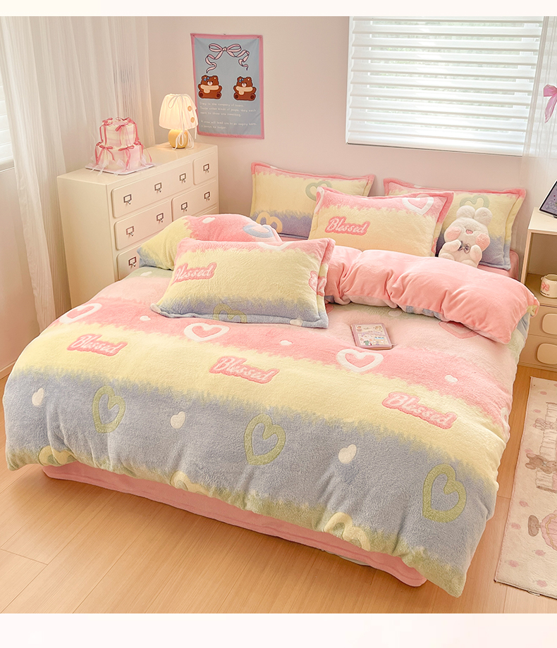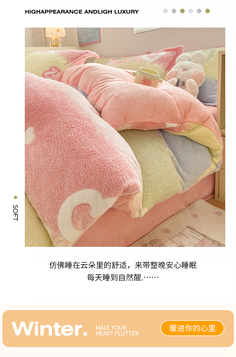 当前位置: 91家纺网 > 商品网购 > 床品套件 > 四件套 > 其它四件套 > 川悦生活 2025新款立体雪花绒印花大床四件套系列一场景一 彩虹爱语粉