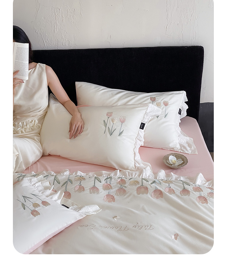 商品名称:(总)卡姿家纺 2025秋冬森系小清新简约刺绣四件套-森系郁金香