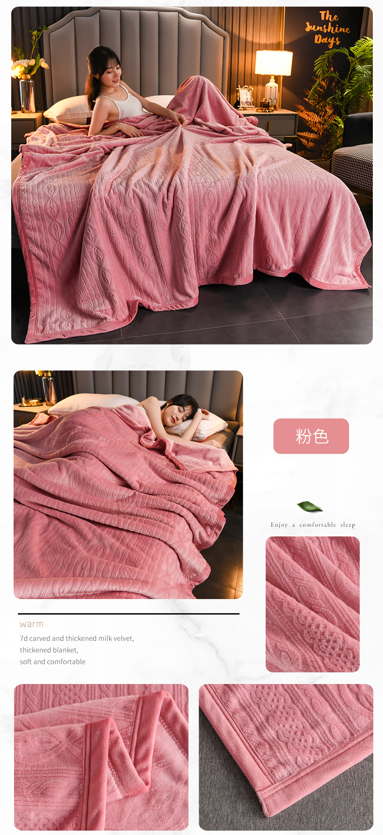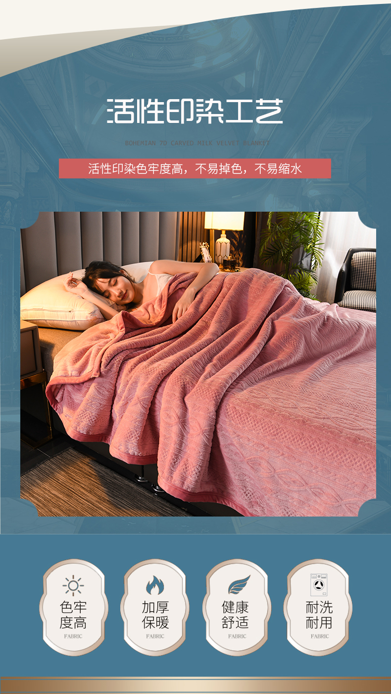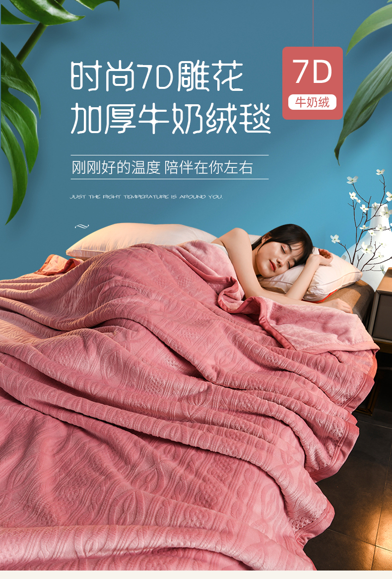 商品名称:小牛席业 2025新款7D雕花牛奶绒毛毯 粉色