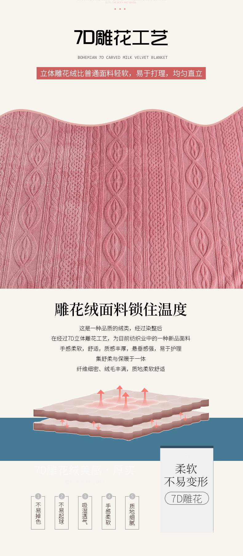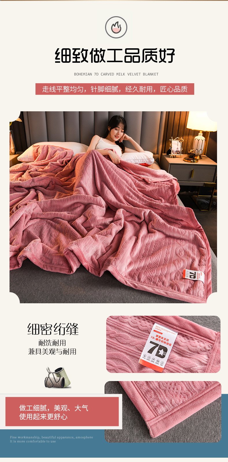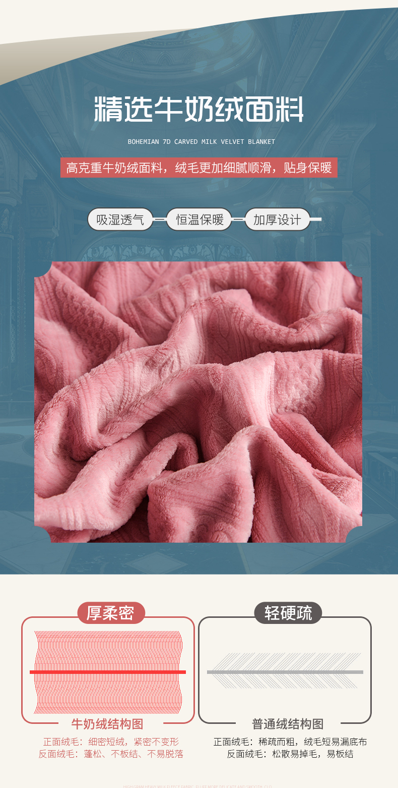 商品名称:小牛席业 2025新款7D雕花牛奶绒毛毯 粉色