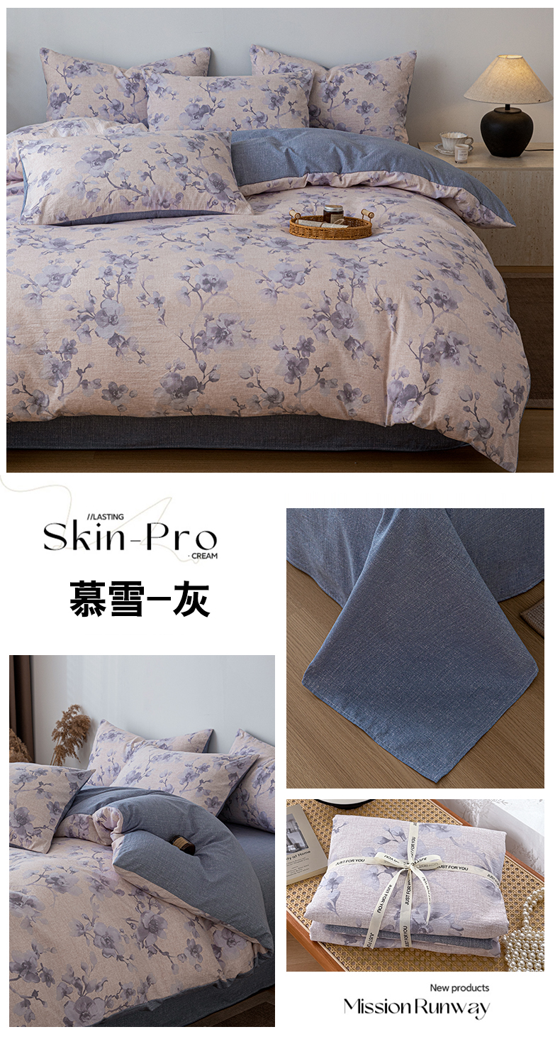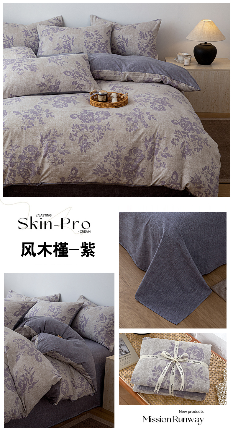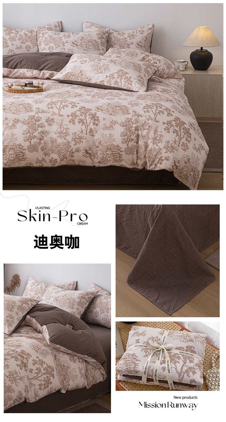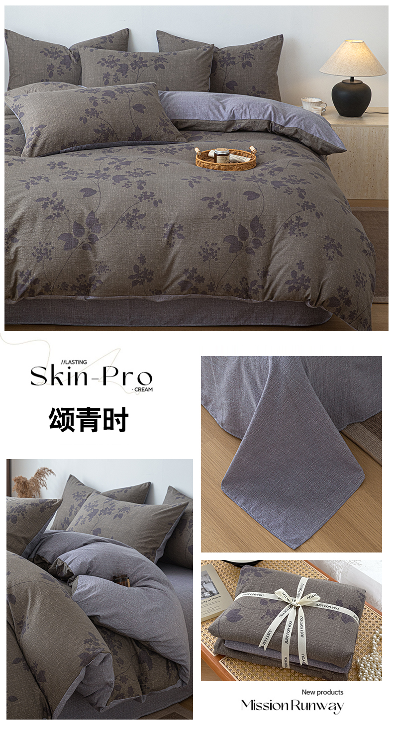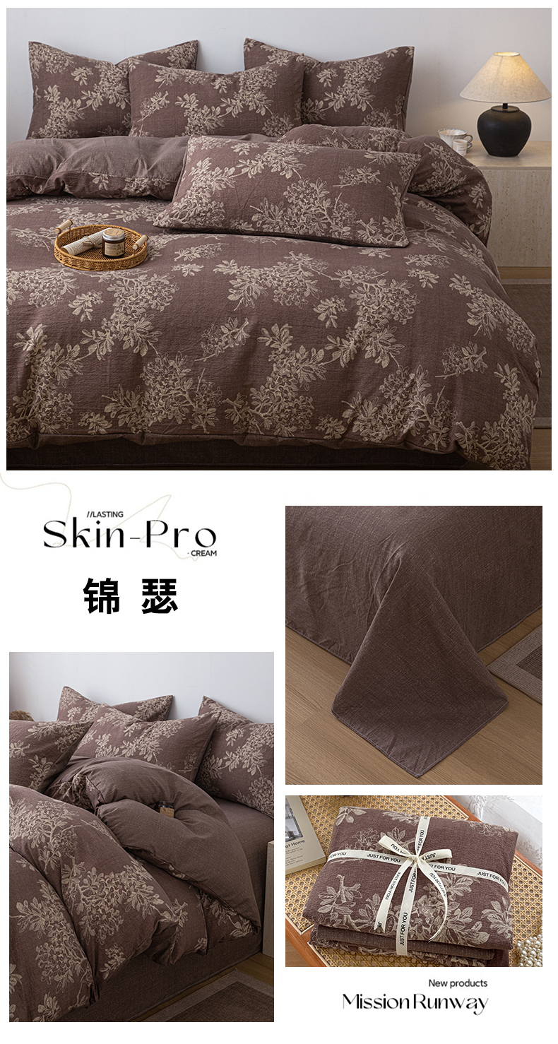 (总)芯贝儿 2025秋冬新品加厚原麻复古风亚麻皱皱双层纱水洗m四件套