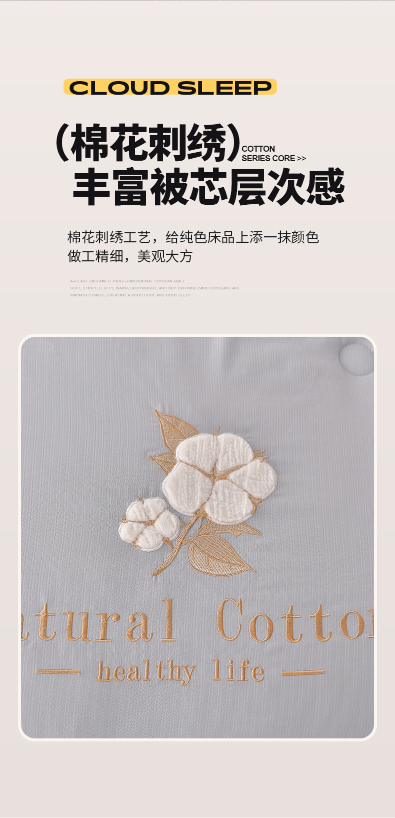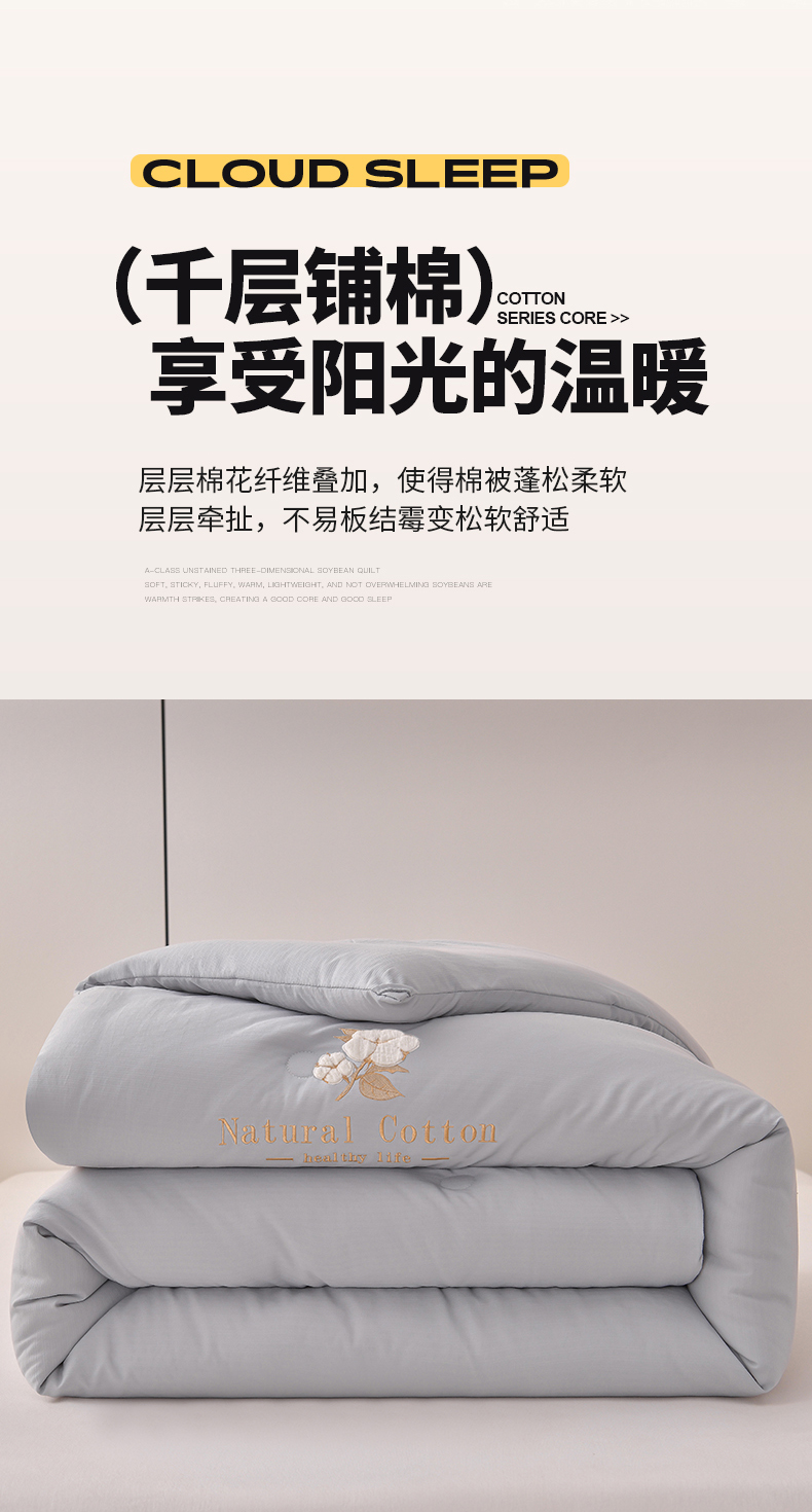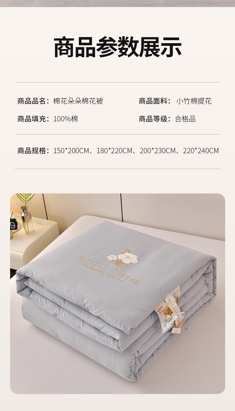 当前位置: 91家纺网 > 商品网购 > 被子 > 冬被 > 小牛席业 2025新款棉花朵朵-新疆棉花被系列 棉花朵朵-新疆棉花被(灰色)