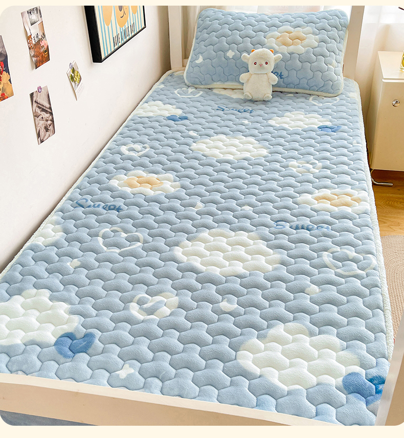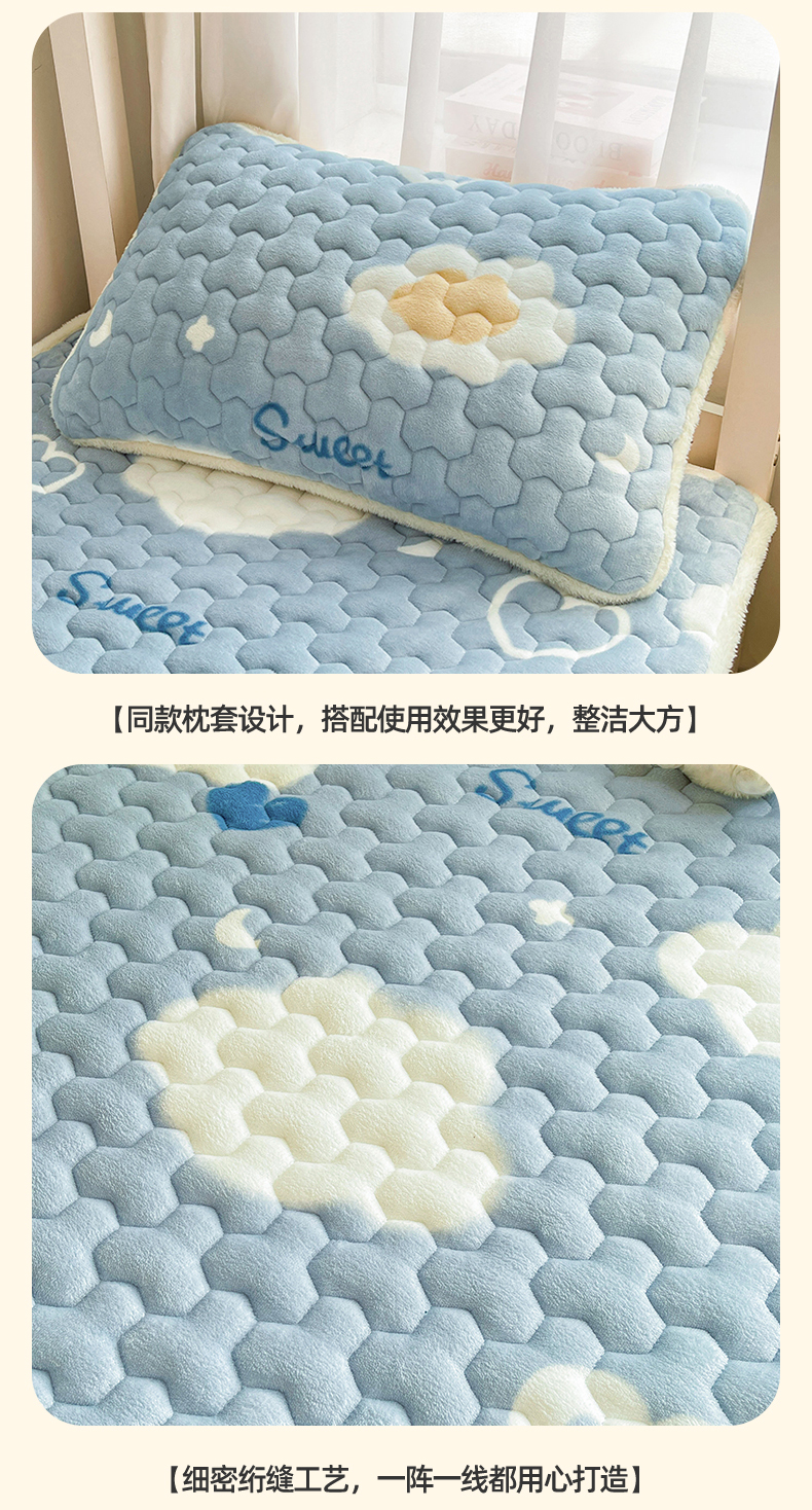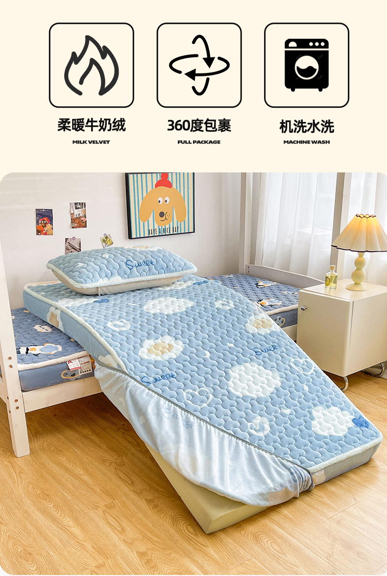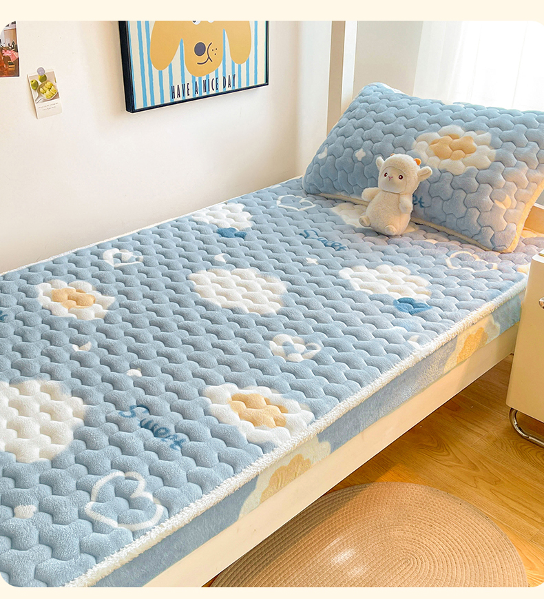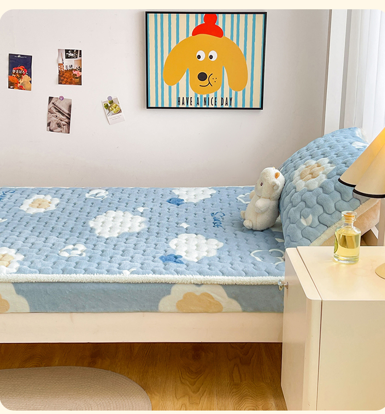 • 91家纺网 家纺一手货源 找家纺 雯豆家纺 2025新款学生上下铺加厚牛奶绒夹棉床笠宿舍大学生床垫保护套 牛奶绒夹棉床笠-爱心云