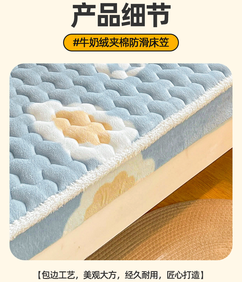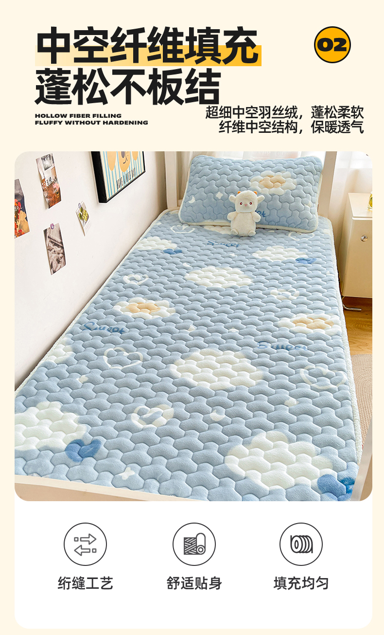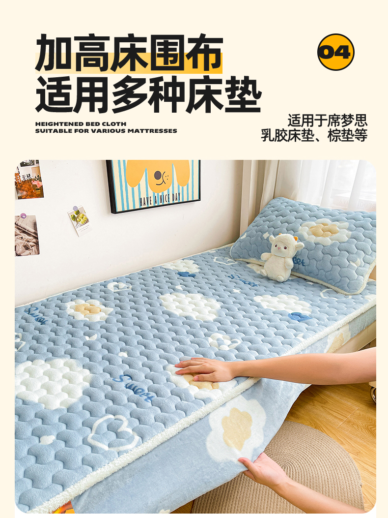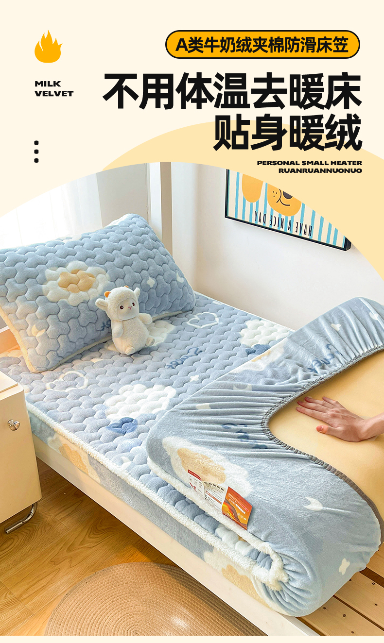 • 91家纺网 家纺一手货源 找家纺 雯豆家纺 2025新款学生上下铺加厚牛奶绒夹棉床笠宿舍大学生床垫保护套 牛奶绒夹棉床笠-爱心云