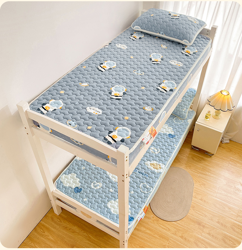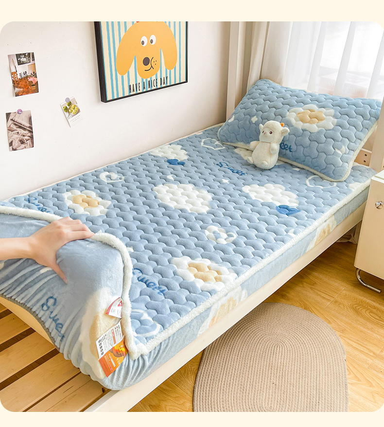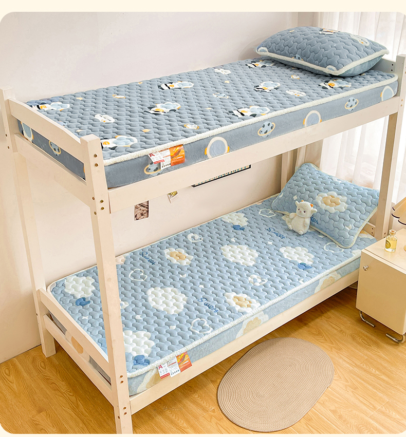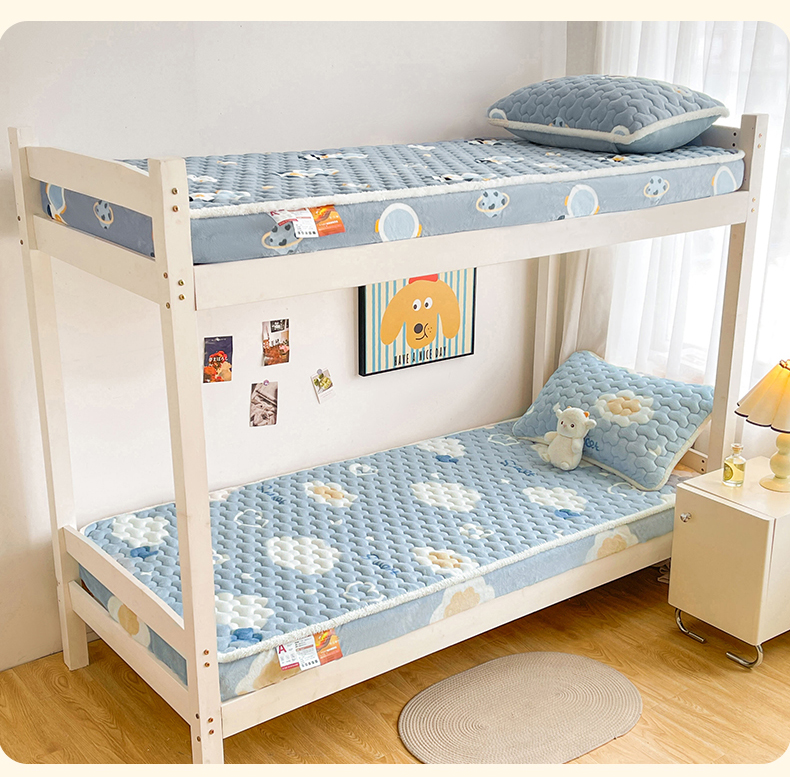 雯豆家纺 2025新款学生上下铺加厚牛奶绒夹棉床笠宿舍大学生床垫保护套 牛奶绒夹棉床笠-爱心云