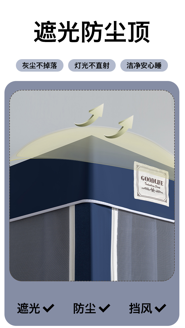 当前位置: 91家纺网 > 商品网购 > 床上用品 > 蚊帐 > 学生蚊帐 > 新太阳蚊帐 2025新款学生上下铺高精密面料强遮光蚊帐(6面全包 有底款) 高精密面料强遮光-蓝
