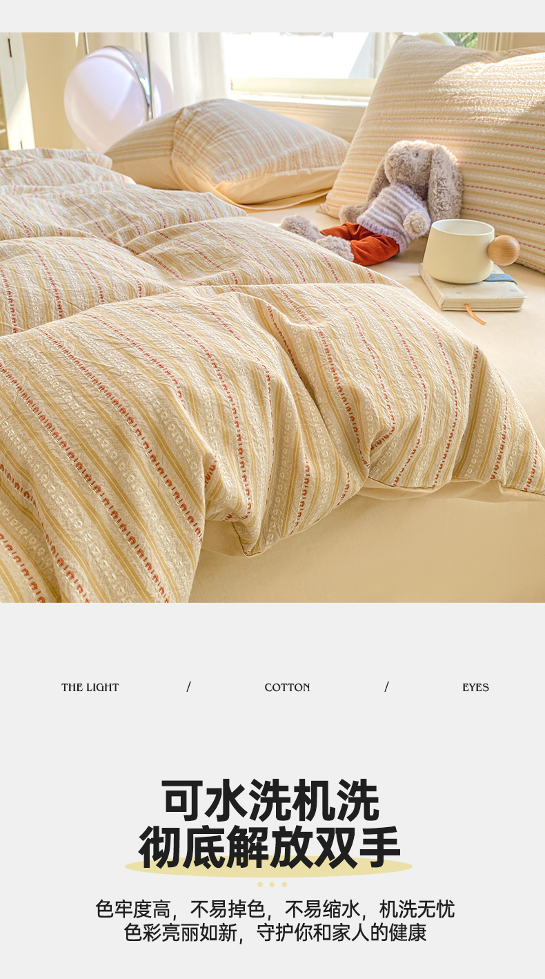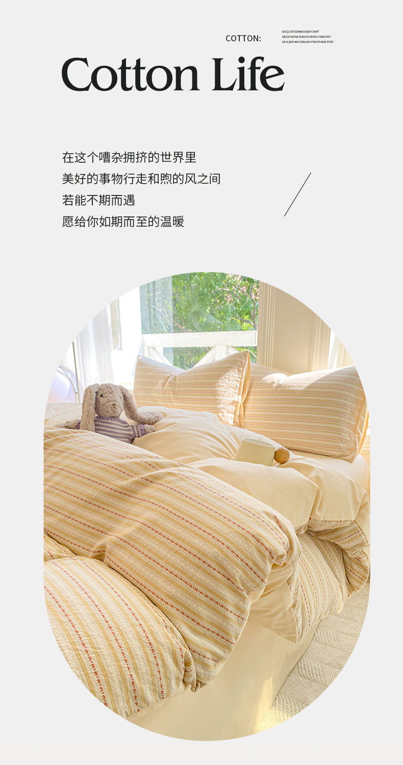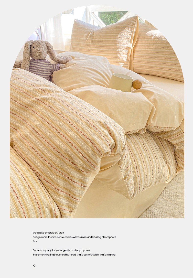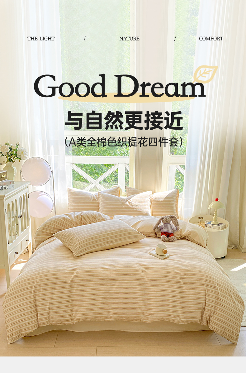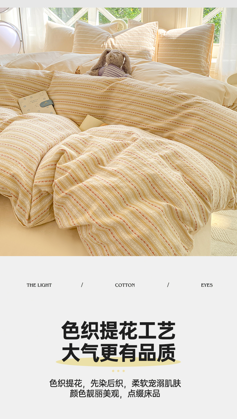 当前位置: 91家纺网 > 商品网购 > 床品套件 > 四件套 > 色织四件套 > 灰鲸 2025新款A类全棉纯棉色织提花四件套 美拉-杏
