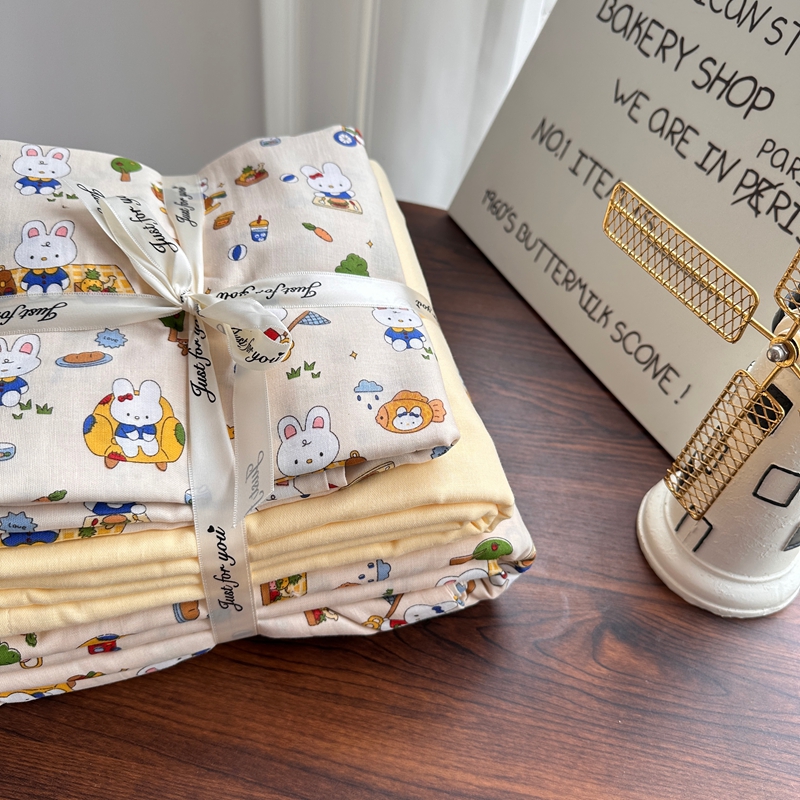当前位置: 91家纺网 > 商品网购 > 床品套件 > 四件套 > 双层纱四件套 > 爱思佳 2024新款A类母婴全棉双层纱印花四件套直播热卖系列-系列一 野餐兔