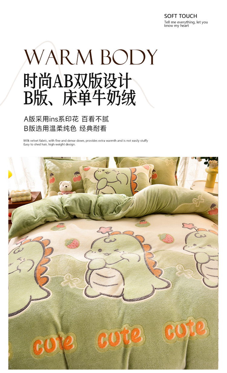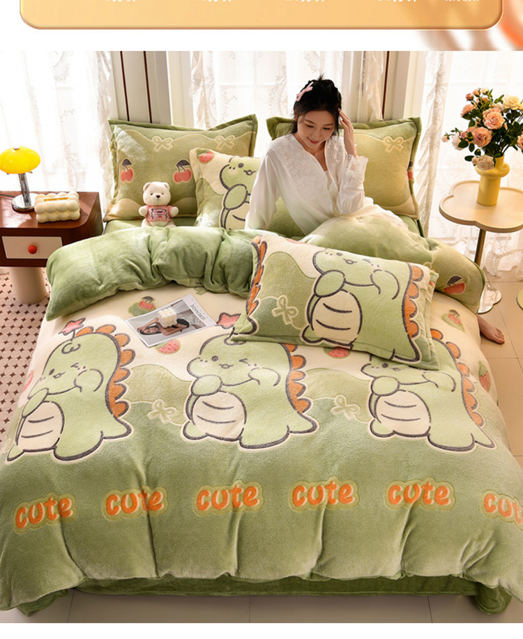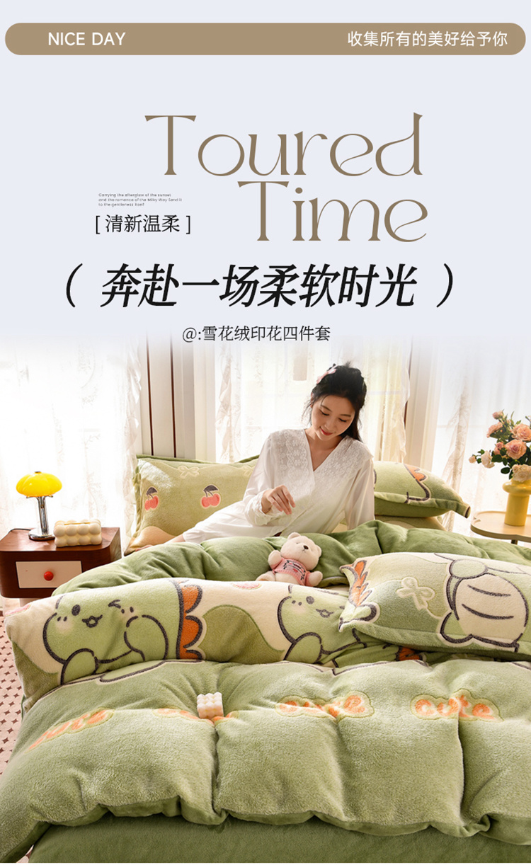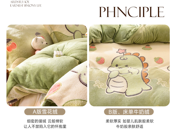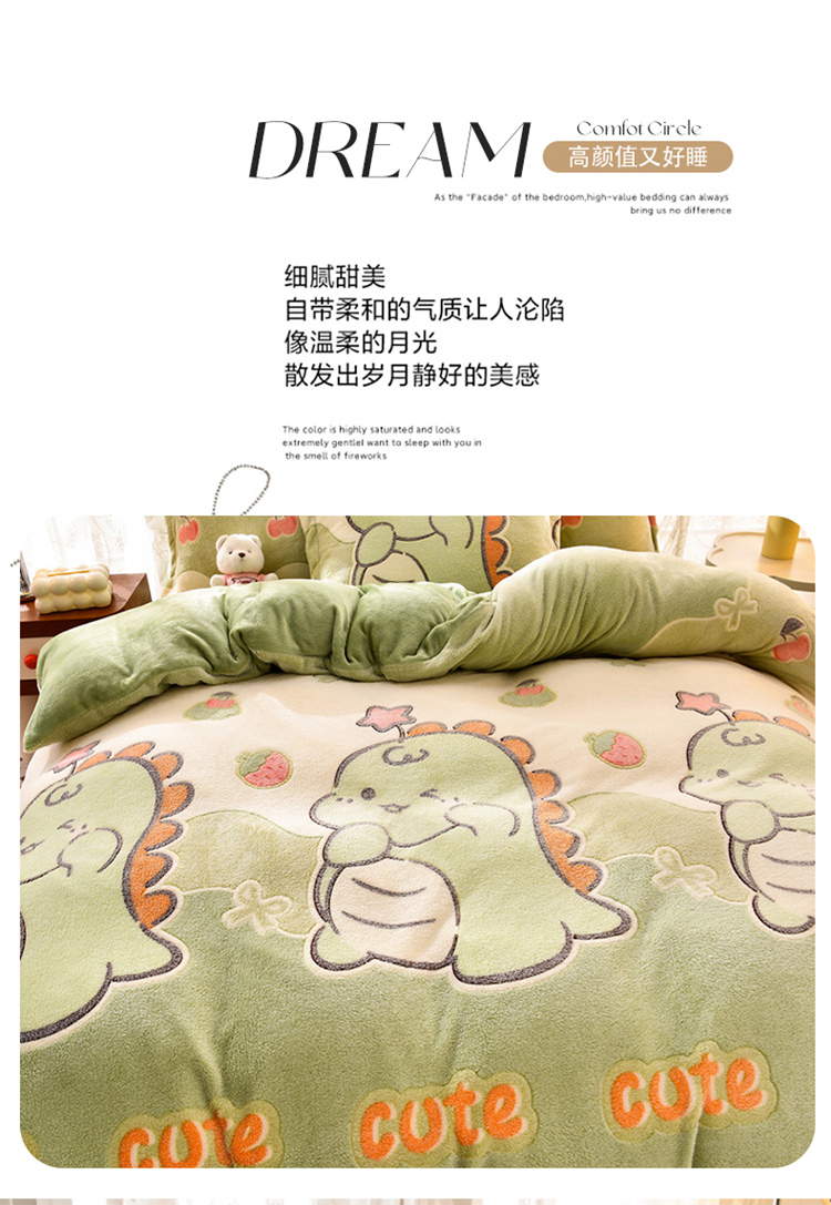 当前位置: 91家纺网 > 商品网购 > 床品套件 > 四件套 > 其它四件套 > 牵梦萦 2025新款雪花绒小清新印花四件套 小恐龙