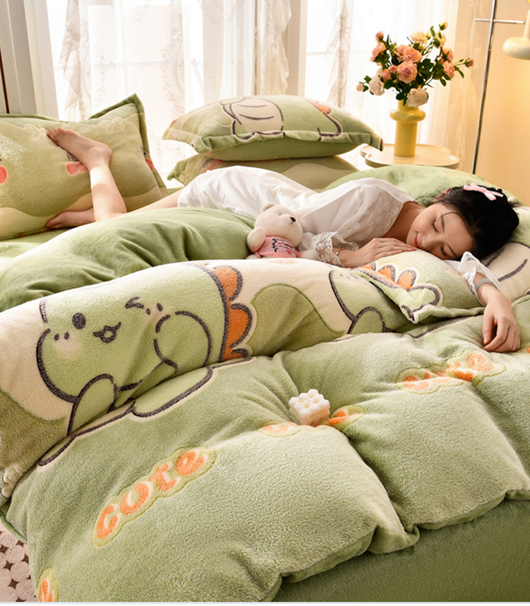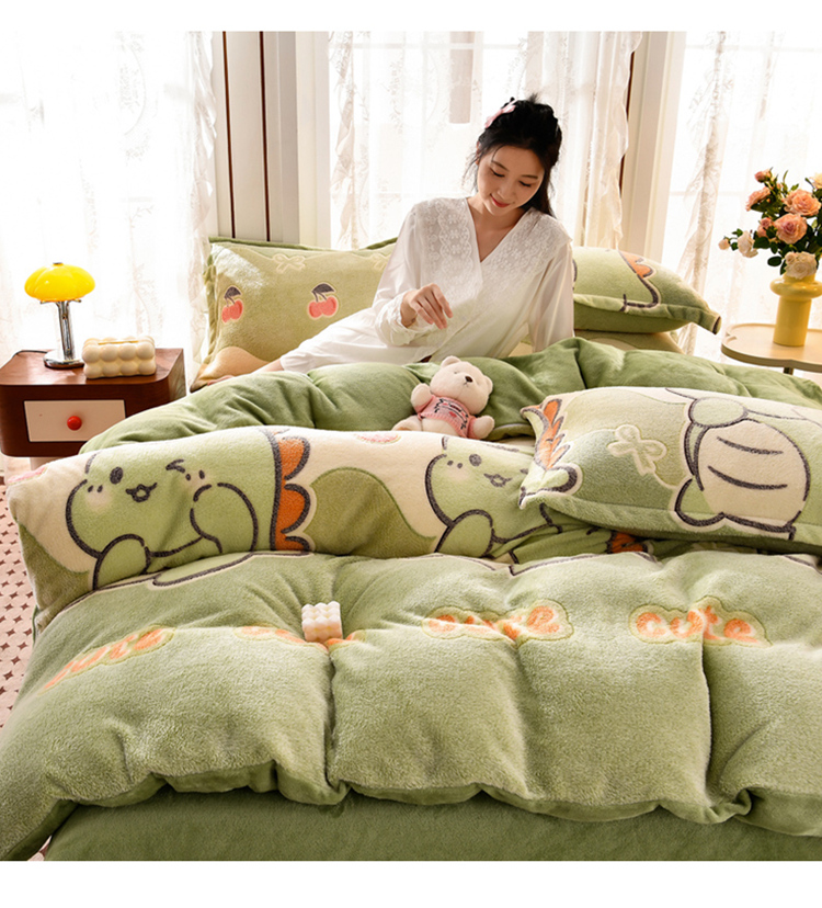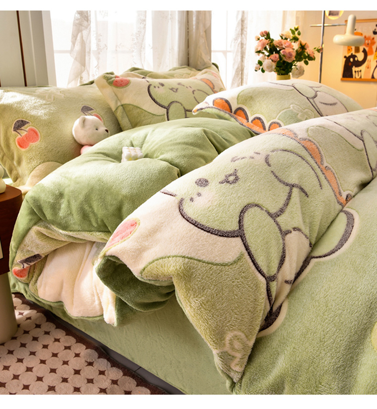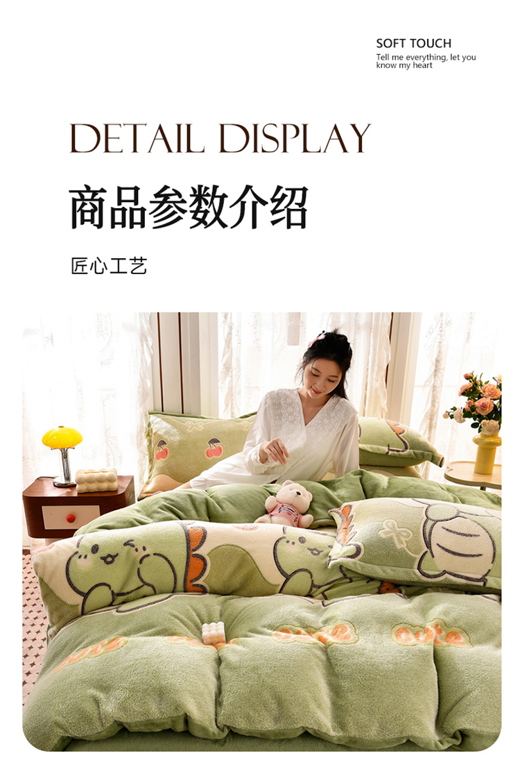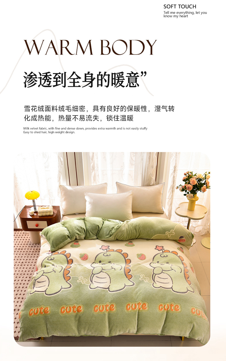 当前位置: 91家纺网 > 商品网购 > 床品套件 > 四件套 > 其它四件套 > 牵梦萦 2025新款雪花绒小清新印花四件套 小恐龙