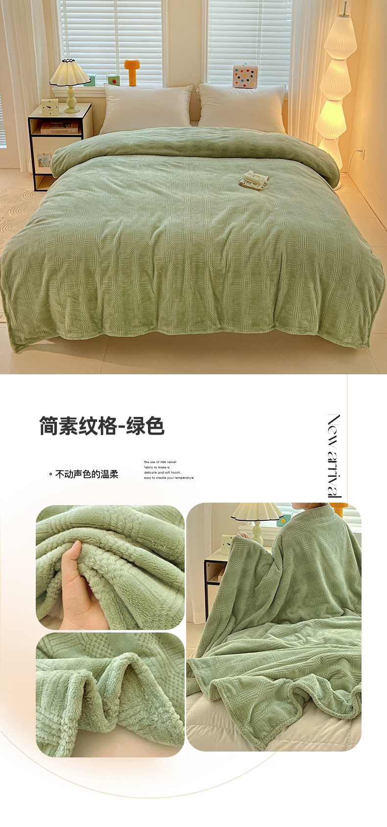 (总)美洲琳 2025新款提花简约珊瑚绒法莱绒毯毛毯毯子,白色,粉色,咖色,蓝灰,绿色,深灰