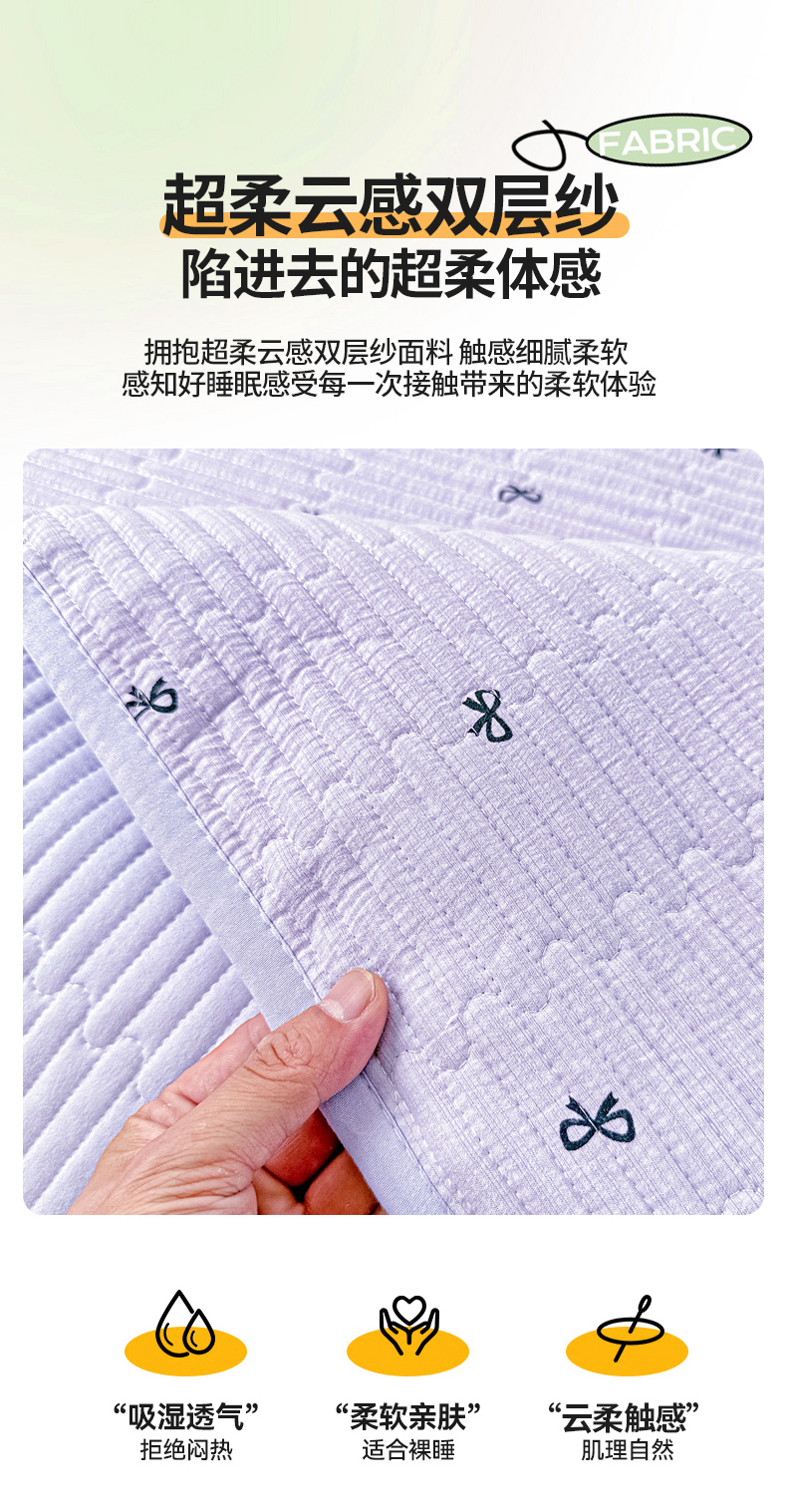 • 91家纺网 家纺一手货源 找家纺 恒尚居 2025新款双层纱床盖床盖单品单床盖云感夹棉床单床垫软床垫-四季款【系列二】 【紫萱】双层纱