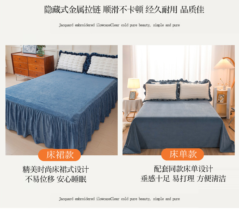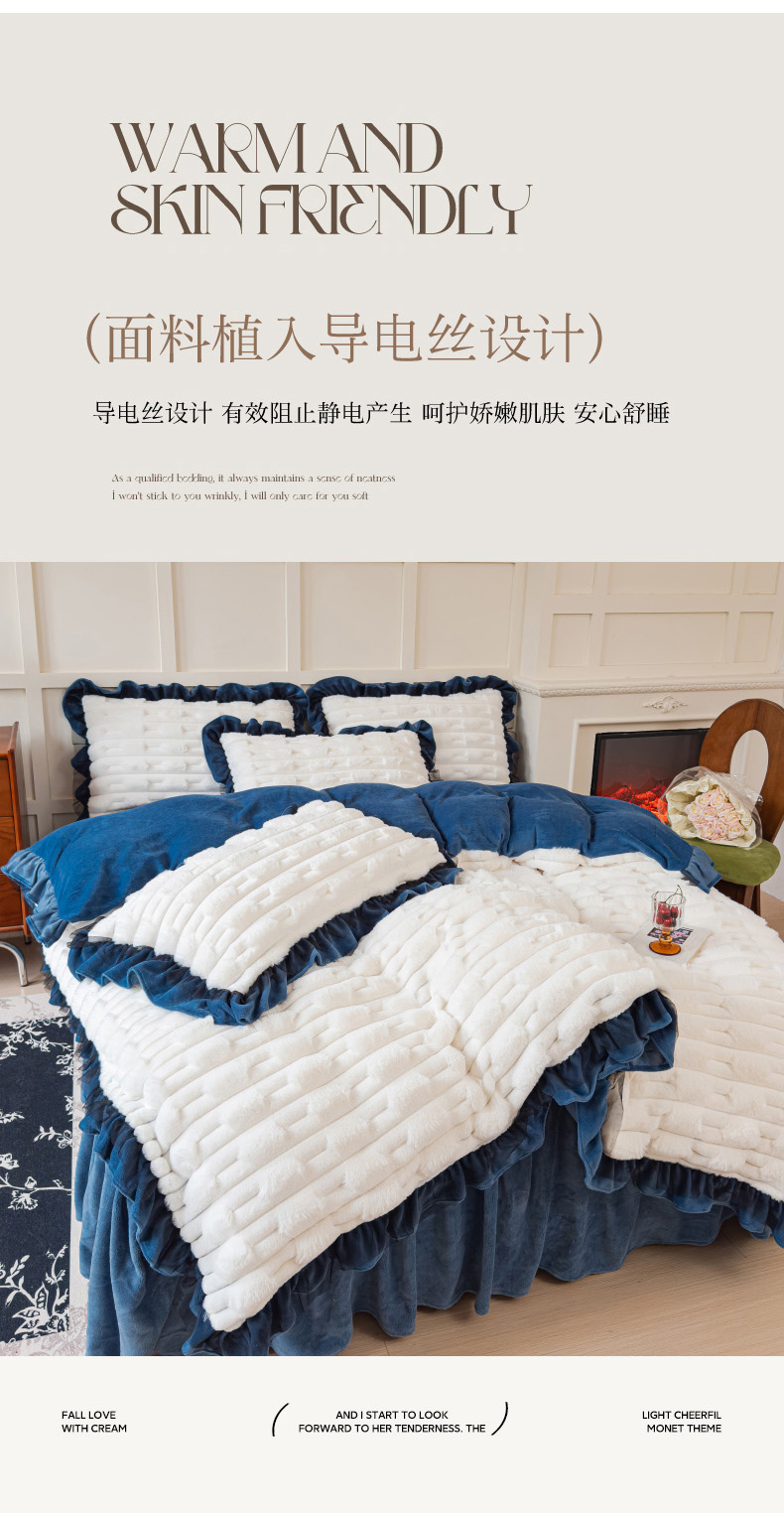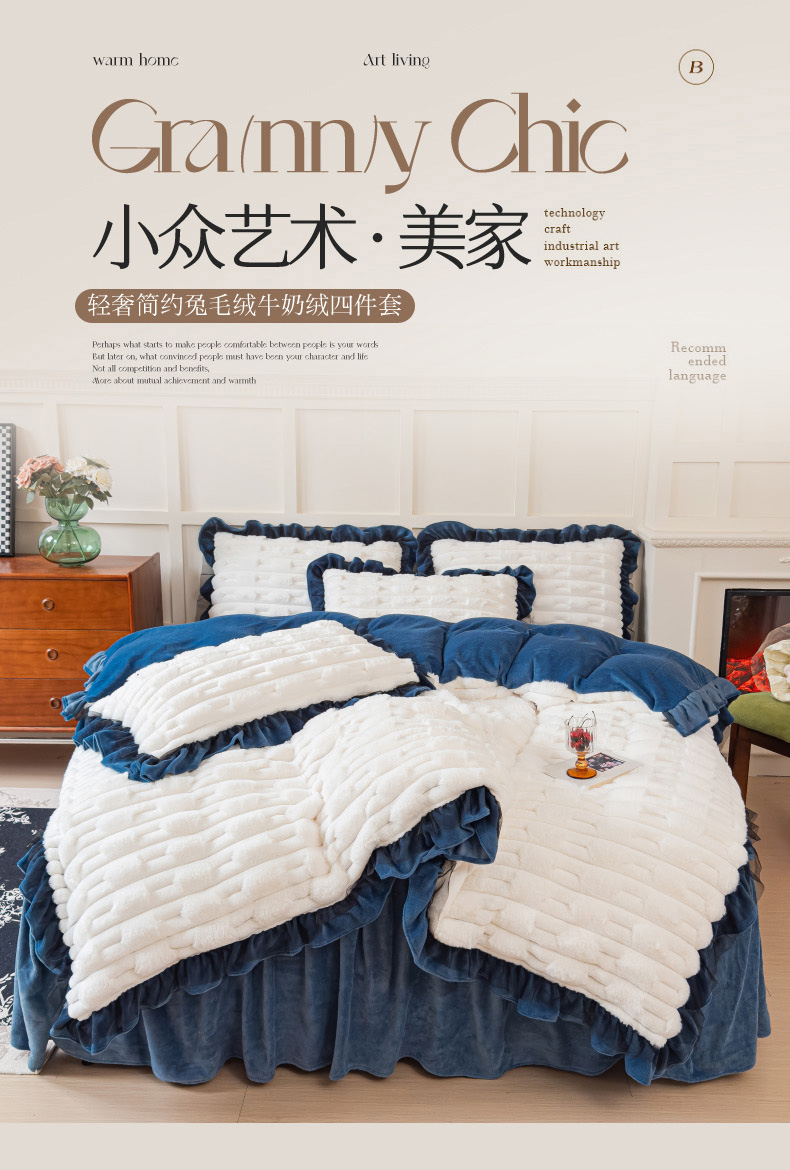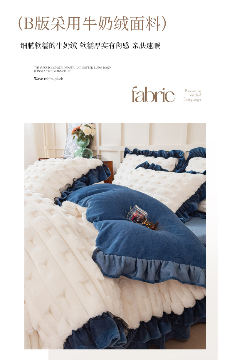 当前位置: 91家纺网 > 商品网购 > 床品套件 > 四件套 > 牛奶绒四件套 > 睡美人 2025韩版兔绒提花牛奶绒床裙床单床笠款四件套 兔绒提花-气质灰