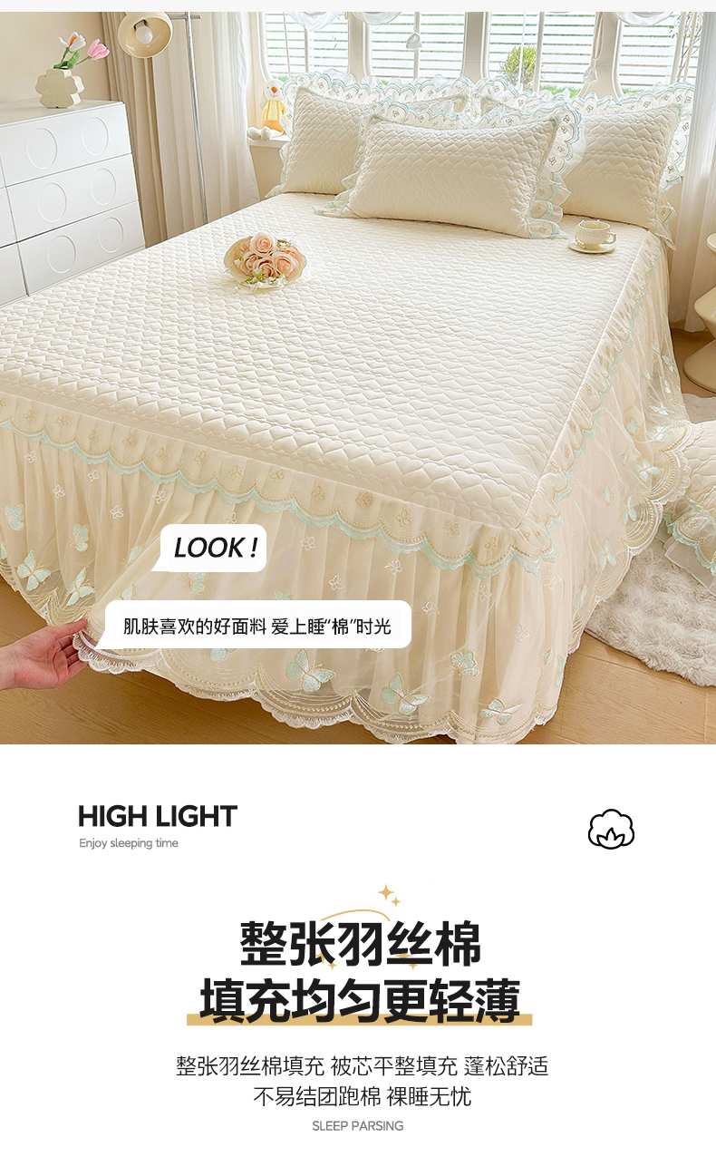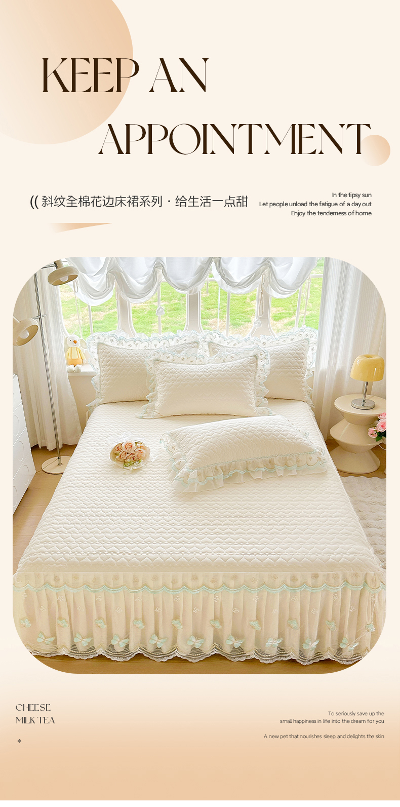 商品名称:(总)罗艺轩 2025新款全棉纯棉斜纹花边单床裙床裙单件单品床裙(控价:1.5m145 1.8x2.0m150 1.8x2.2m155 2.0x2.2m160)