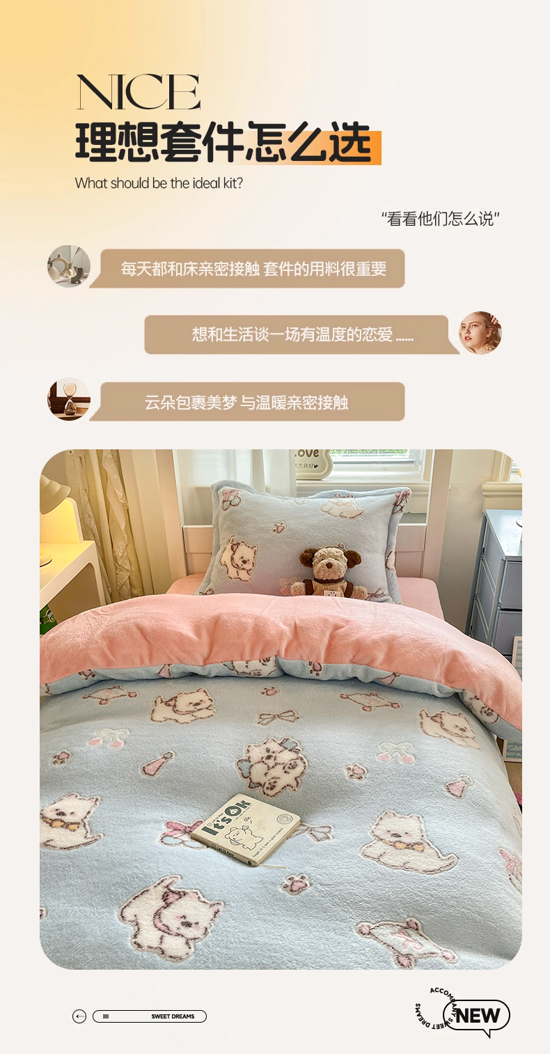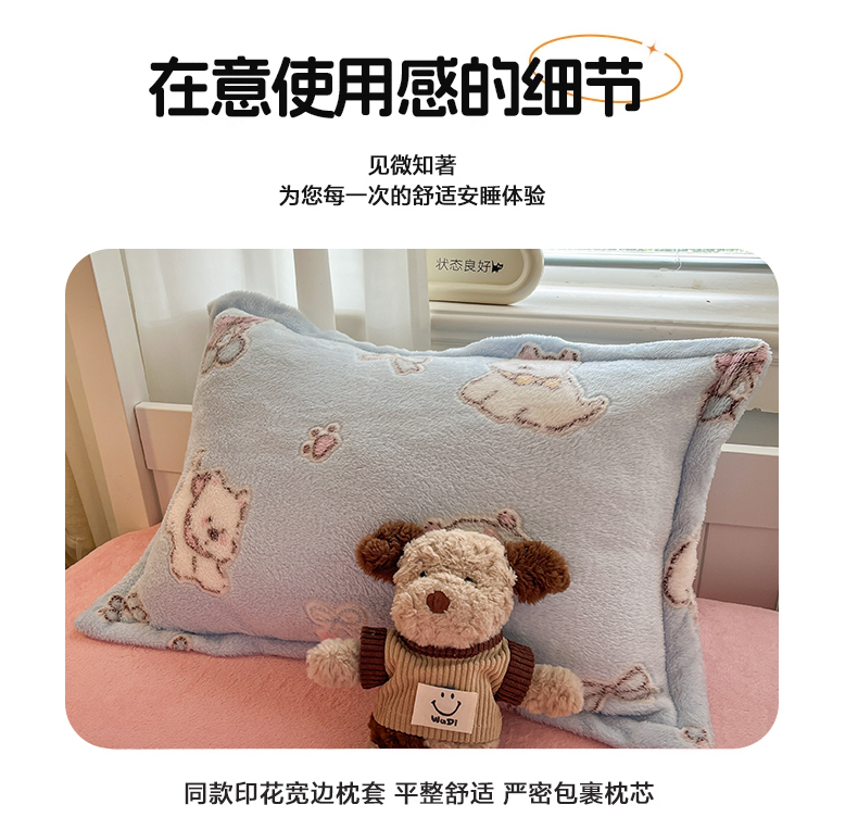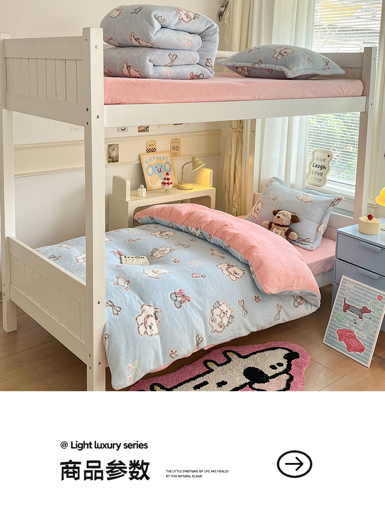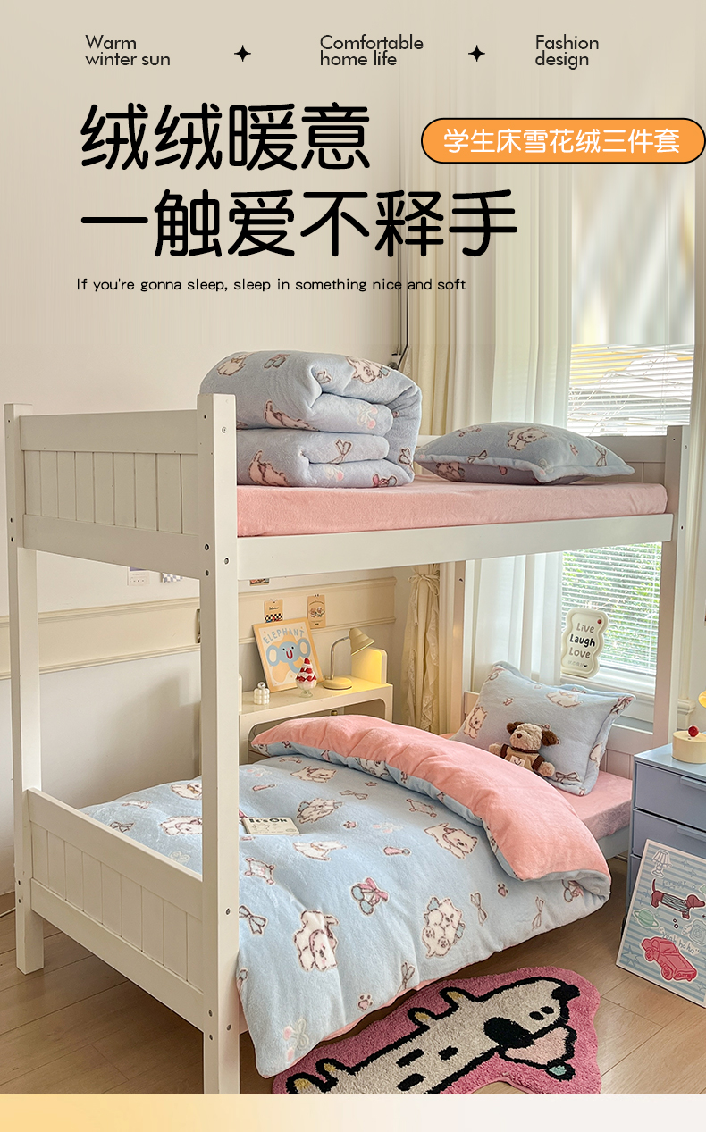 当前位置: 91家纺网 > 商品网购 > 床品套件 > 三件套 > 川悦生活 2025新款雪花绒宿舍床笠款三件套 奶蓝小汪粉