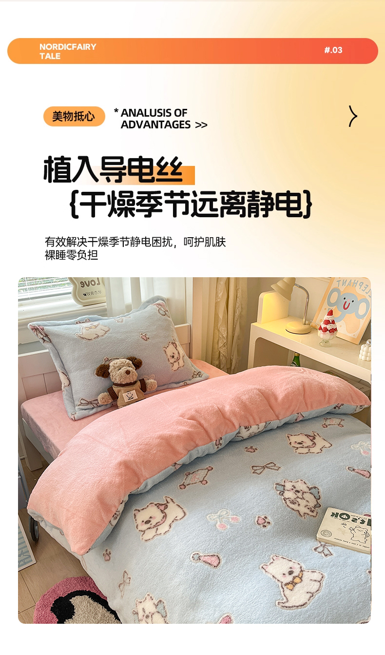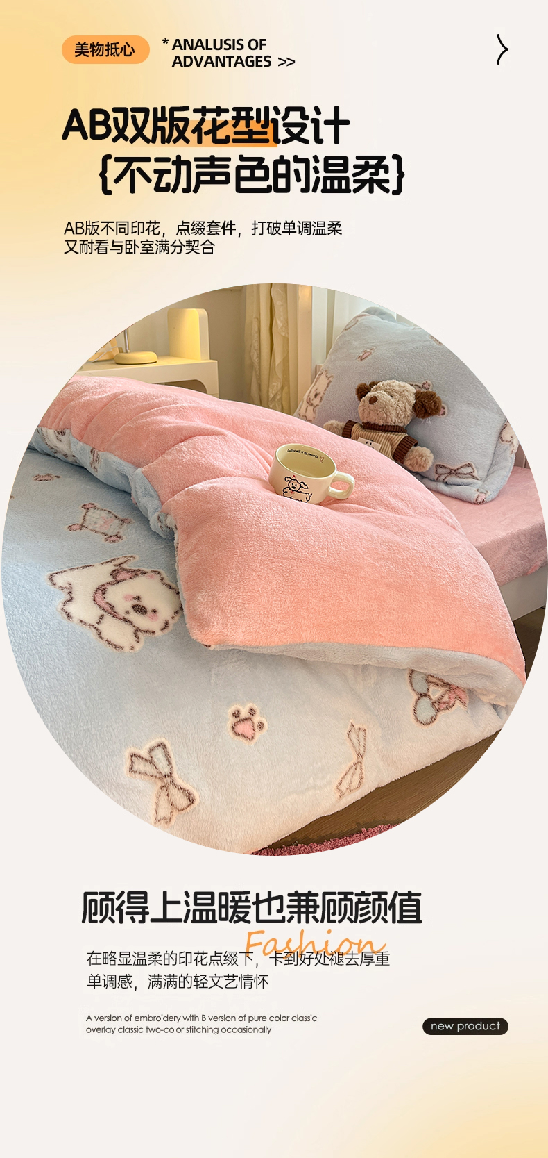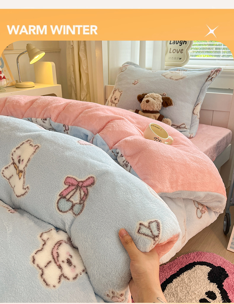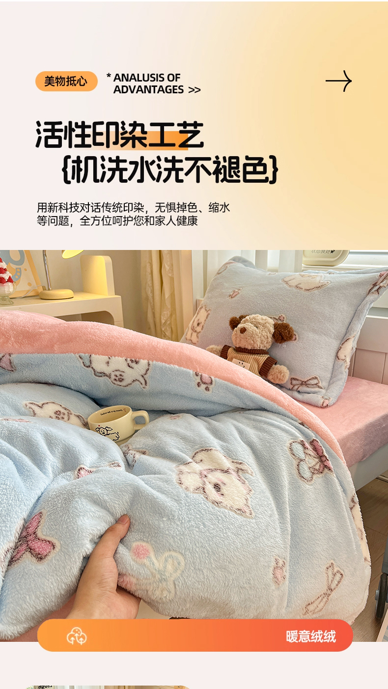 当前位置: 91家纺网 > 商品网购 > 床品套件 > 三件套 > 川悦生活 2025新款雪花绒宿舍床笠款三件套 奶蓝小汪粉