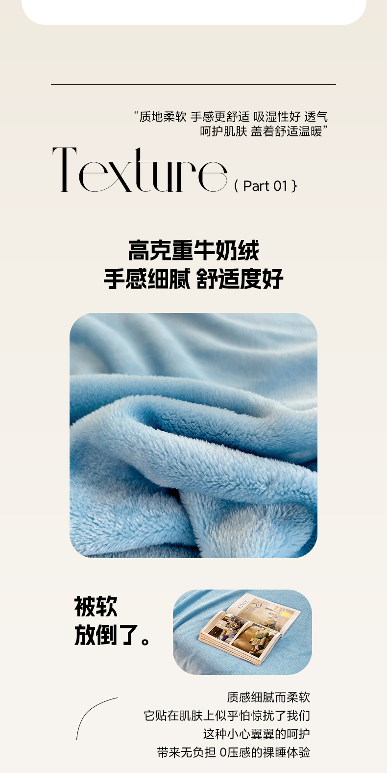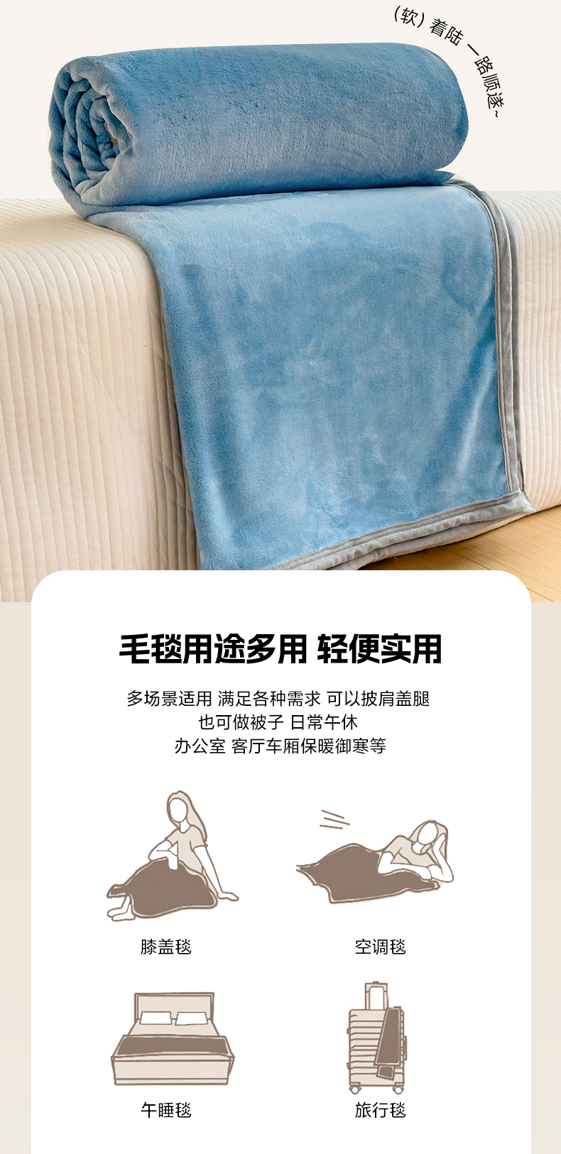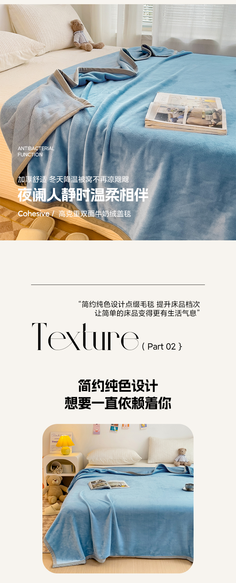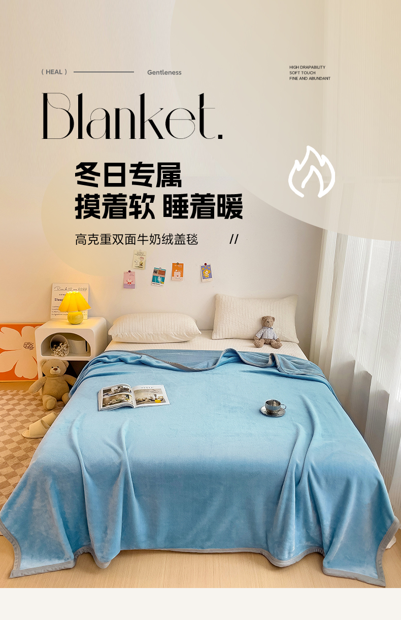 商品名称:启发毛毯 2025新款高克重双面牛奶绒盖毯 天蓝