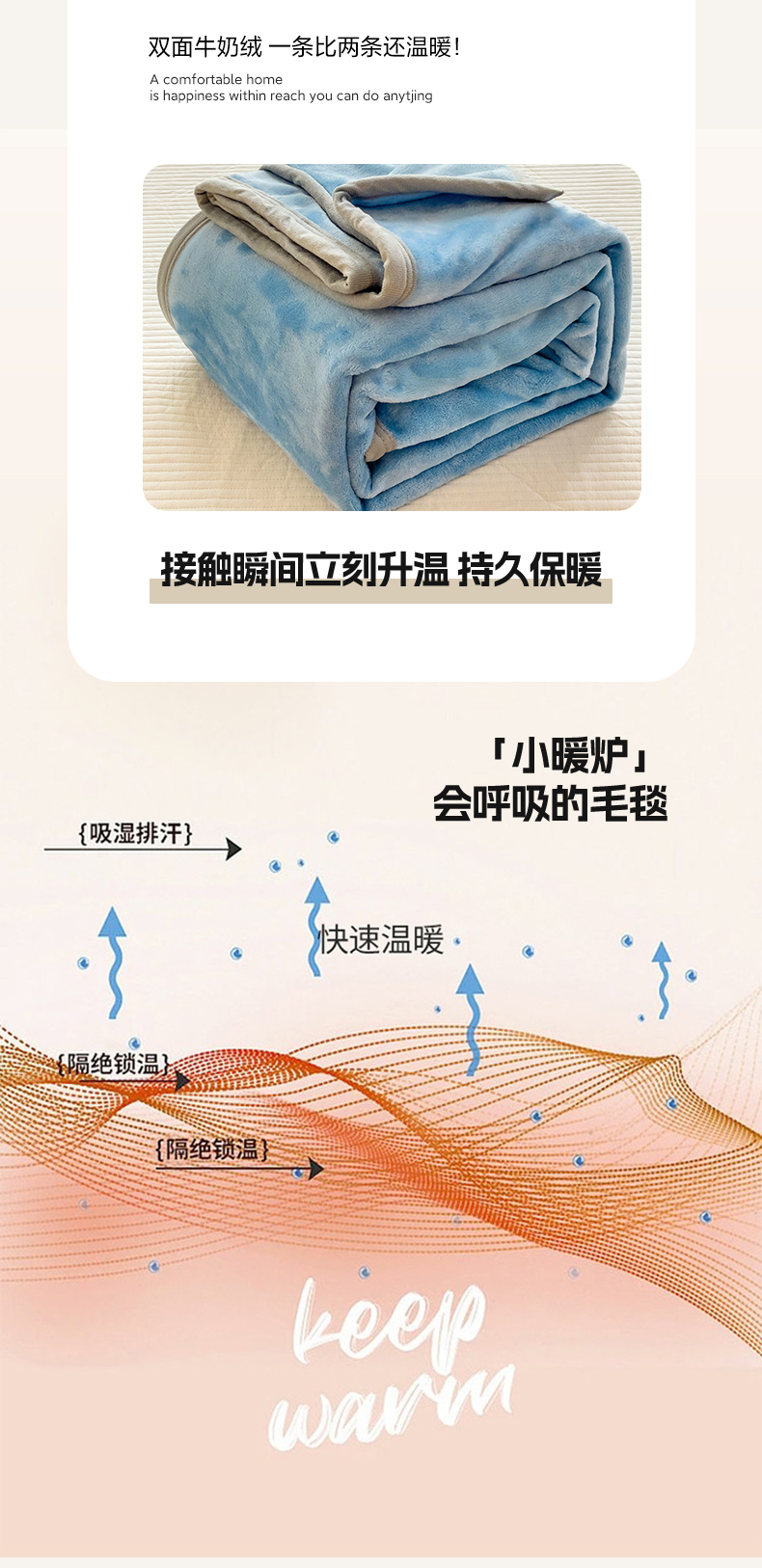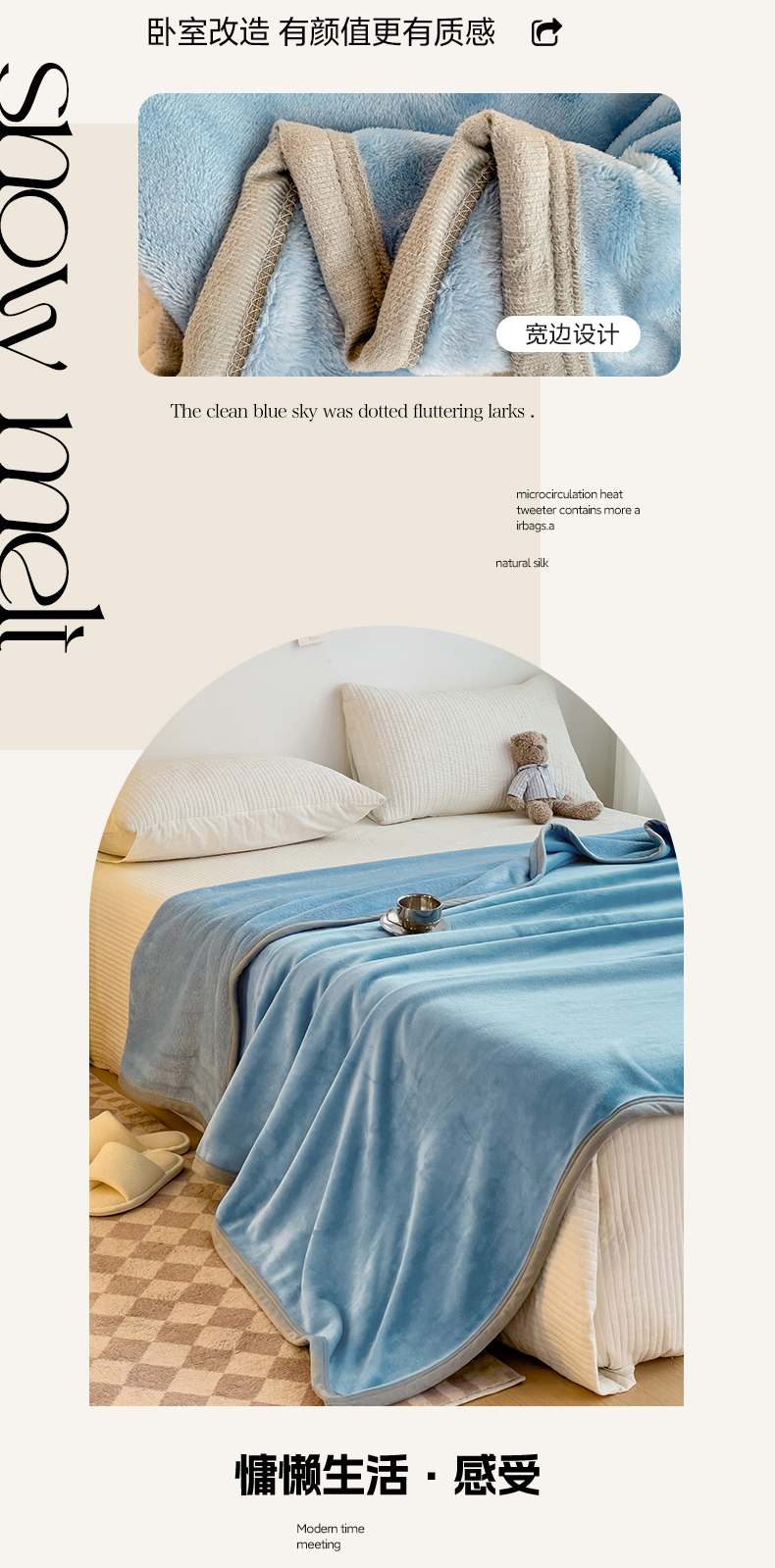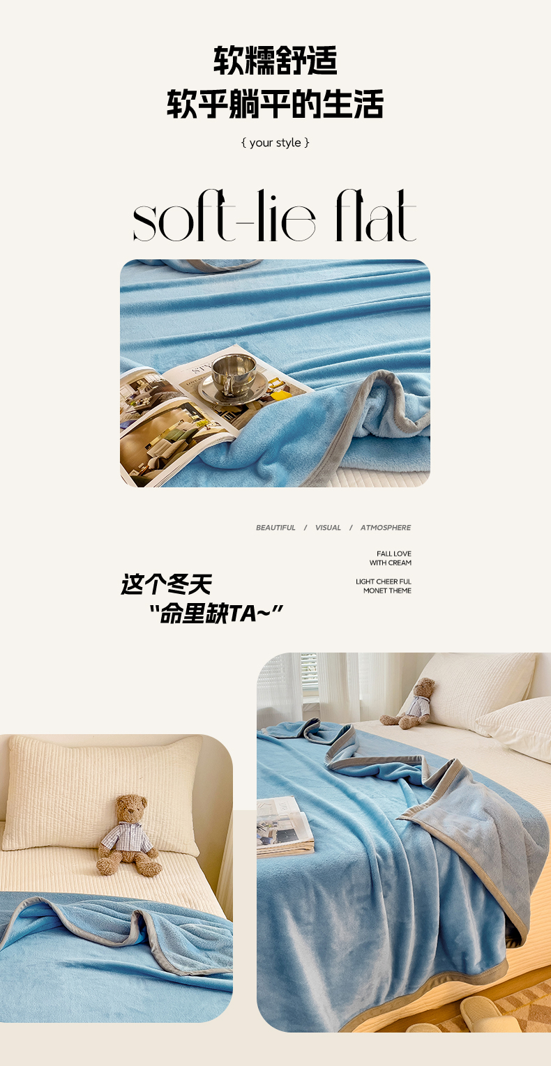 商品名称:启发毛毯 2025新款高克重双面牛奶绒盖毯 天蓝