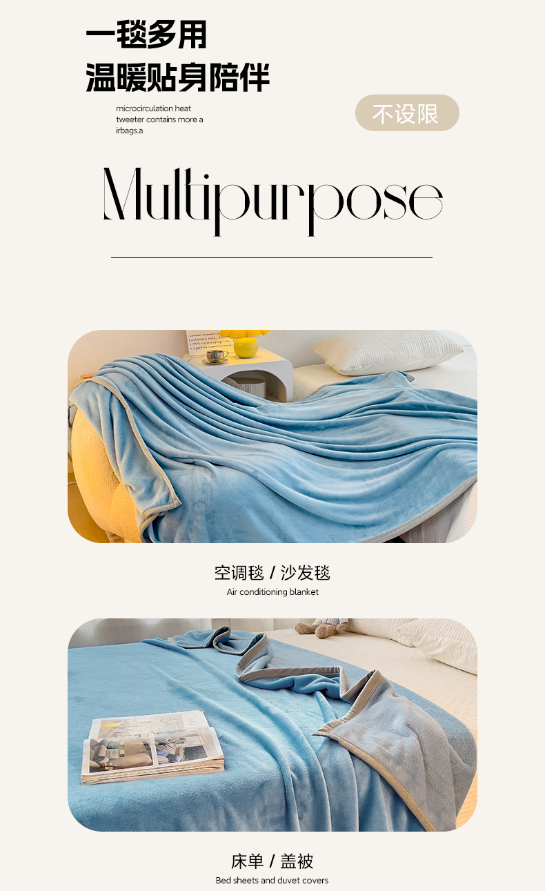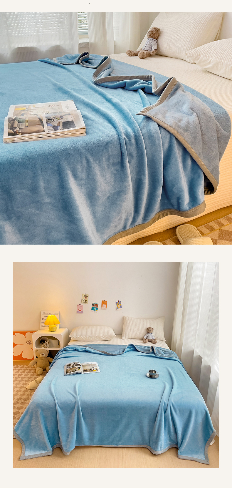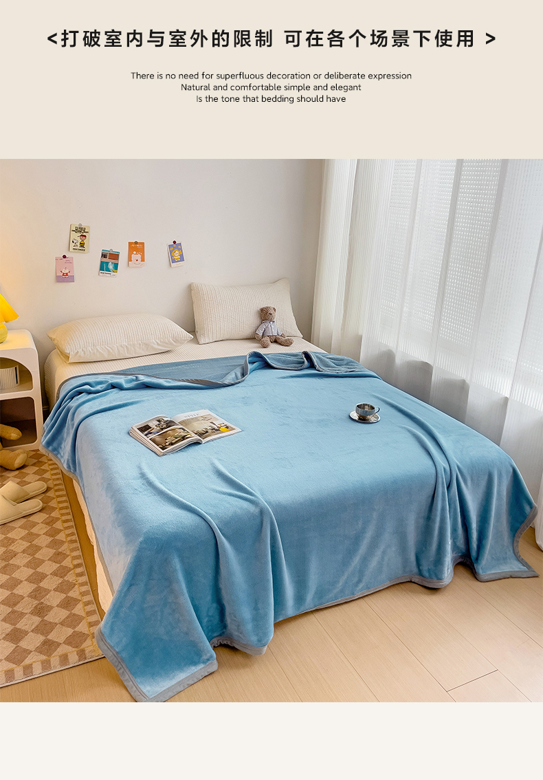 启发毛毯 2025新款高克重双面牛奶绒盖毯 天蓝