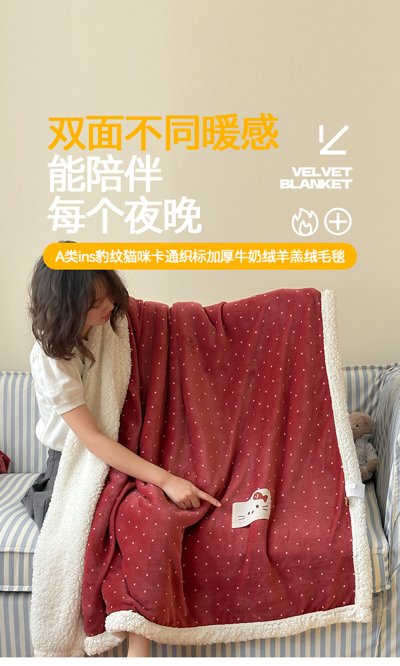 当前位置: 91家纺网 > 商品网购 > 毛毯休闲毯绒毯 > 毛毯 > 桃子家居 2025新款A类ins豹纹猫咪卡通织标加厚牛奶绒羊羔绒毛毯多功能毛毯 绒毛毯-织标红点喵吃鱼