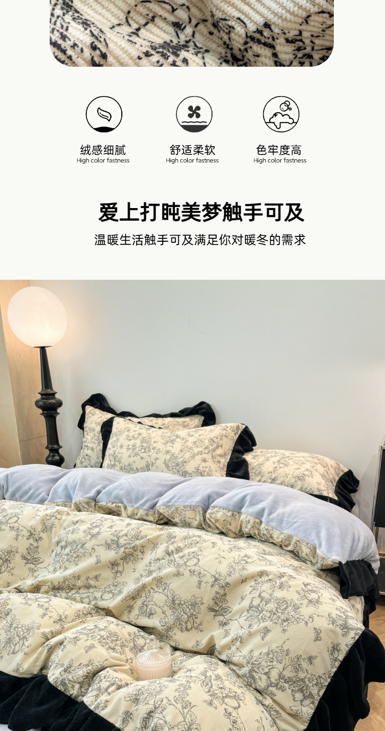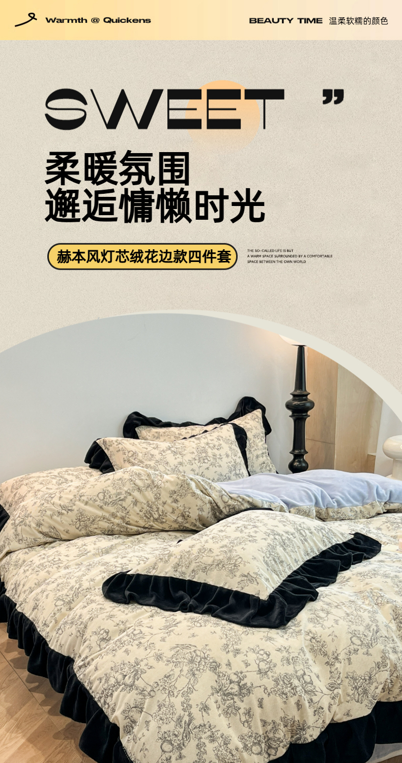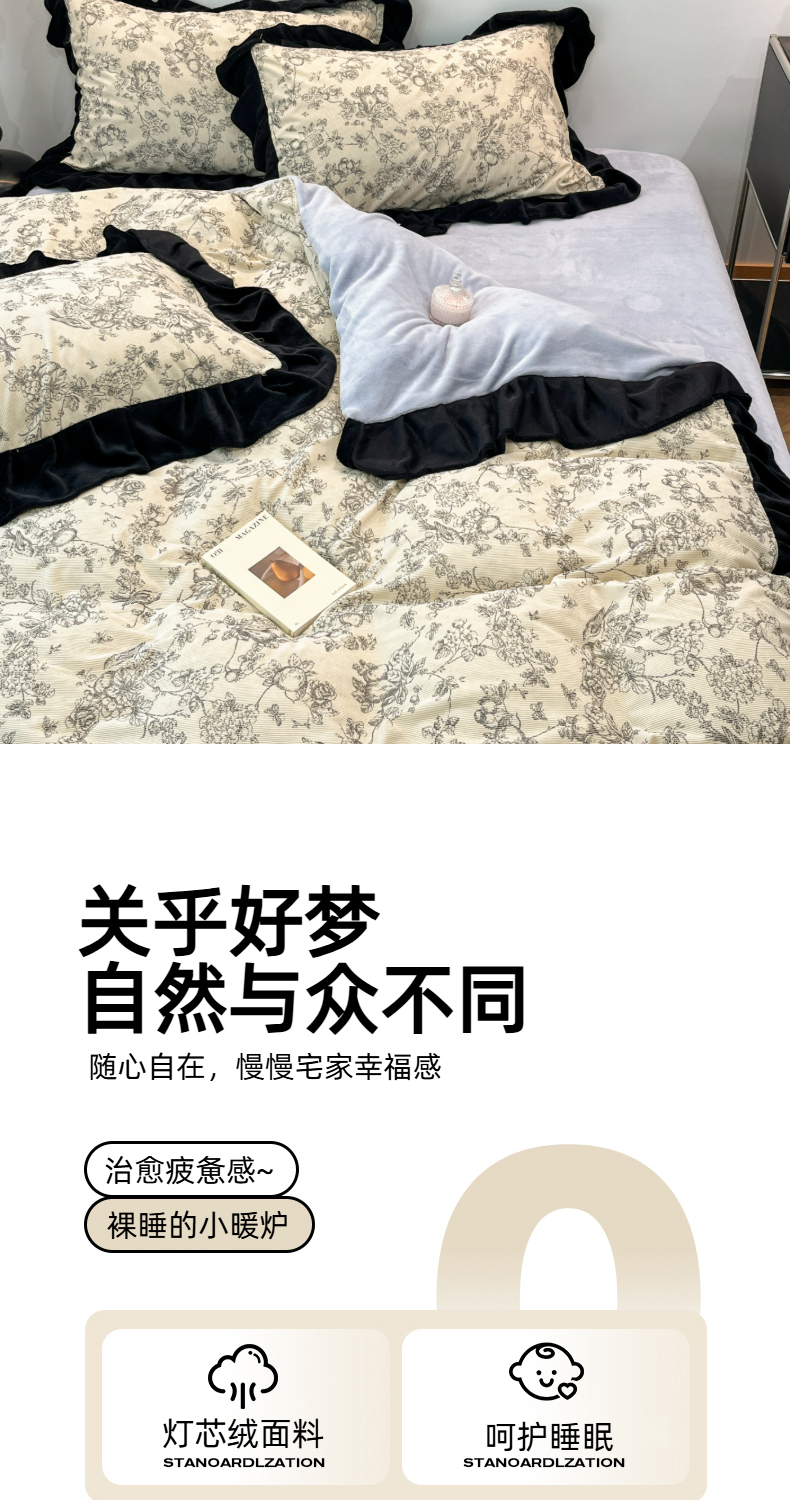 当前位置: 91家纺网 > 商品网购 > 床品套件 > 四件套 > 其它四件套 > 金爱家 2025新款赫本风灯芯绒-花边款四件套 灯芯绒-澜花