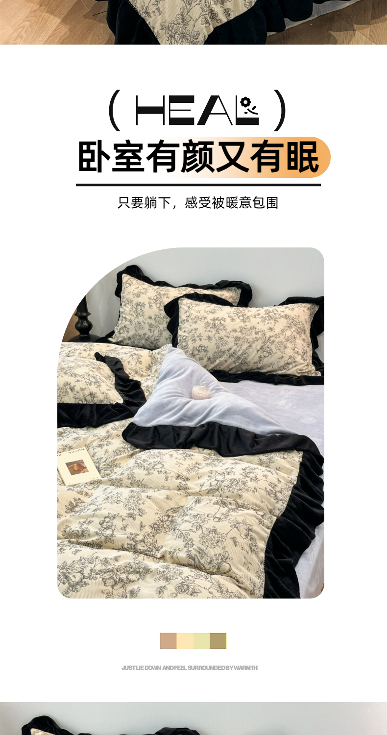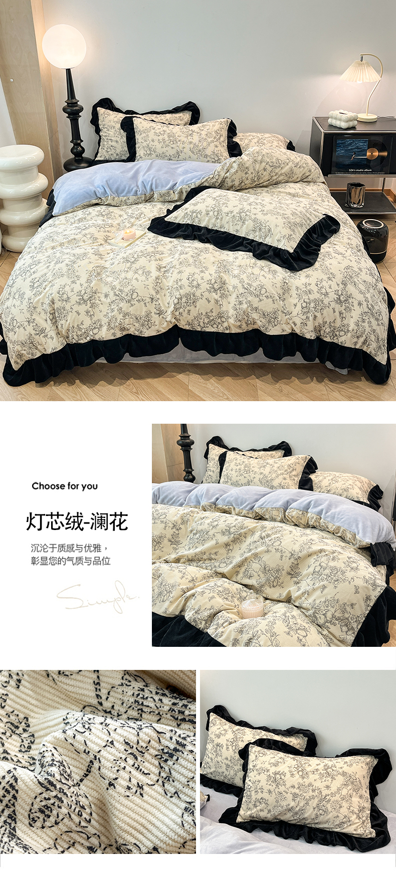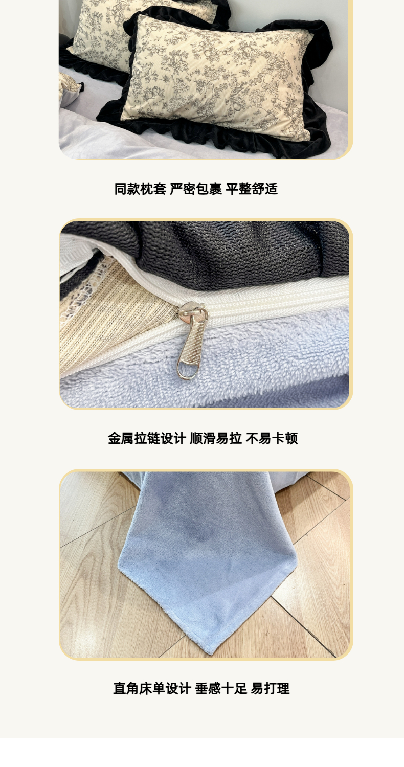 当前位置: 91家纺网 > 商品网购 > 床品套件 > 四件套 > 其它四件套 > 金爱家 2025新款赫本风灯芯绒-花边款四件套 灯芯绒-澜花