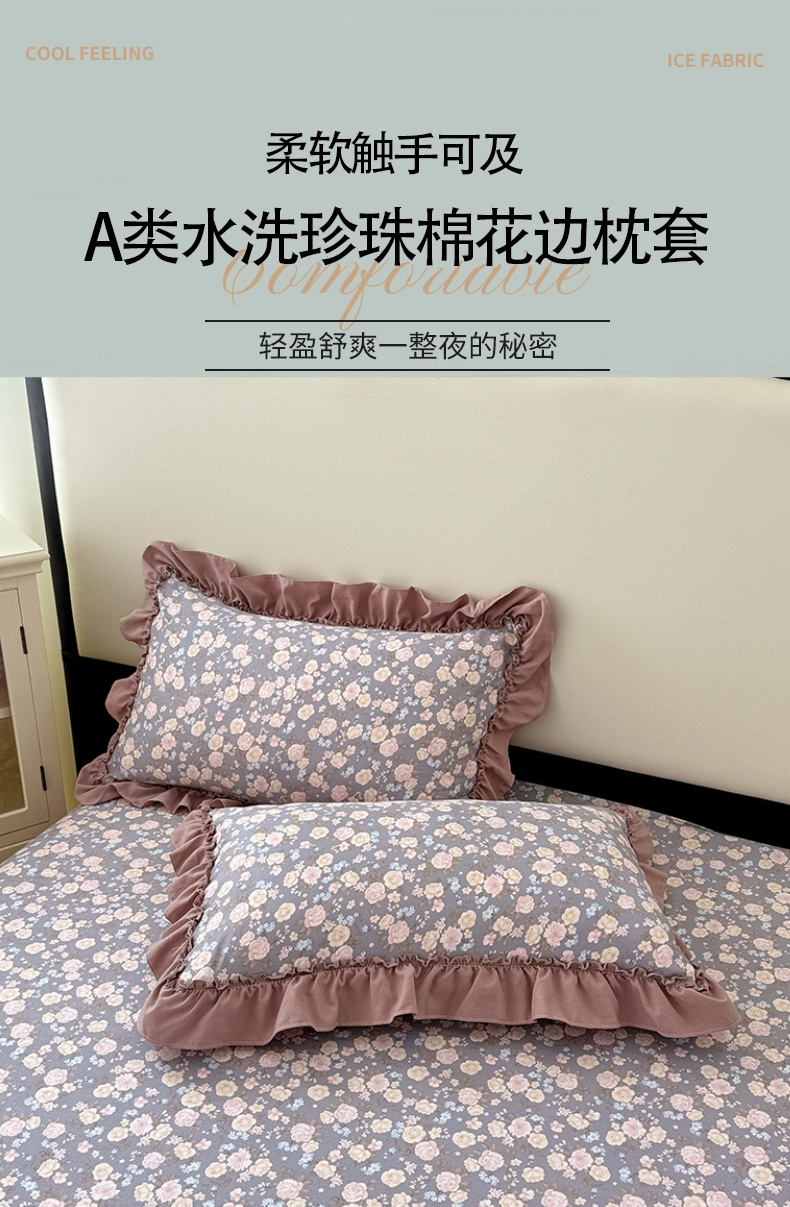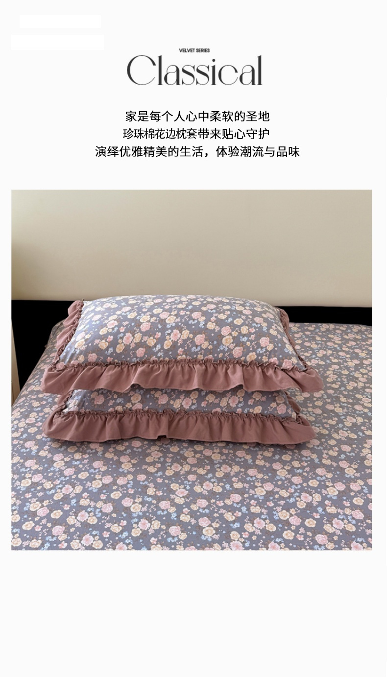 商品名称:梦舒羽 2025新款水洗珍珠棉花边枕套宿舍单人学生一对装枕芯内胆套 云裳花谷