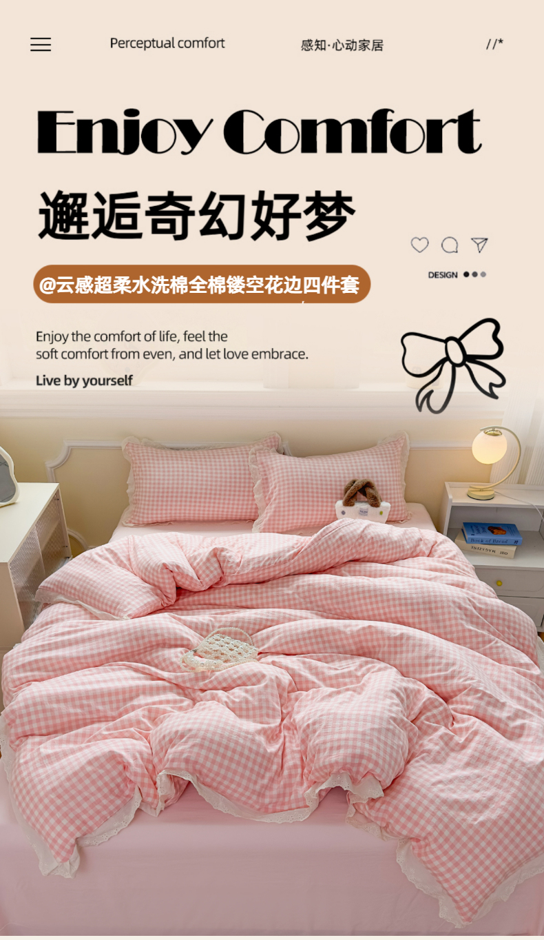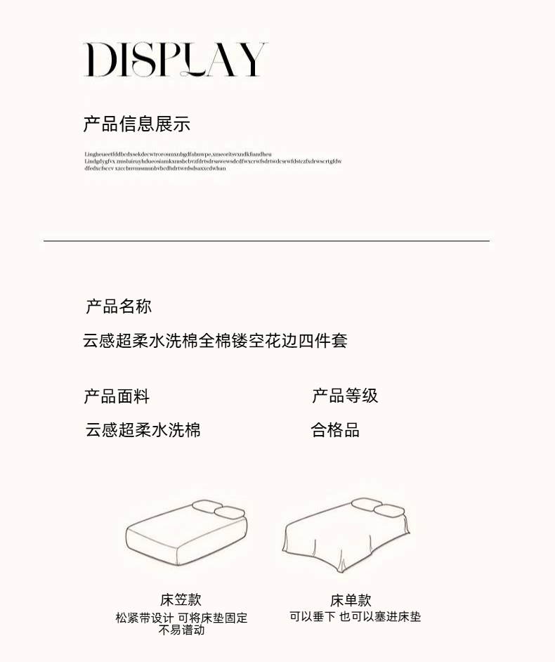 当前位置: 91家纺网 > 商品网购 > 床品套件 > 四件套 > 化纤活性四件套 > (总)老K(原美阁)2025新款云感超柔水洗棉四件套全棉纯棉镂空花边四件套