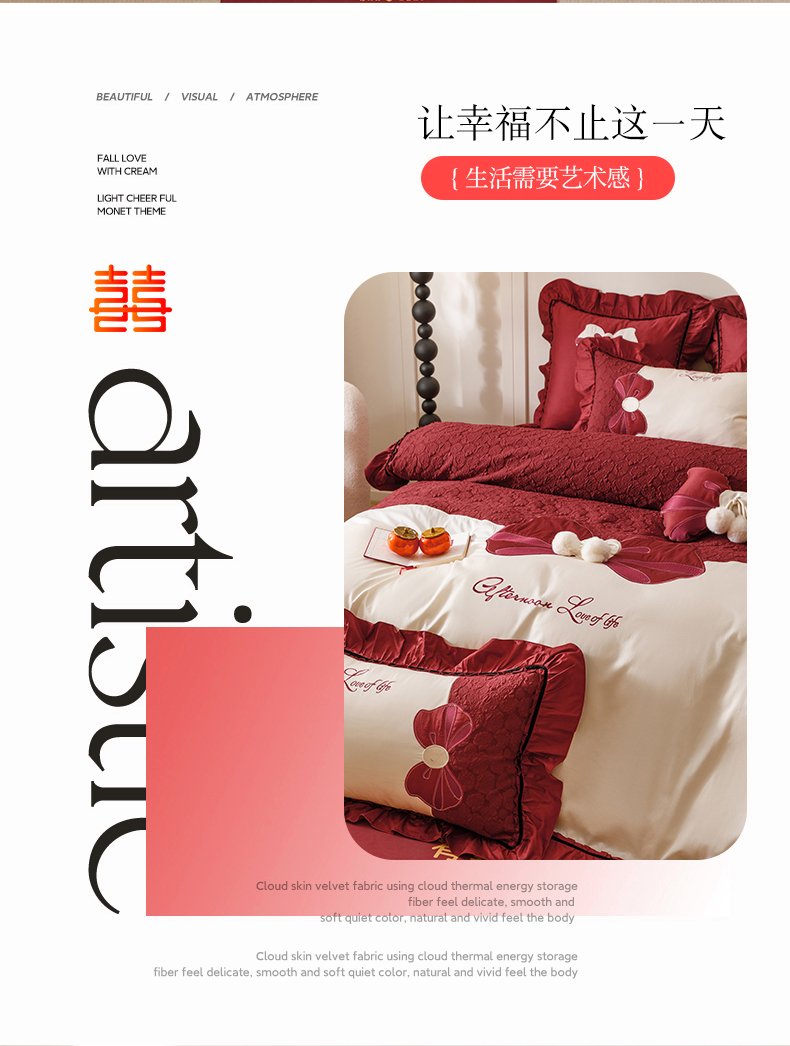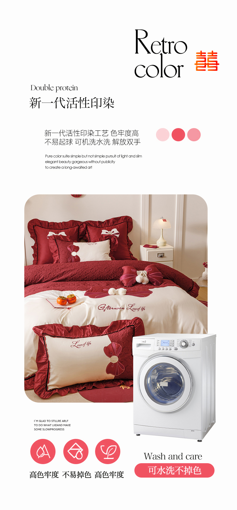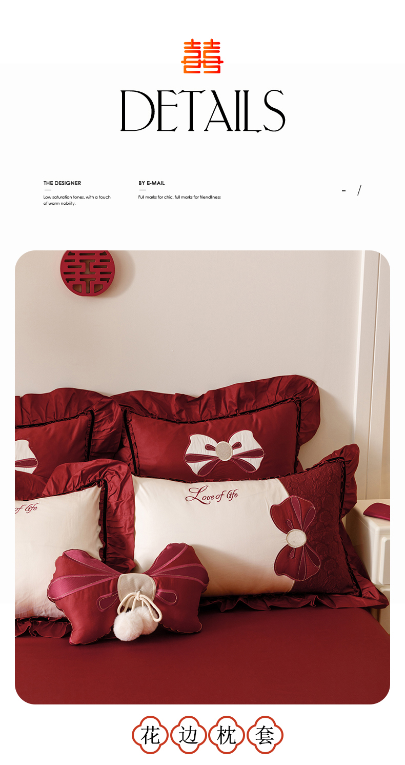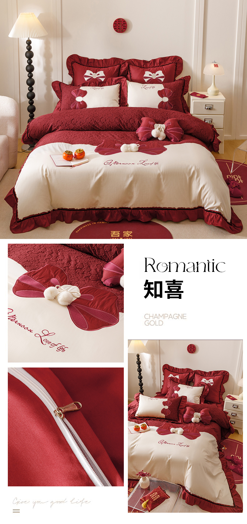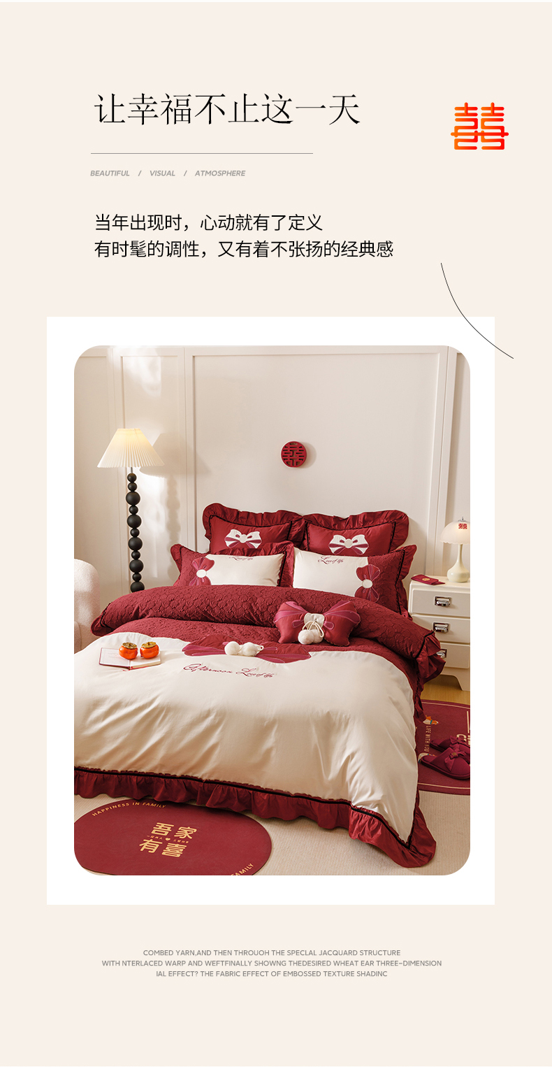 当前位置: 91家纺网 > 商品网购 > 床品套件 > 四件套 > 全棉普通四件套 > 宏羽纺家纺 2025新款100s全棉纯棉贡缎法式刺绣花边四件套 纯棉时尚-知喜-拼色