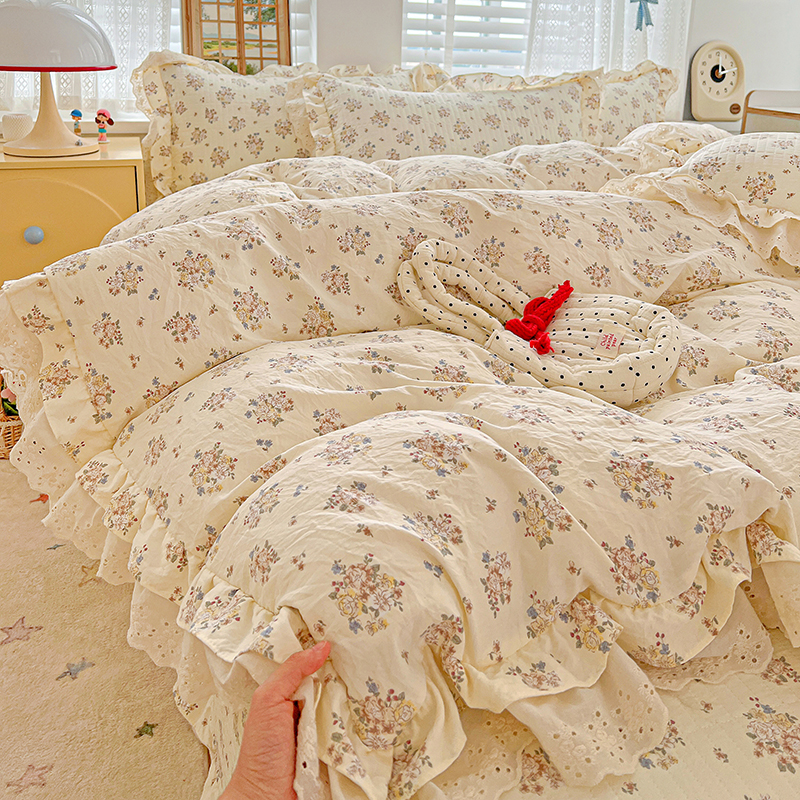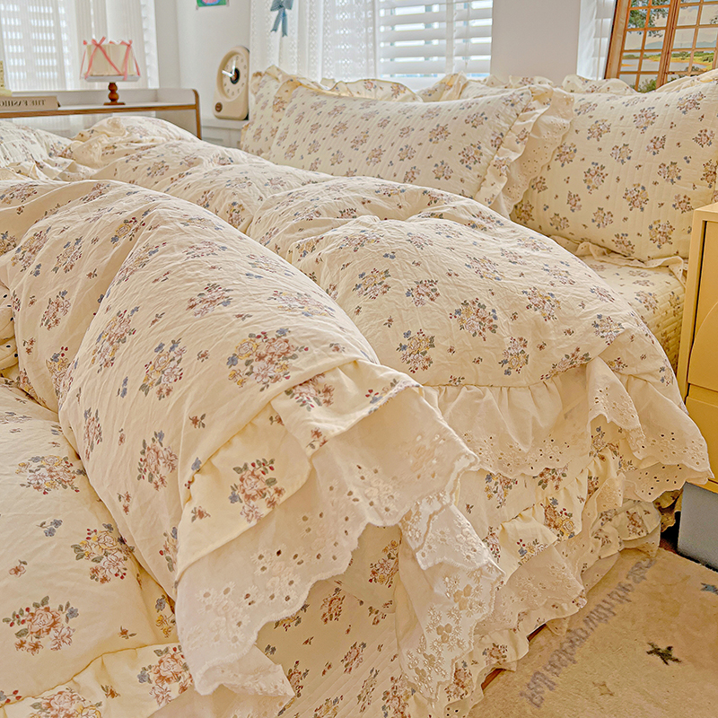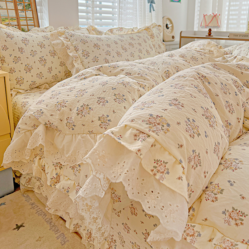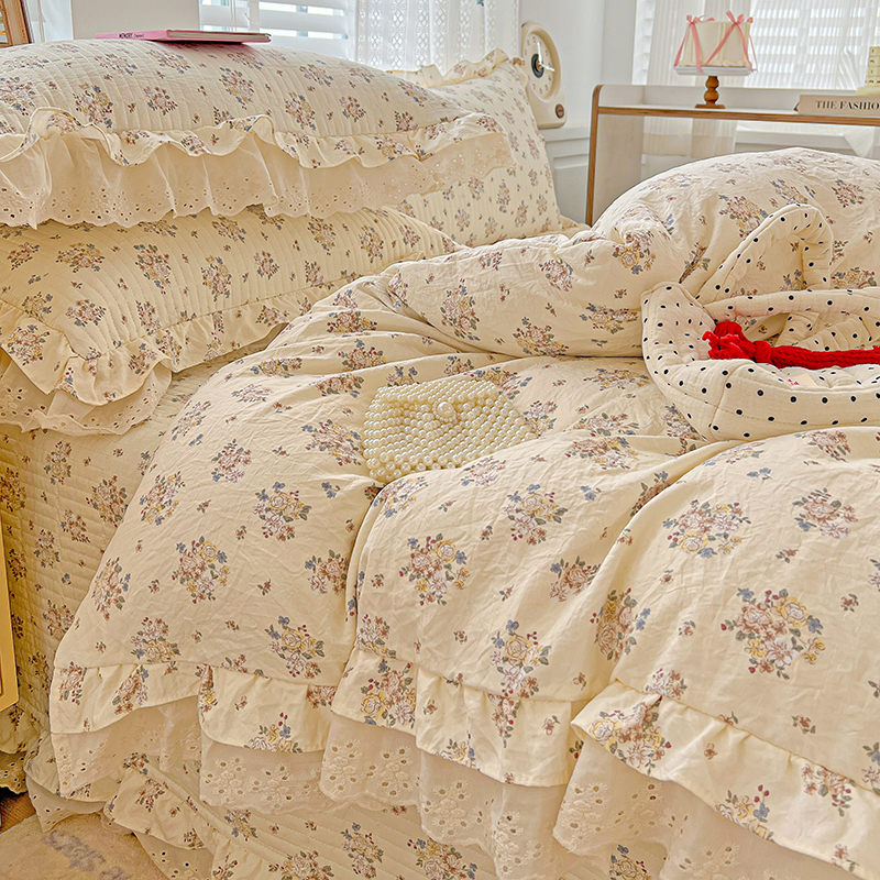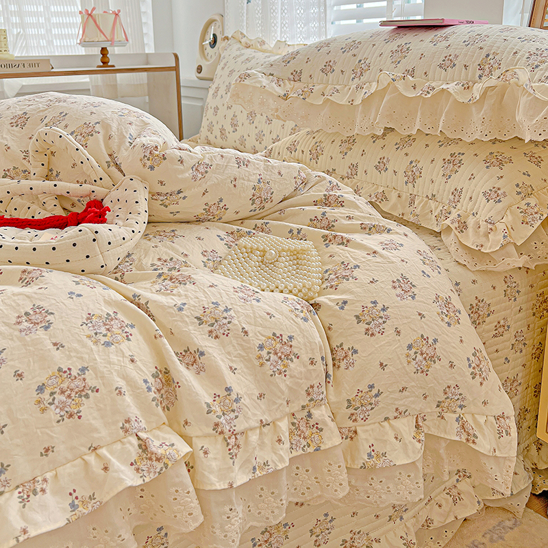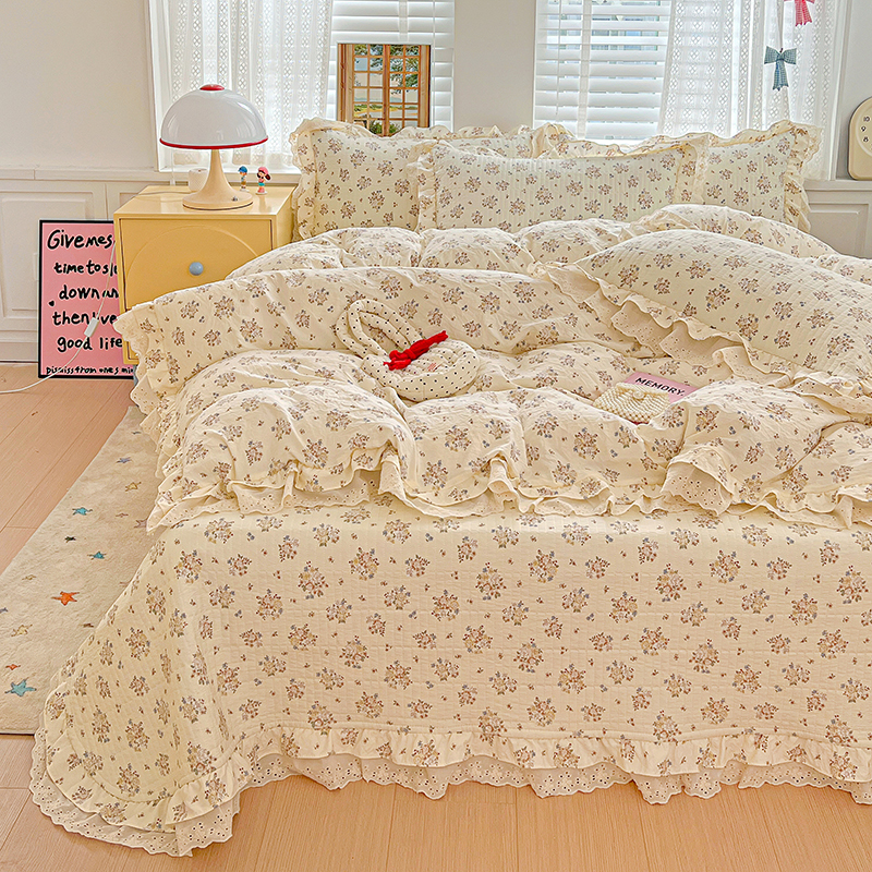 梦莱斯 2025新款田园碎花纯棉花边四件套-床盖款 莱茵