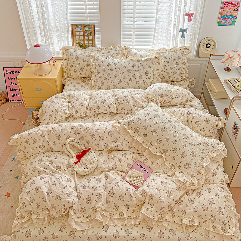 (总)梦莱斯 2025新款云感木棉皱皱双层纱全棉花边四件套,百福蓝,春风里,薄荷微凉,春晓,豆蔻,蝴蝶梦,可颂,兰黛,山野栀子,素颜,太妃糖,心动,遇见,芝士奶酪,紫爱心,紫苏,花园兔,蜡笔画,小黑兔,白茶-绿,初恋,莱茵河畔,桃花诺