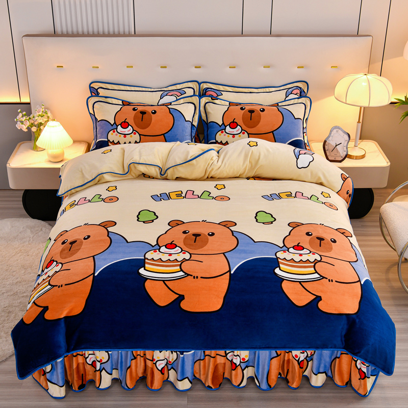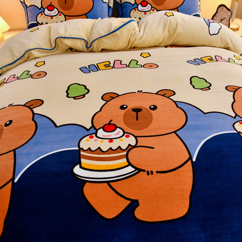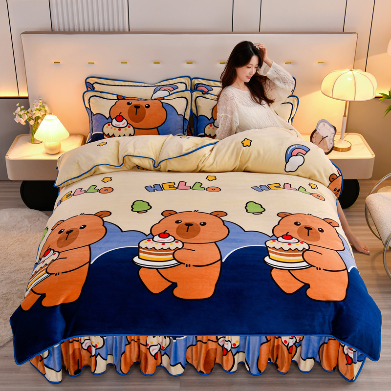 当前位置: 91家纺网 > 商品网购 > 床品套件 > 四件套 > 牛奶绒四件套 > 2025新款230克8.5斤加厚高克重牛奶绒金貂绒法莱绒四件套冬季加绒法兰绒床裙款 嘟嘟熊