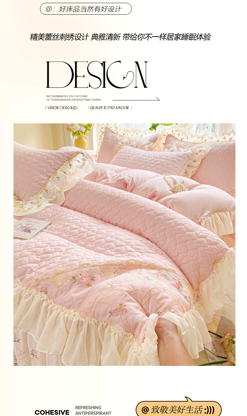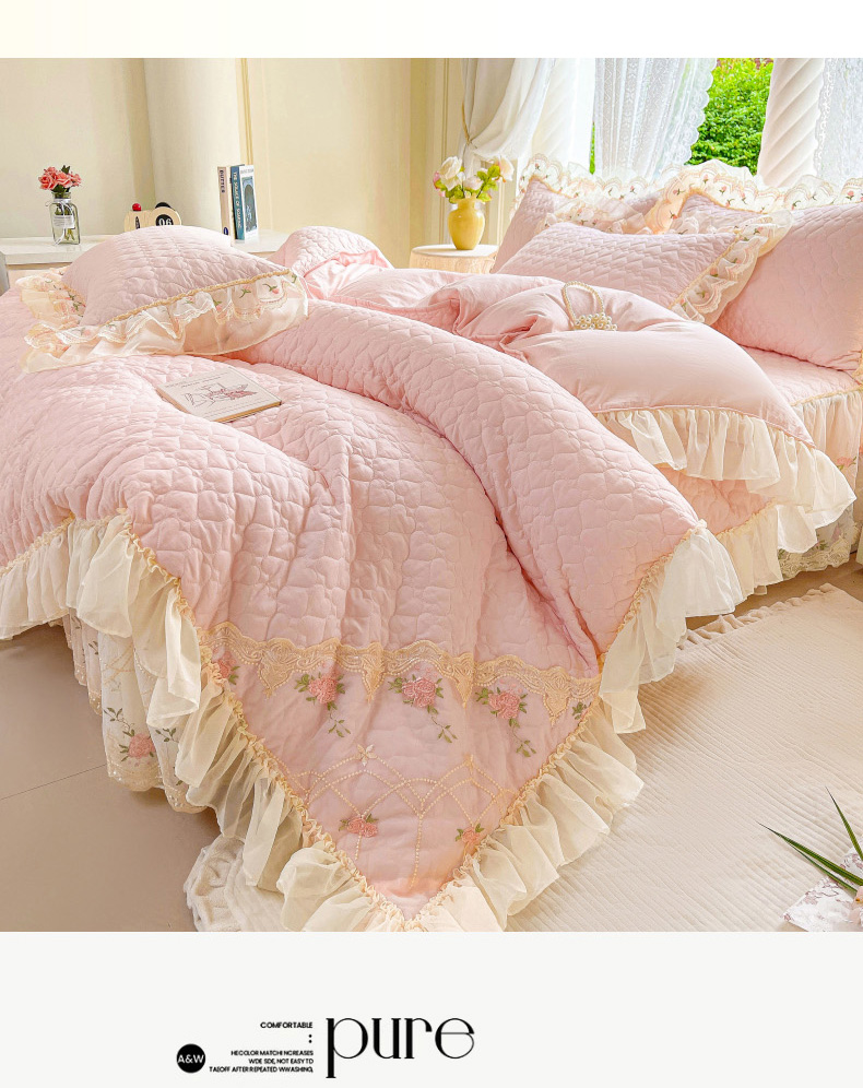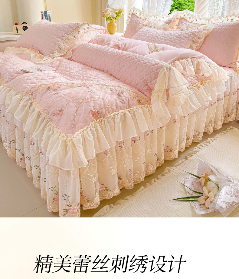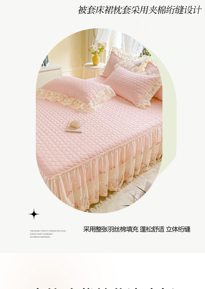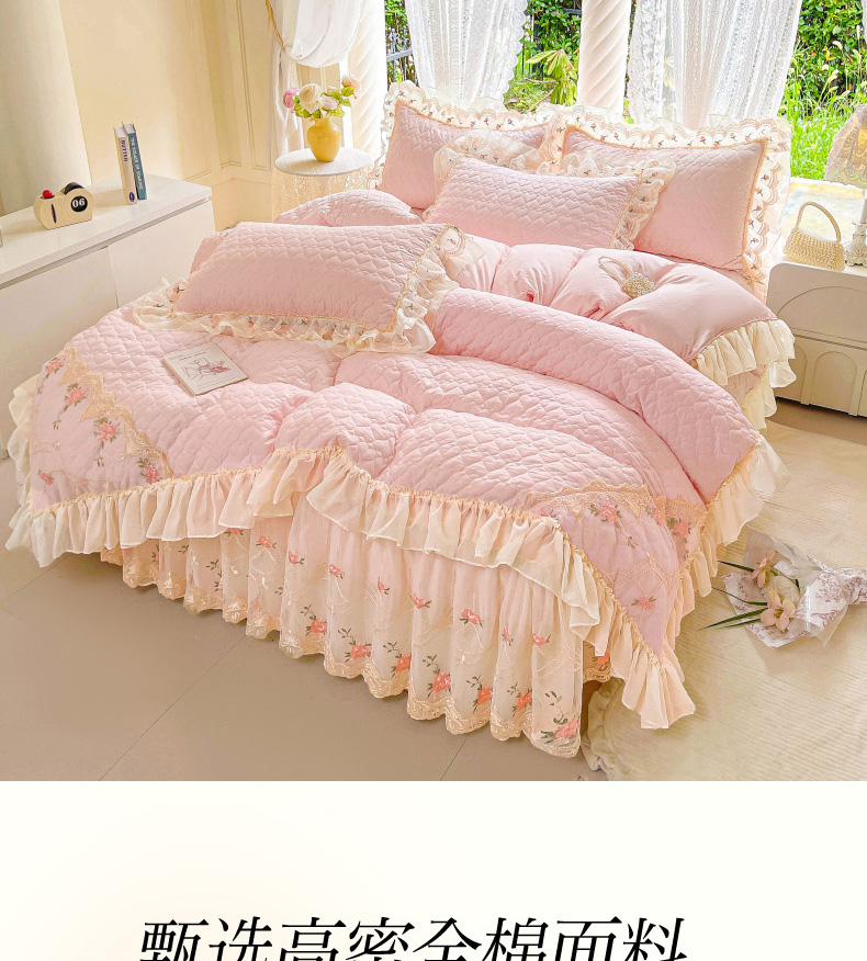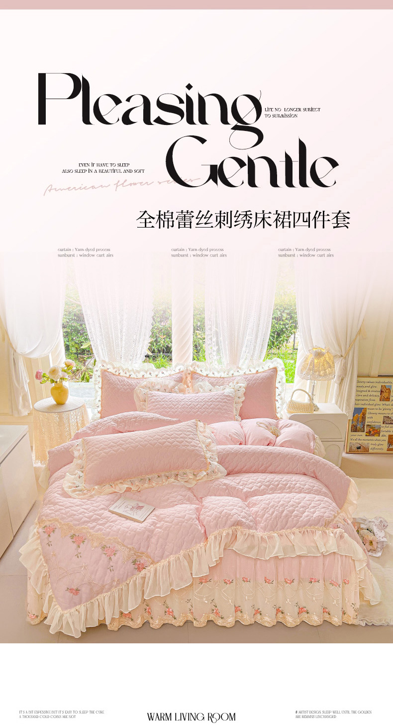 当前位置: 91家纺网 > 商品网购 > 床品套件 > 四件套 > 全棉普通四件套 > 罗艺轩 2025新款全棉蕾丝刺绣床裙四件套-小香玫瑰 小香玫瑰-粉色