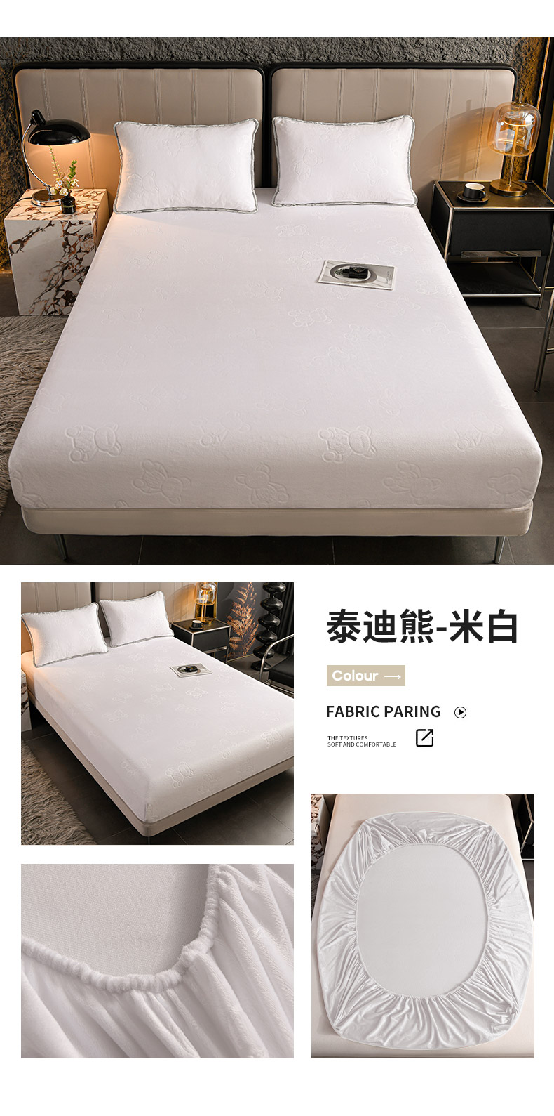 • 91家纺网 家纺一手货源 找家纺 推推家纺 2025新款高克重雕花水晶绒压花床笠外贸 泰迪熊-米白