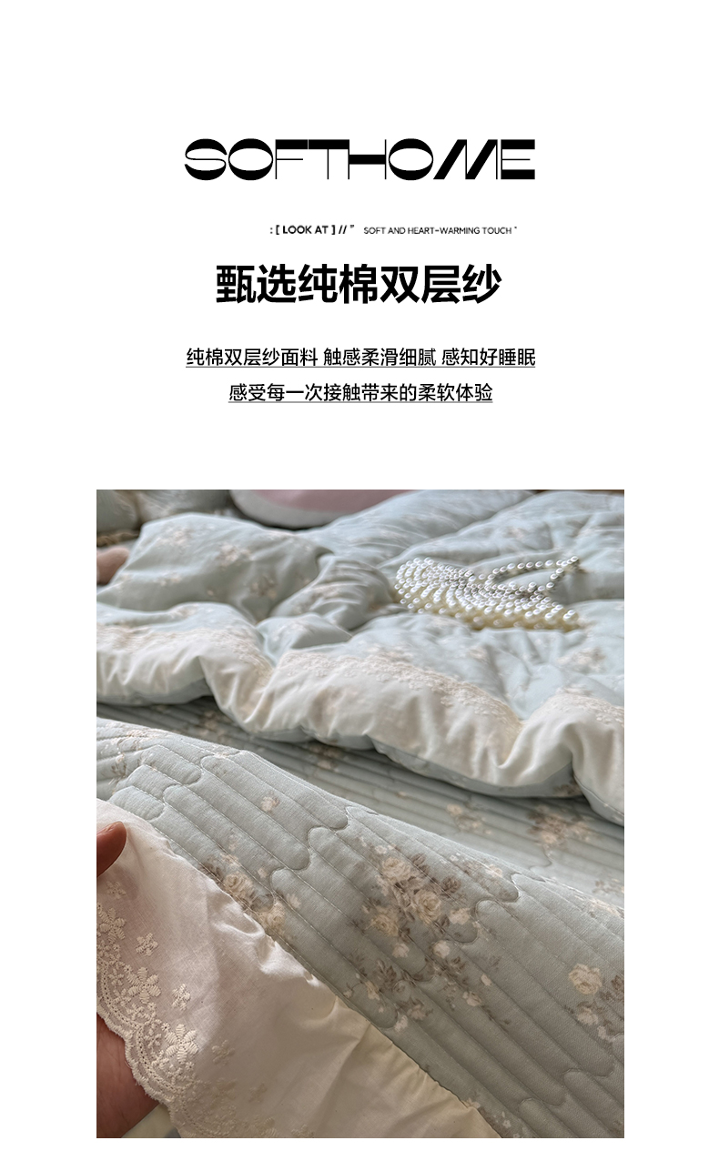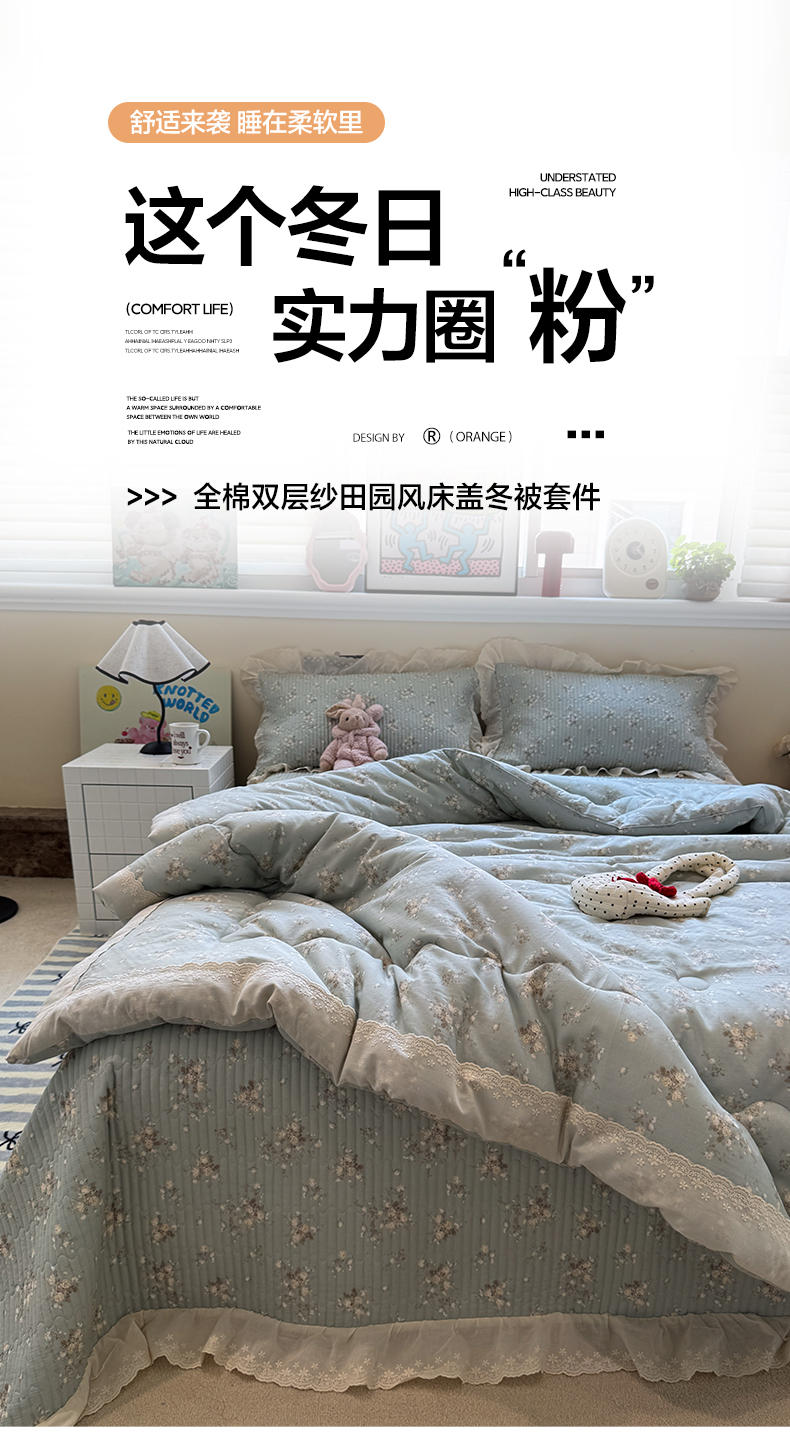 商品名称:(总)一加一 2025新款田园风全棉纯棉双层纱床盖冬被被子被芯四件套