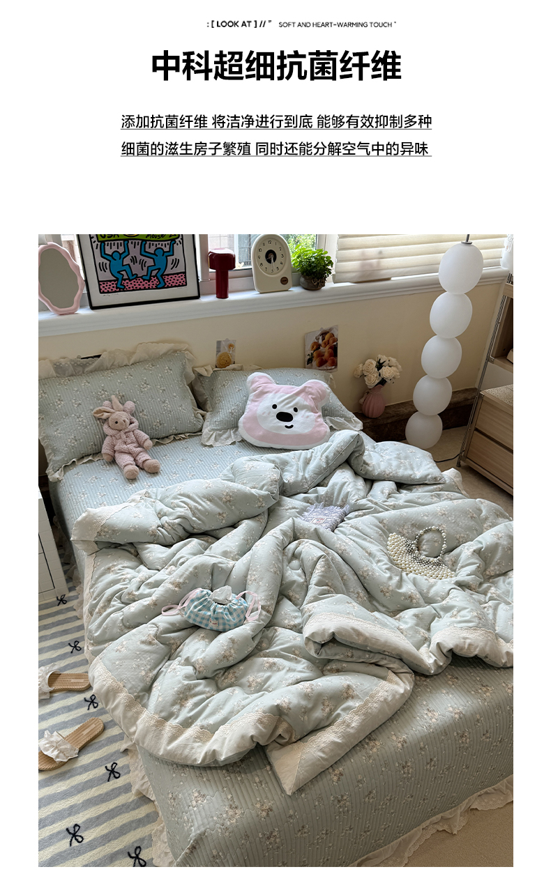 (总)一加一 2025新款全棉色织简约风艾阳绒抗菌被芯,浅兰韵律,桃之夭天,悠然时光