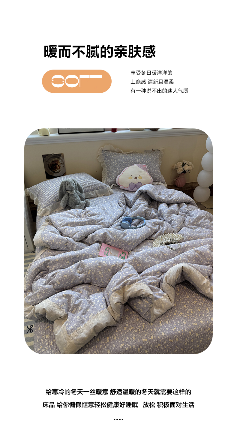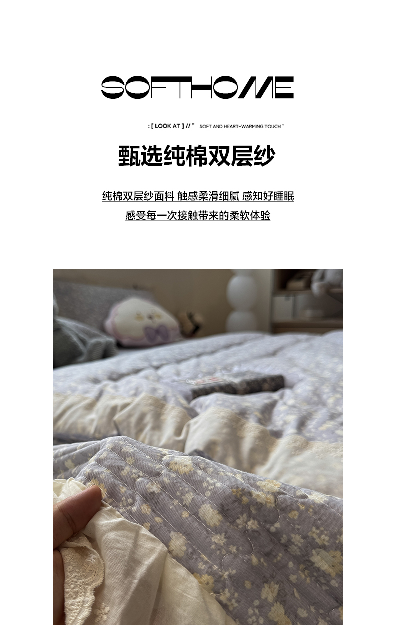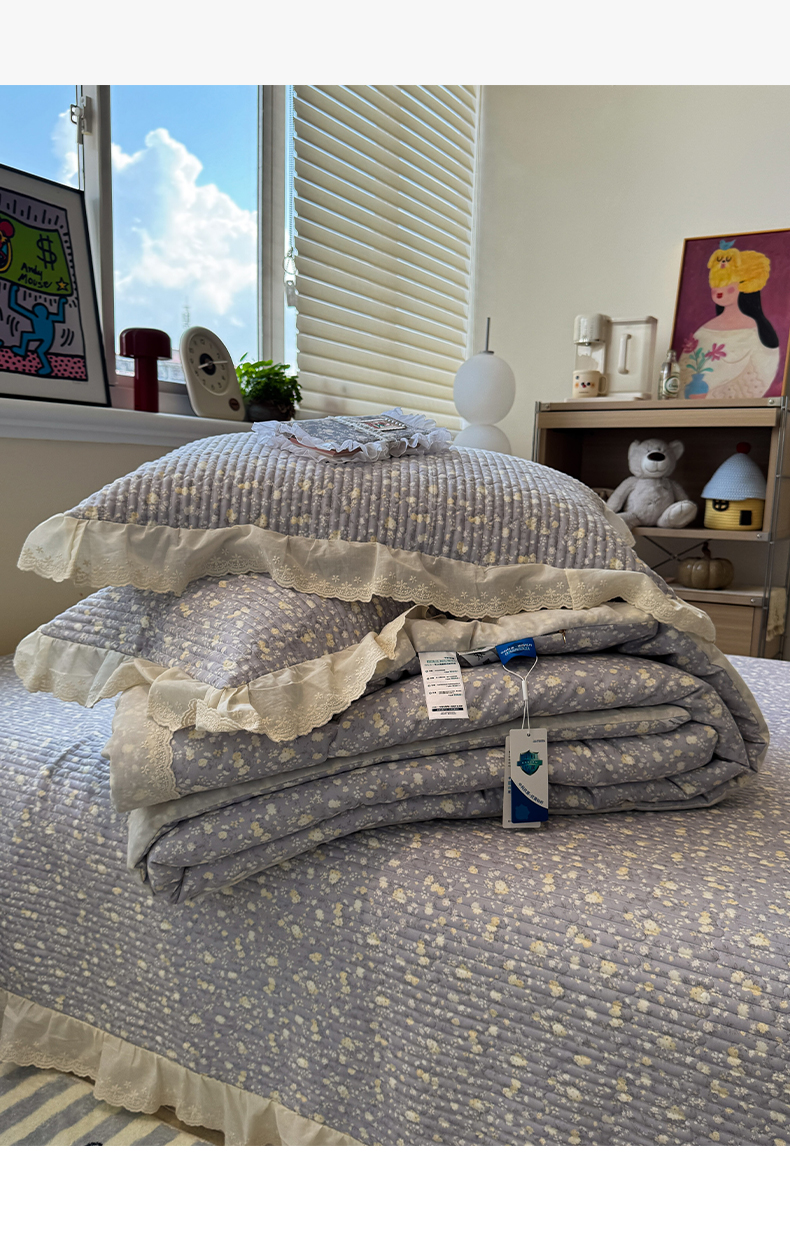 当前位置: 91家纺网 > 商品网购 > 床品套件 > 四件套 > 全棉普通四件套 > 一加一 2025新款田园风全棉纯棉双层纱床盖冬被被子被芯四件套 梦醒花间-灰