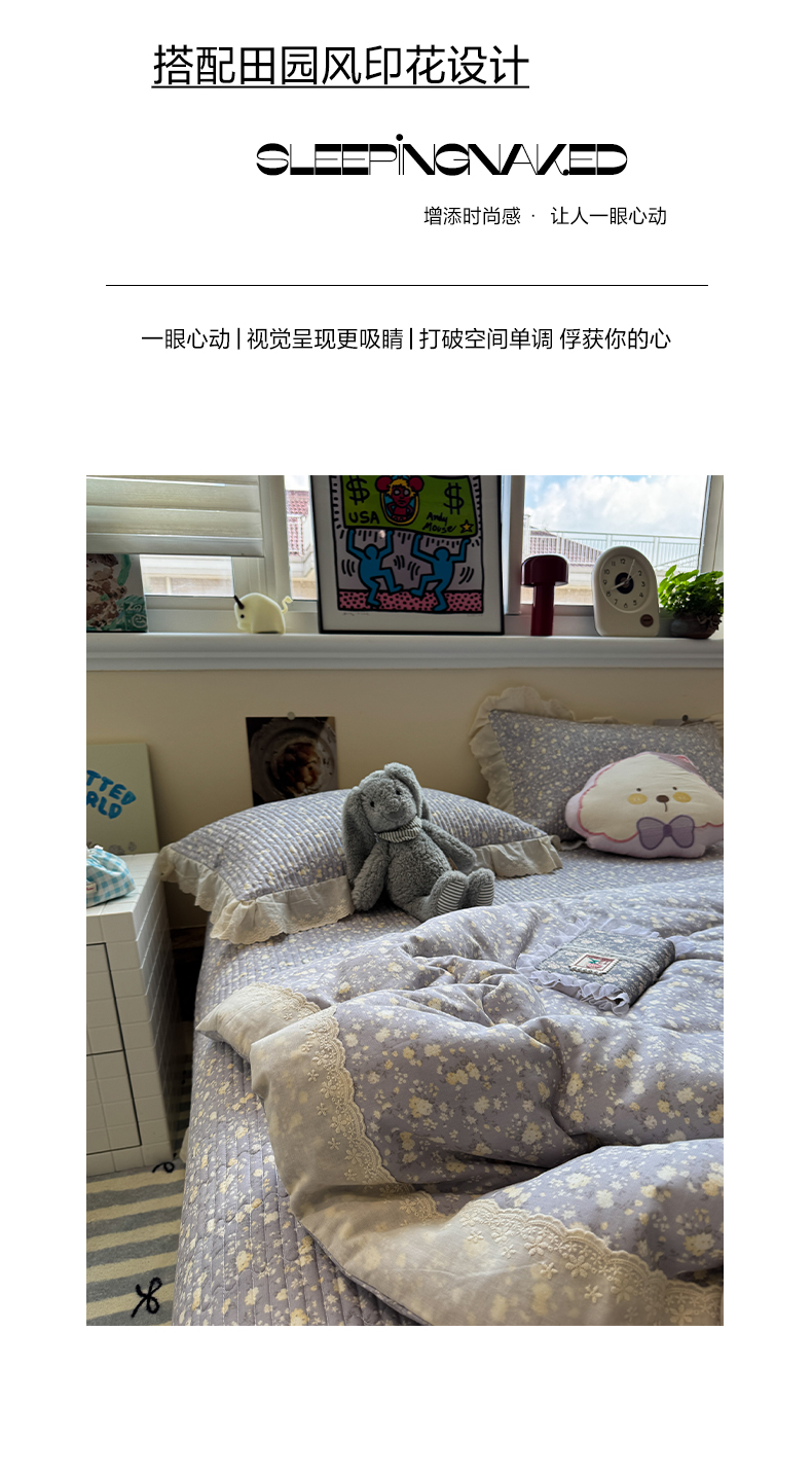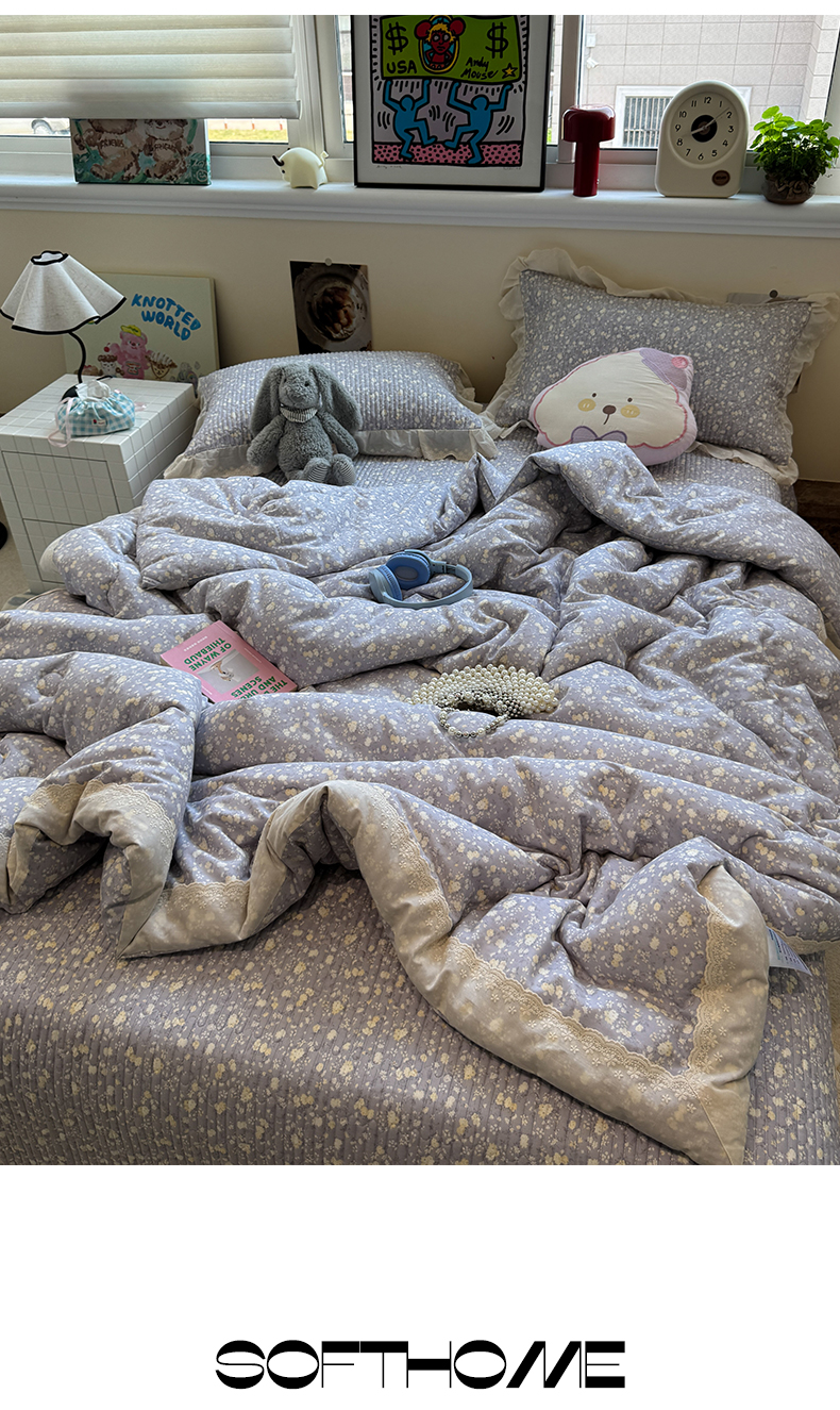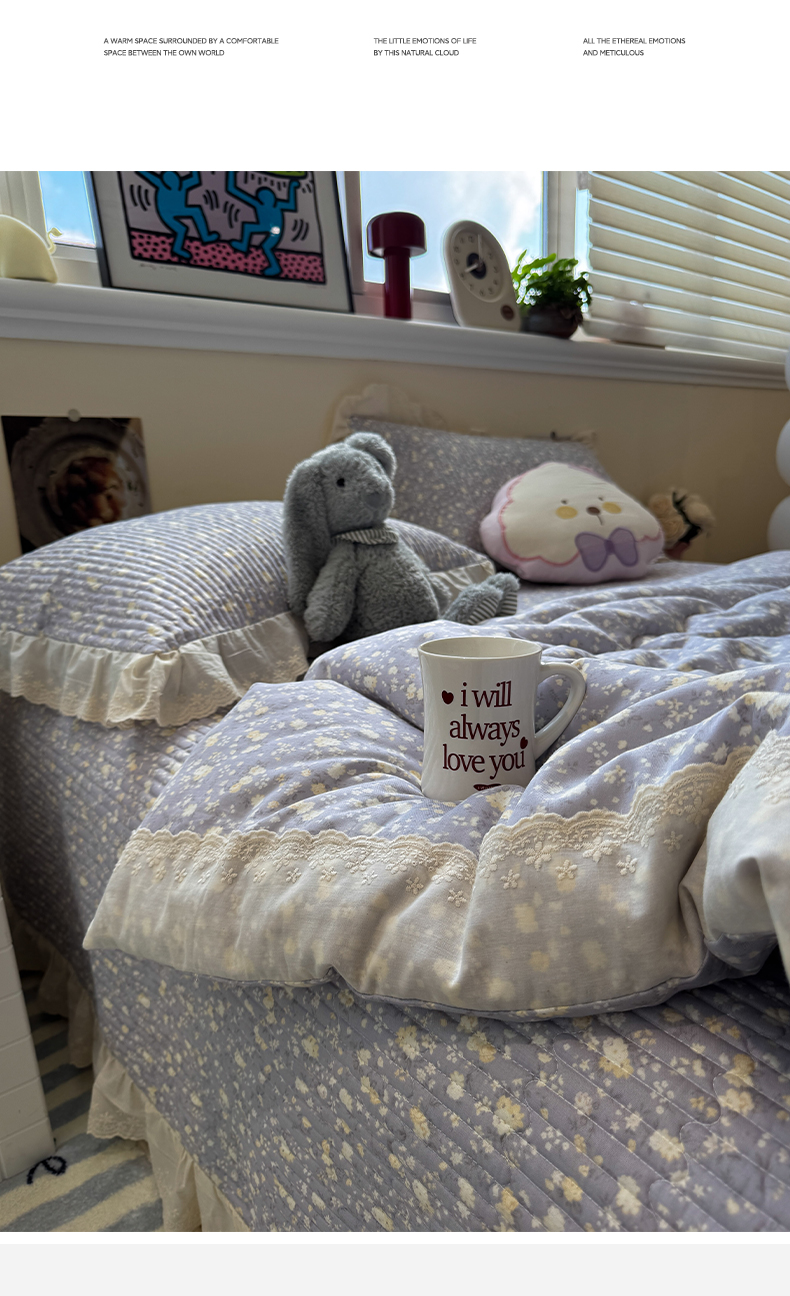 当前位置: 91家纺网 > 商品网购 > 床品套件 > 四件套 > 全棉普通四件套 > 一加一 2025新款田园风全棉纯棉双层纱床盖冬被被子被芯四件套 梦醒花间-灰