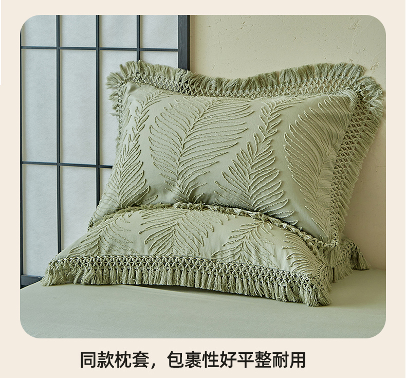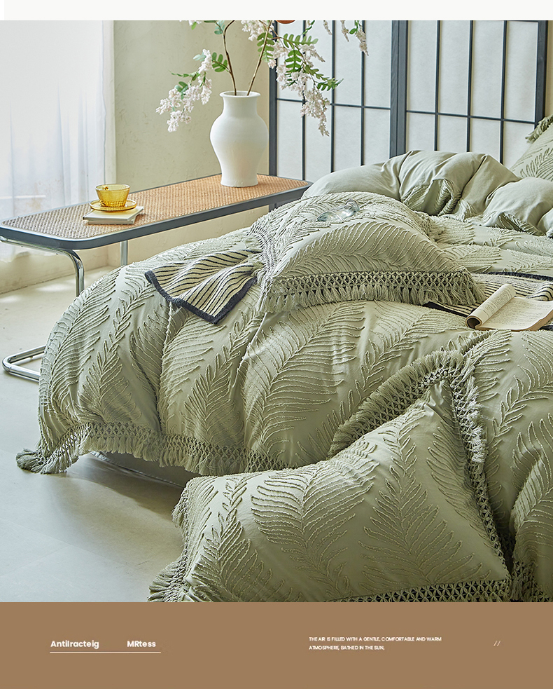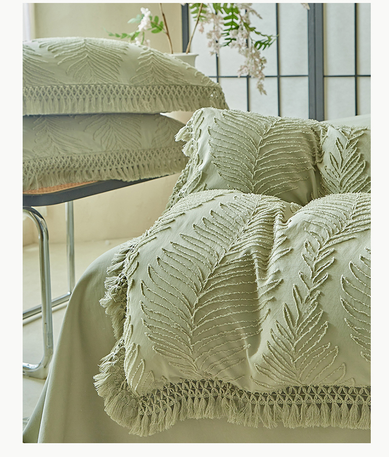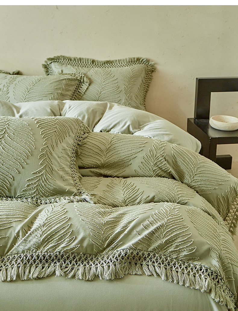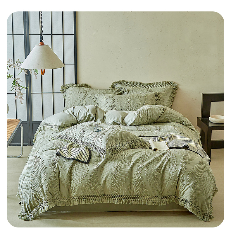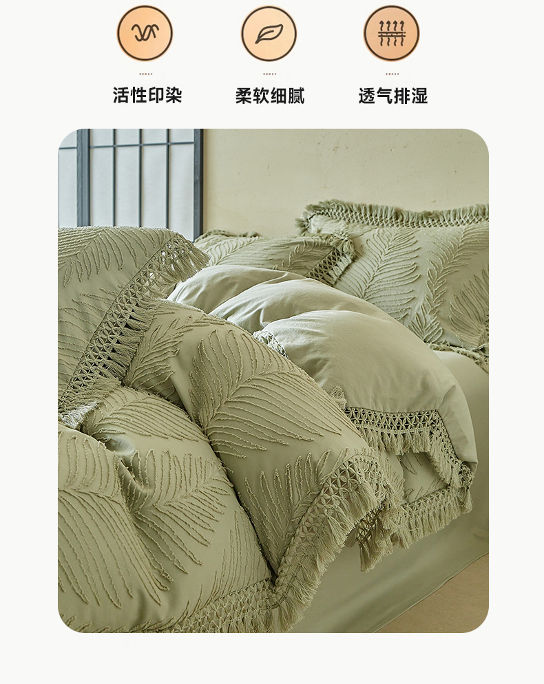 当前位置: 91家纺网 > 商品网购 > 床品套件 > 四件套 > 磨毛活性四件套 > 缘生活 2025新款剪花针叶流苏四件套四季款 民宿首选 剪花针叶旧绿+流苏