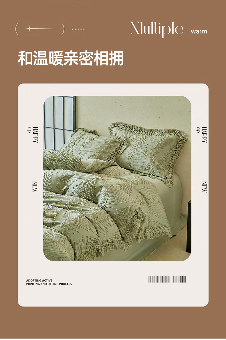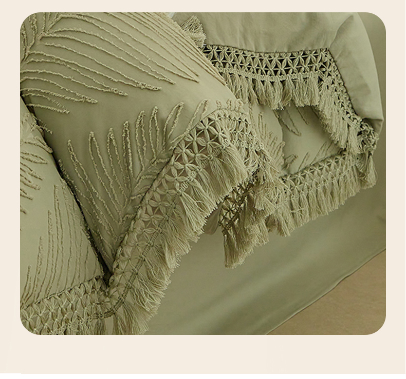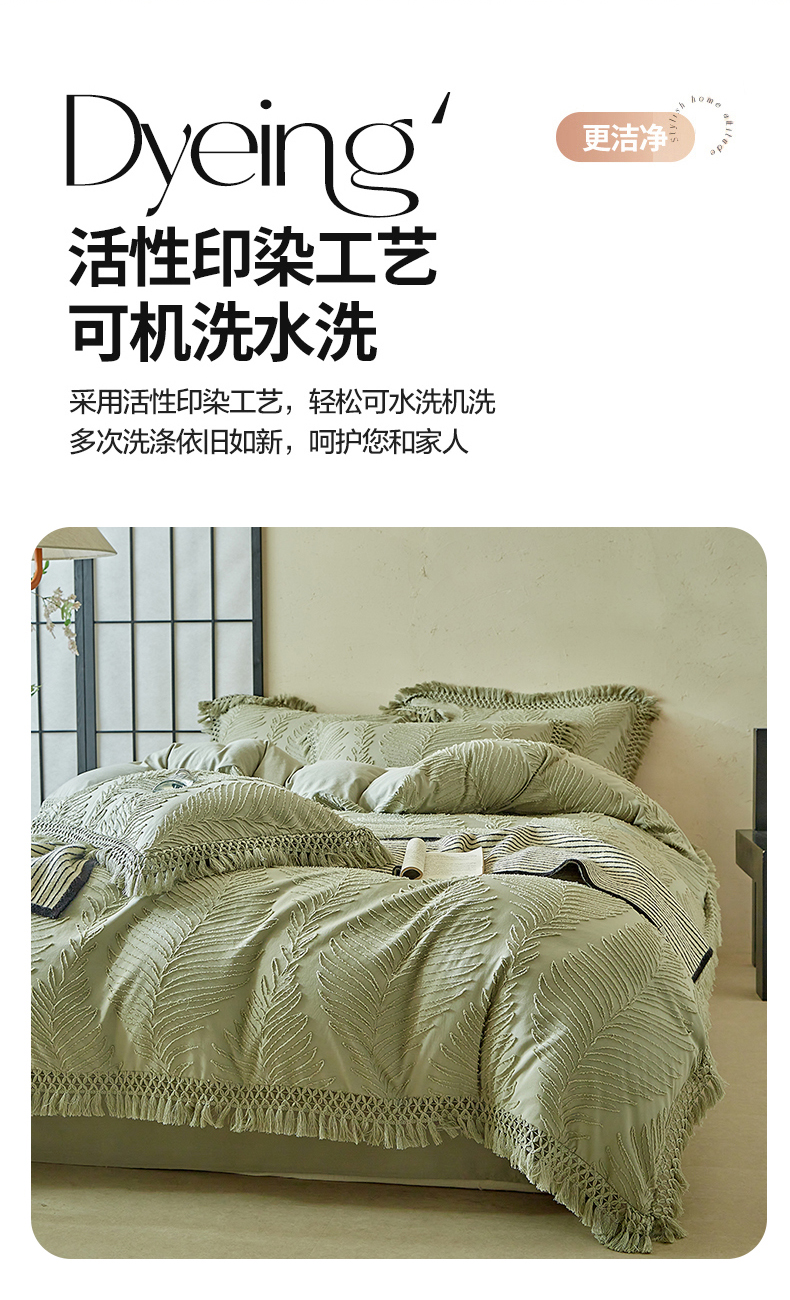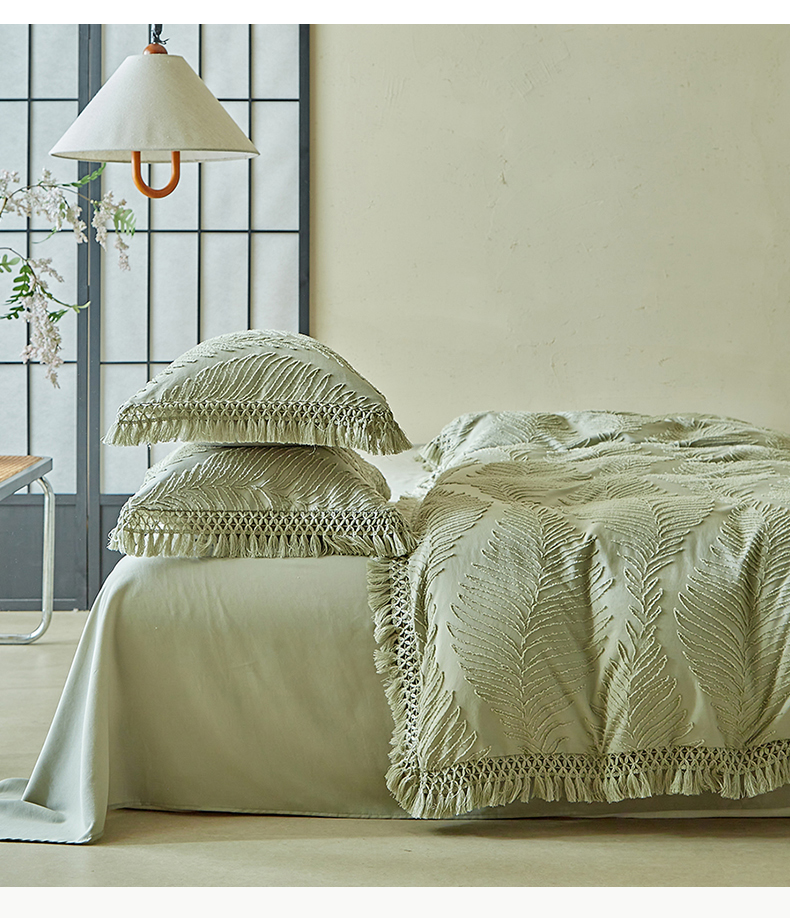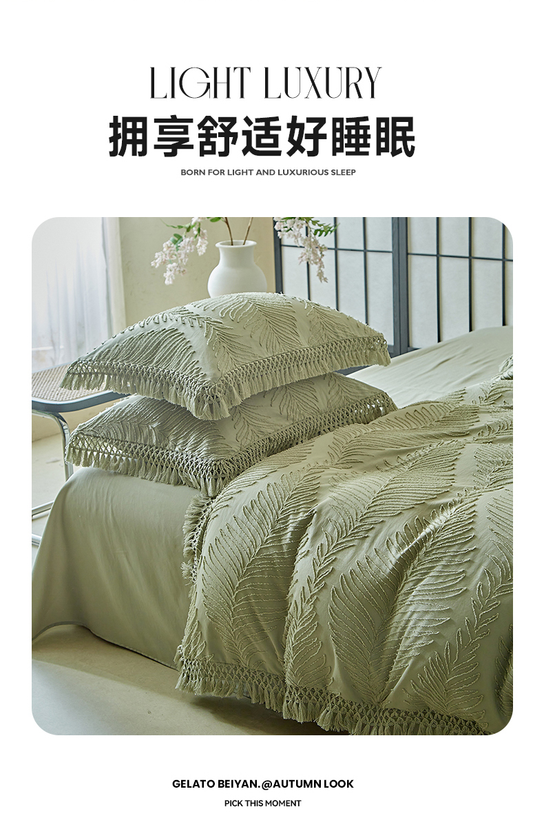 当前位置: 91家纺网 > 商品网购 > 床品套件 > 四件套 > 磨毛活性四件套 > 缘生活 2025新款剪花针叶流苏四件套四季款 民宿首选 剪花针叶旧绿+流苏
