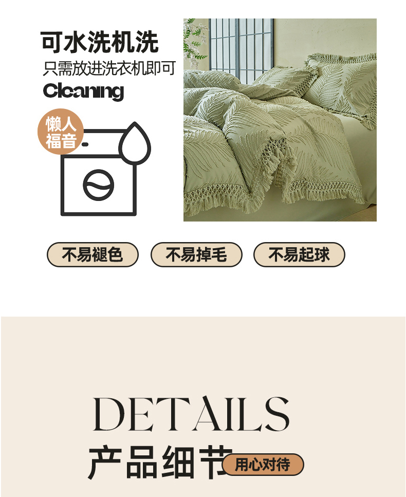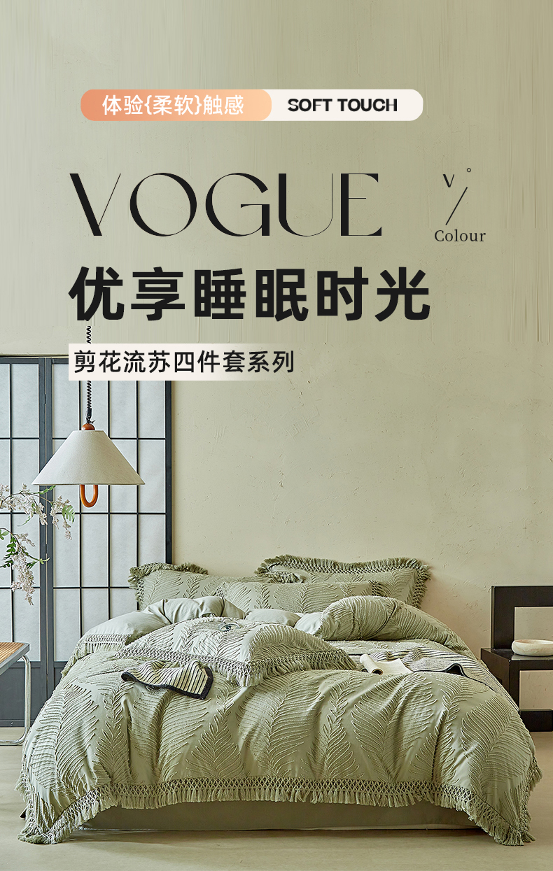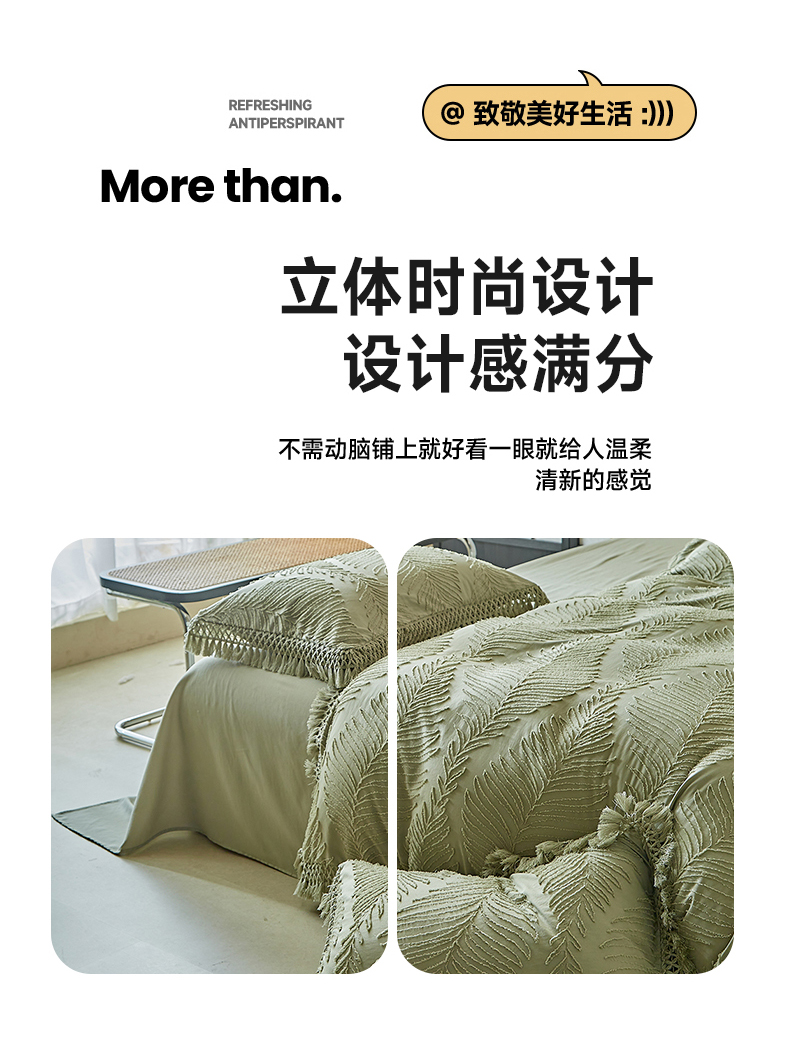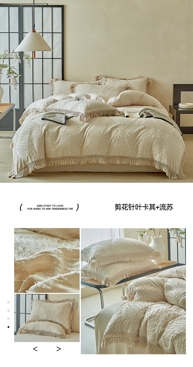 当前位置: 91家纺网 > 商品网购 > 床品套件 > 四件套 > 磨毛活性四件套 > 缘生活 2025新款剪花针叶流苏四件套四季款 民宿首选 剪花针叶旧绿+流苏