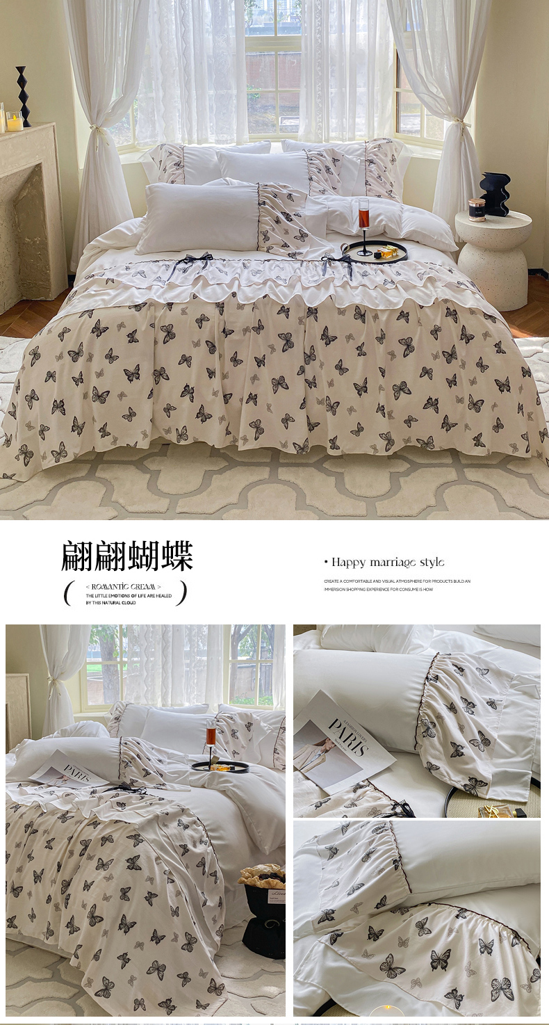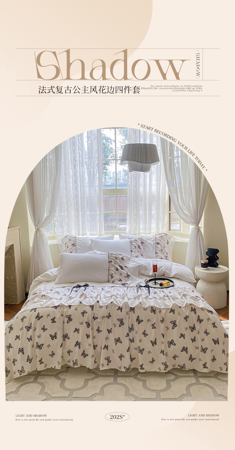 (总)庭笙 2025新款法式复古公主风花边四件套,复古樱桃,翩翩蝶舞,水墨玫瑰