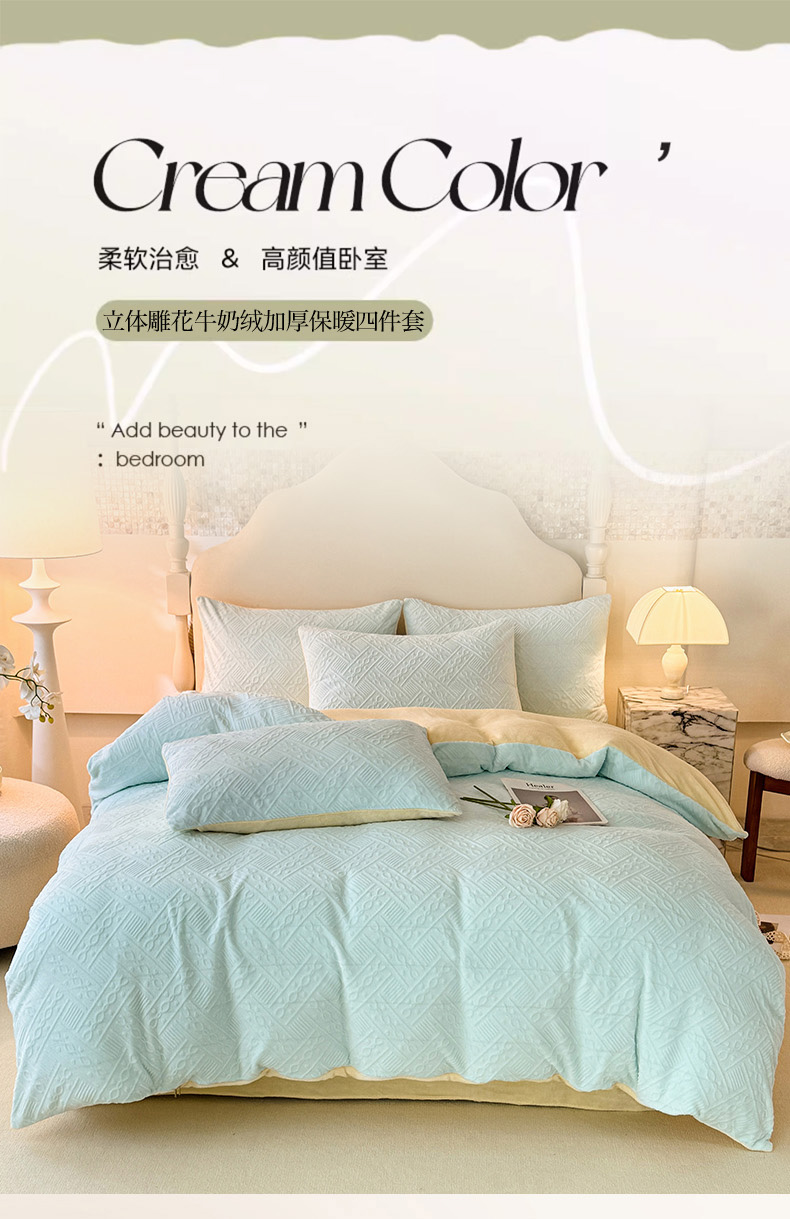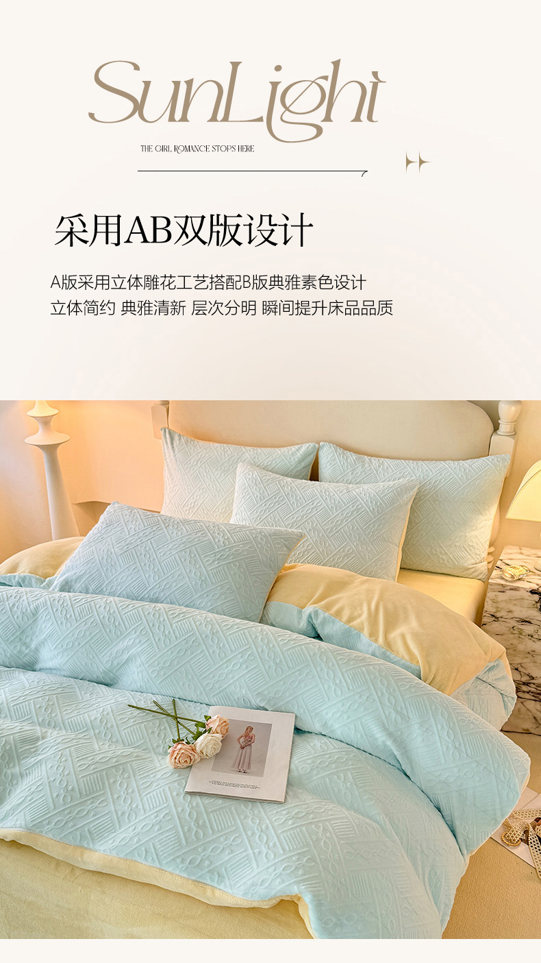 当前位置: 91家纺网 > 商品网购 > 床品套件 > 四件套 > 牛奶绒四件套 > 眠博士 2025新款立体雕花牛奶绒加厚保暖四件套-安吉拉-芙蔓-赛琳 浮雕绒-安吉拉蓝黄