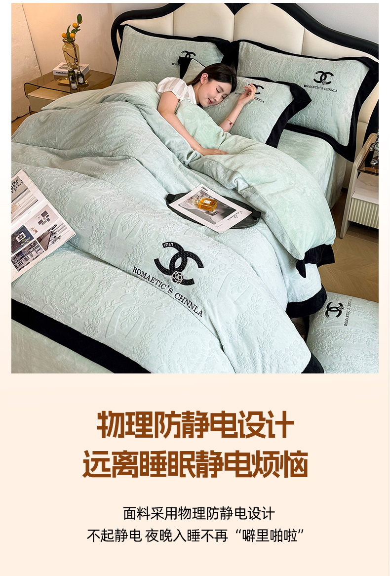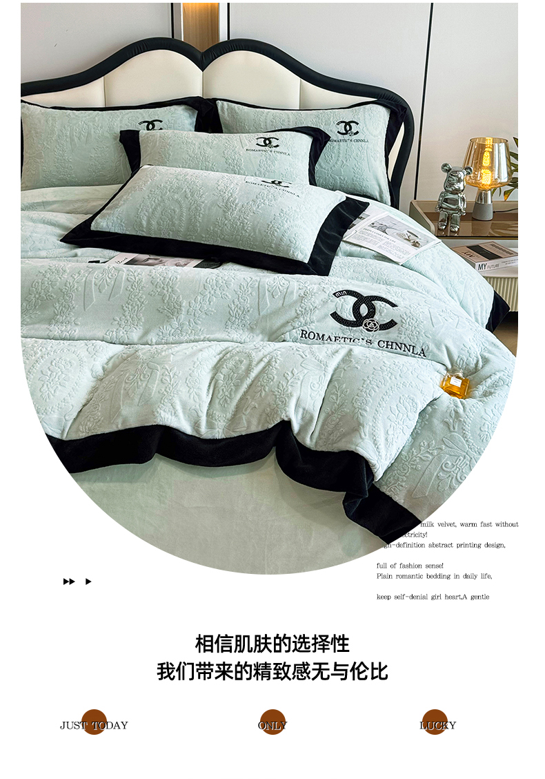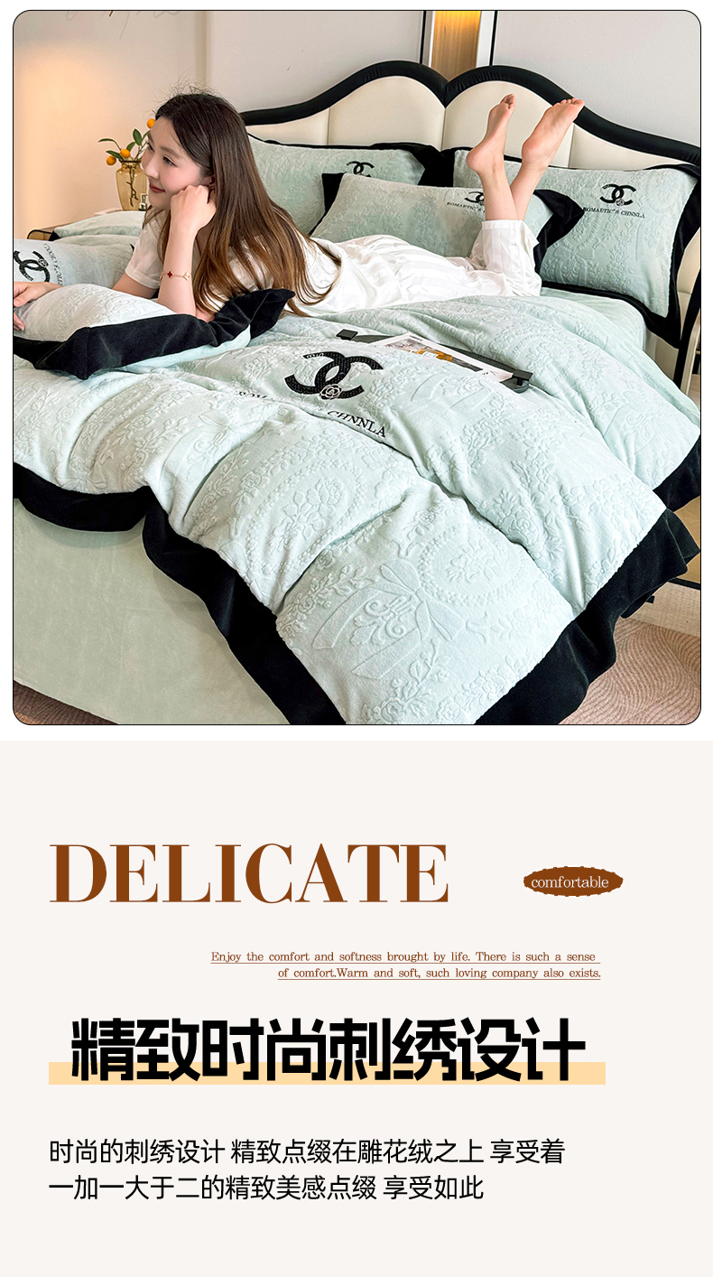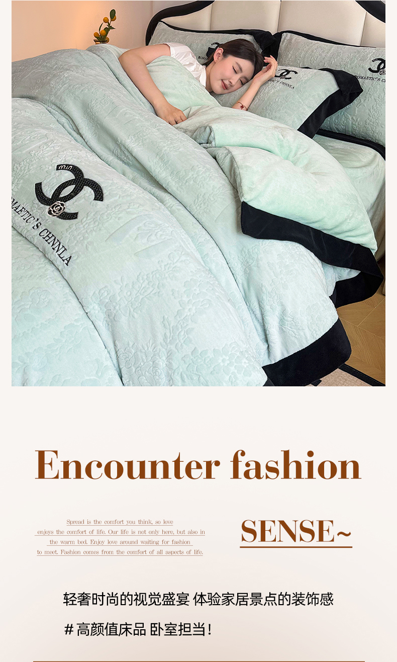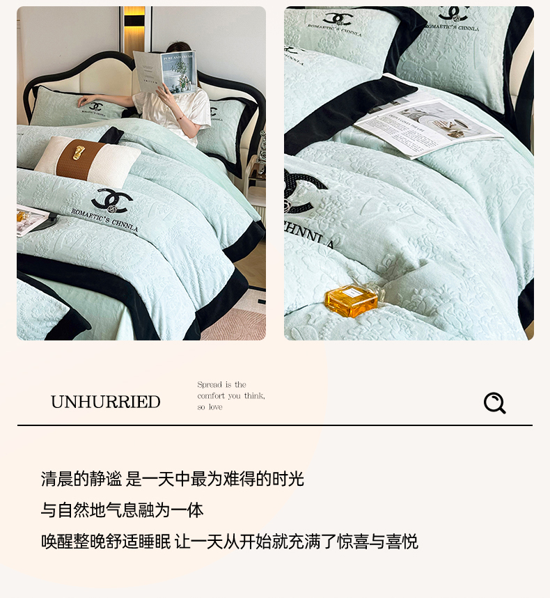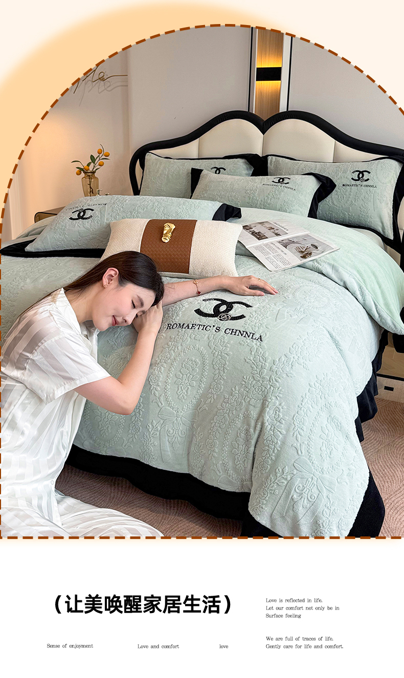 当前位置: 91家纺网 > 商品网购 > 床品套件 > 四件套 > 牛奶绒四件套 > 言熙居家纺 2025新款全消光240克雕花牛奶绒四件套一套重9斤小香风系列 小香风-薄荷绿