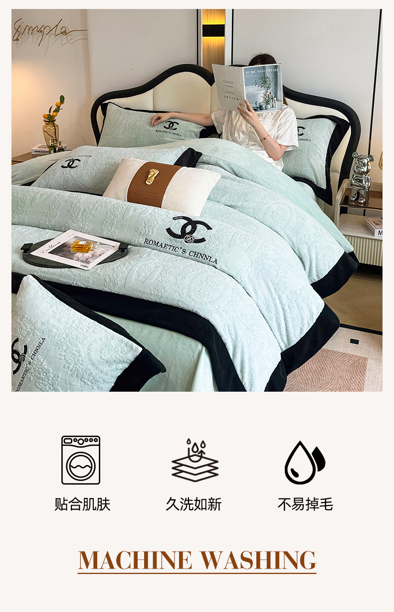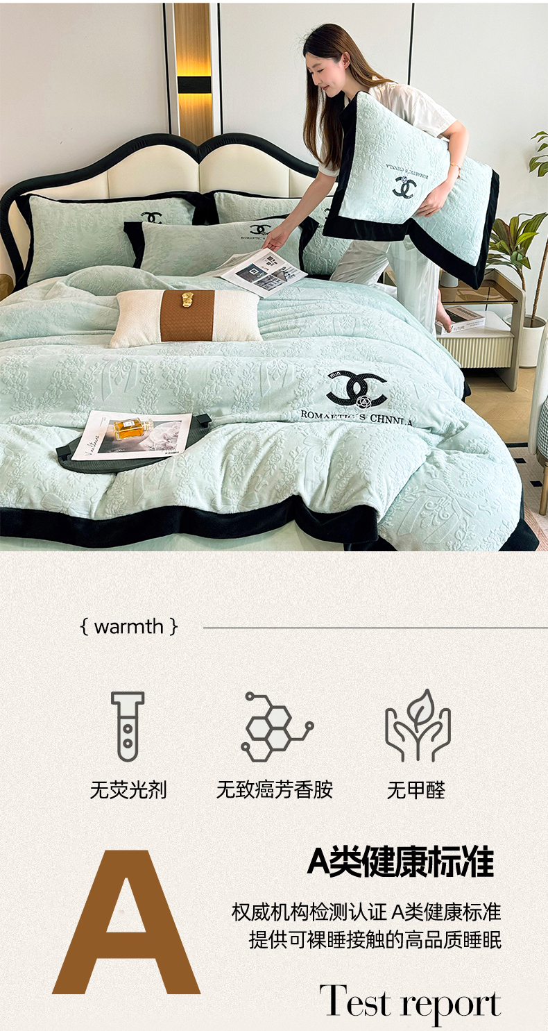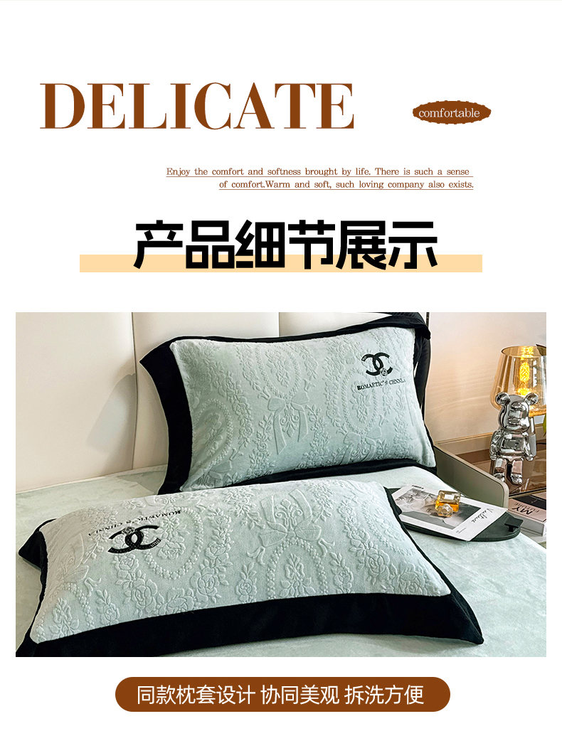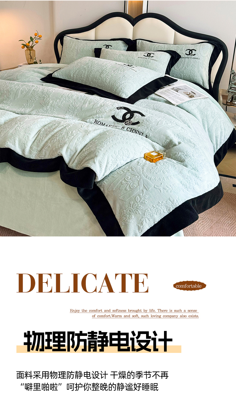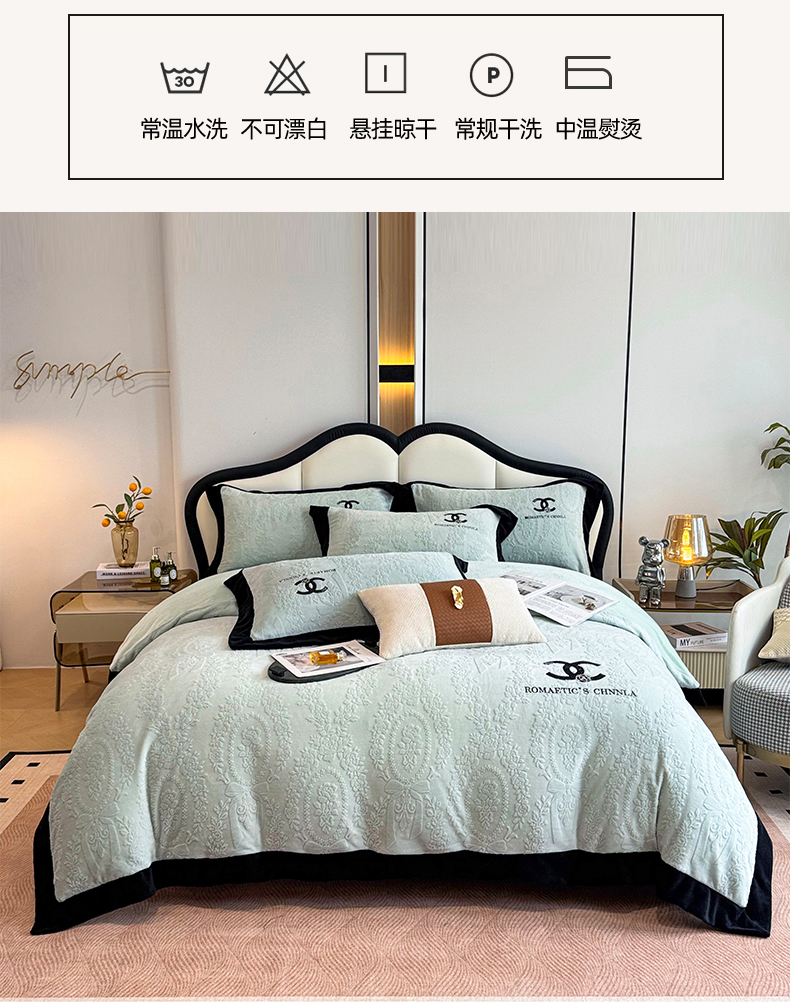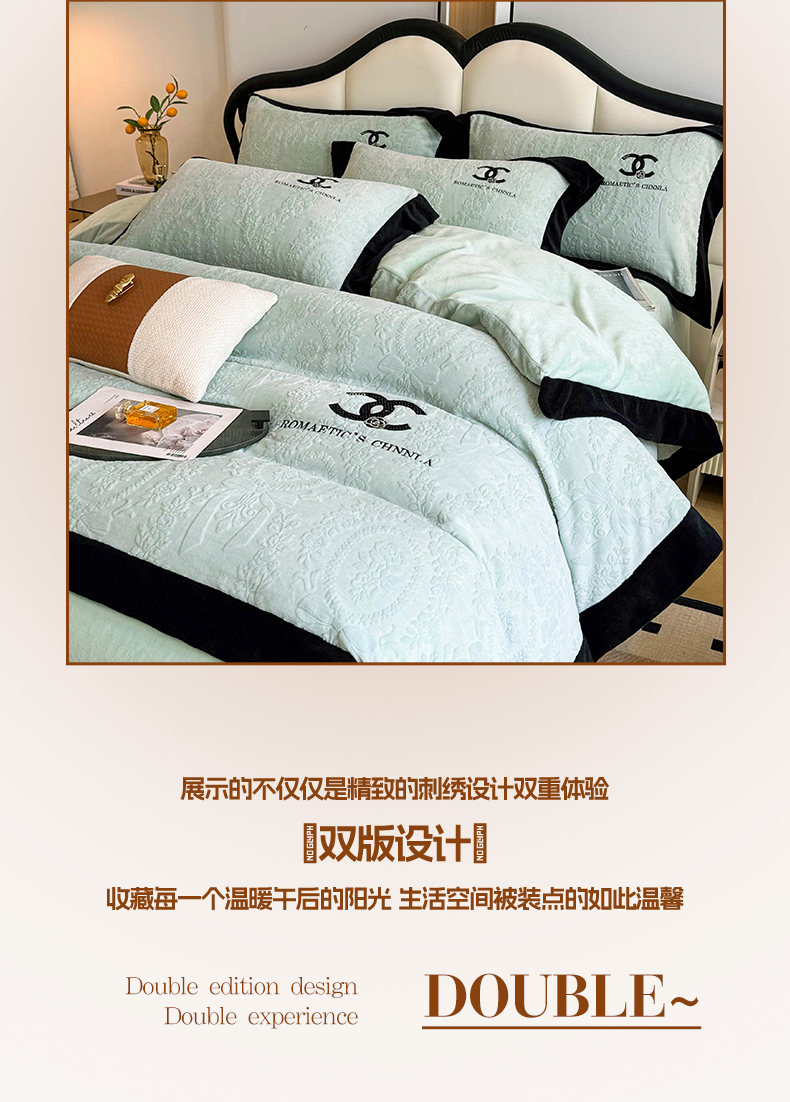 当前位置: 91家纺网 > 商品网购 > 床品套件 > 四件套 > 牛奶绒四件套 > 言熙居家纺 2025新款全消光240克雕花牛奶绒四件套一套重9斤小香风系列 小香风-薄荷绿