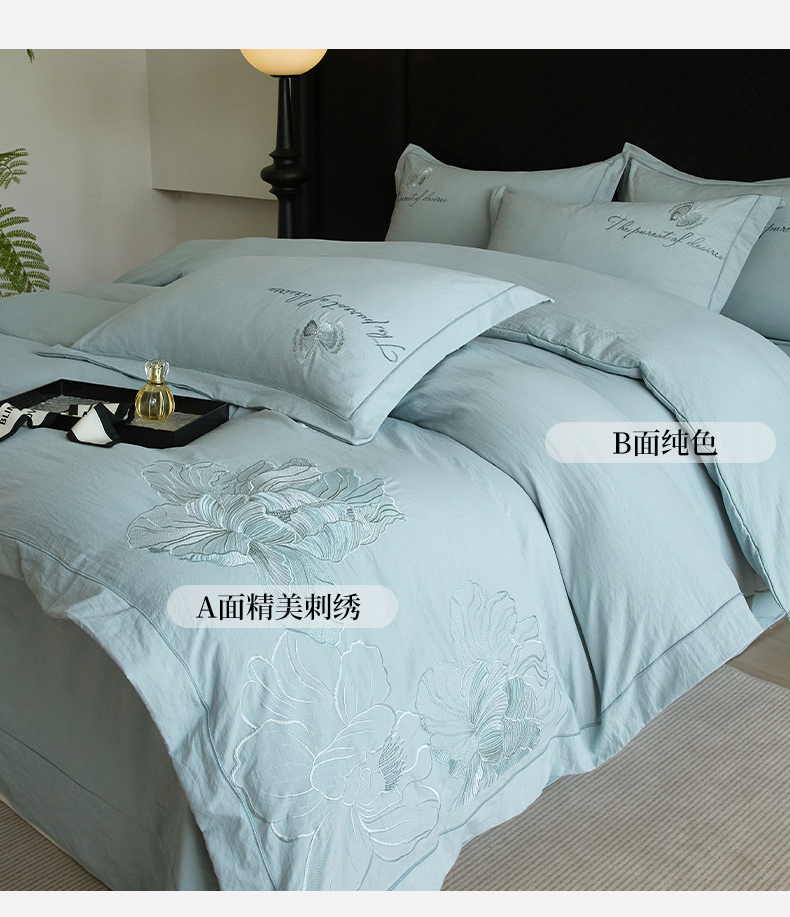 (总)金纱玉纺家纺 2025新款水洗棉工艺刺绣四件套,沁颜花开-宾利蓝,沁颜花开-豆绿,沁颜花开-粉豆沙,沁颜花开-中灰,沁颜花开-紫,沁颜花开-紫豆沙,恬静时光-宾利蓝,恬静时光-豆绿,恬静时光-粉豆沙,恬静时光-中灰,恬静时光-紫,恬静时光-紫豆沙