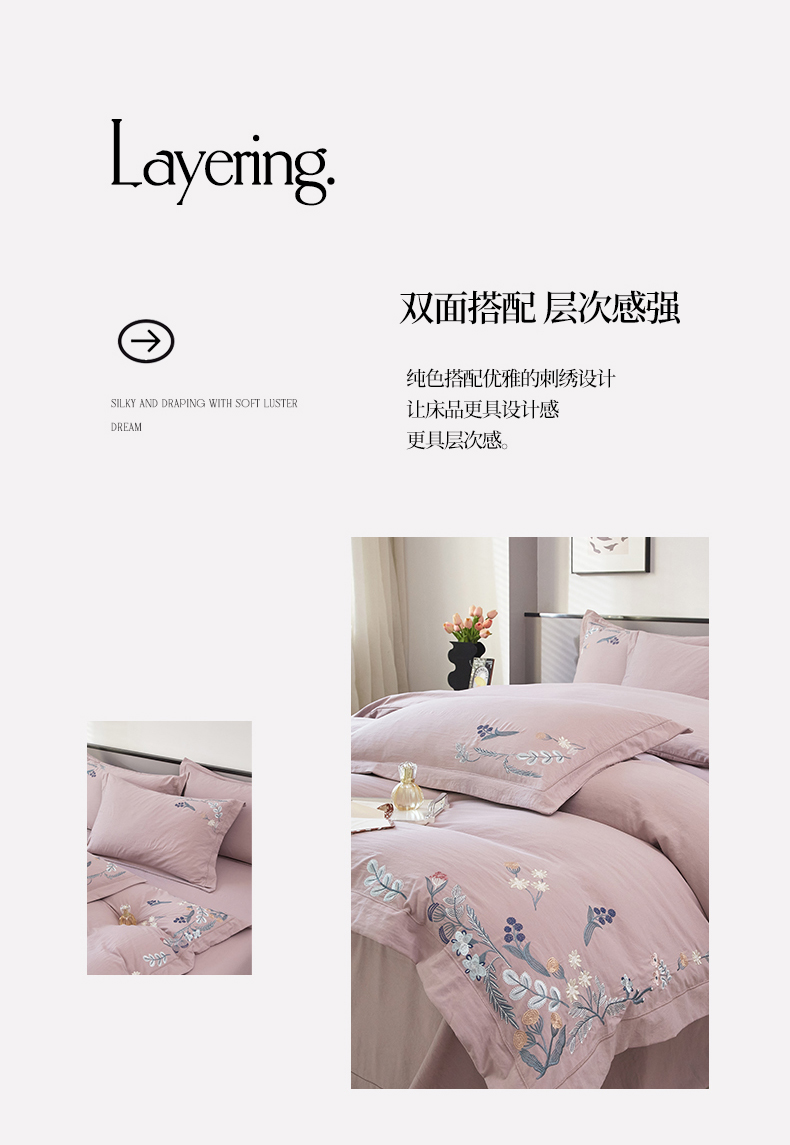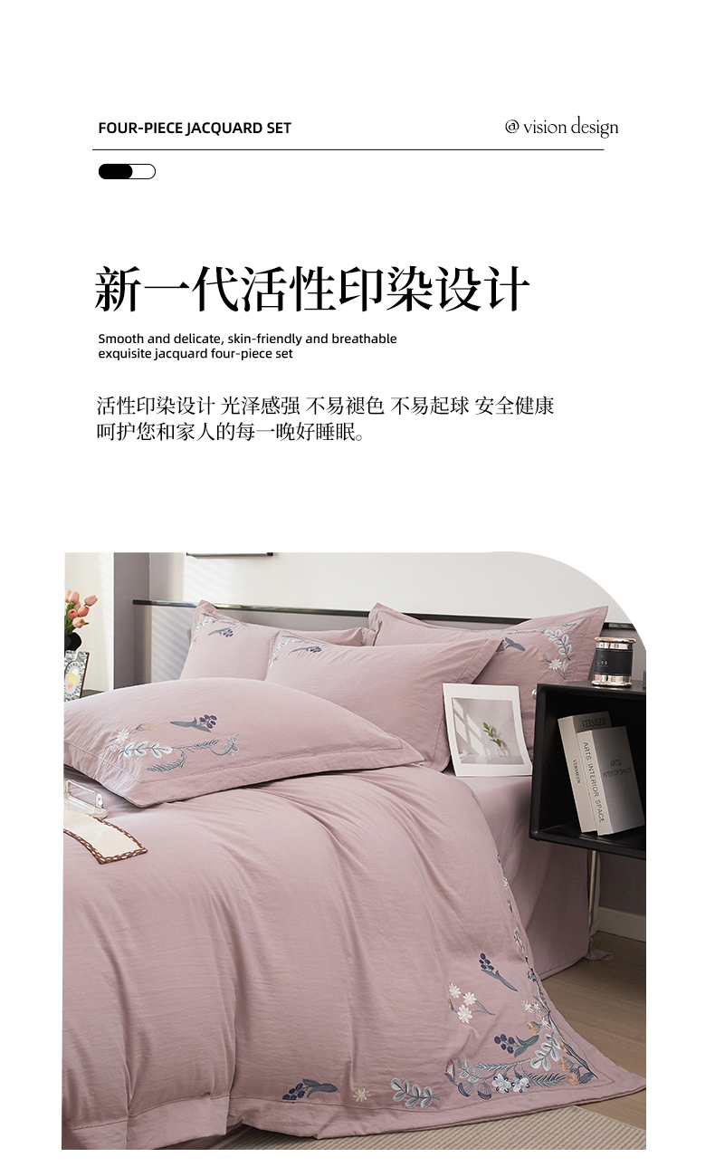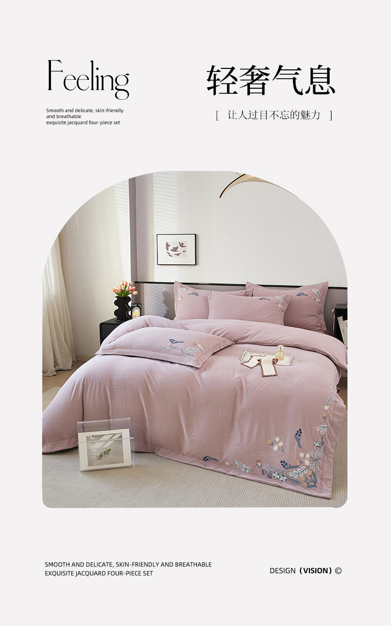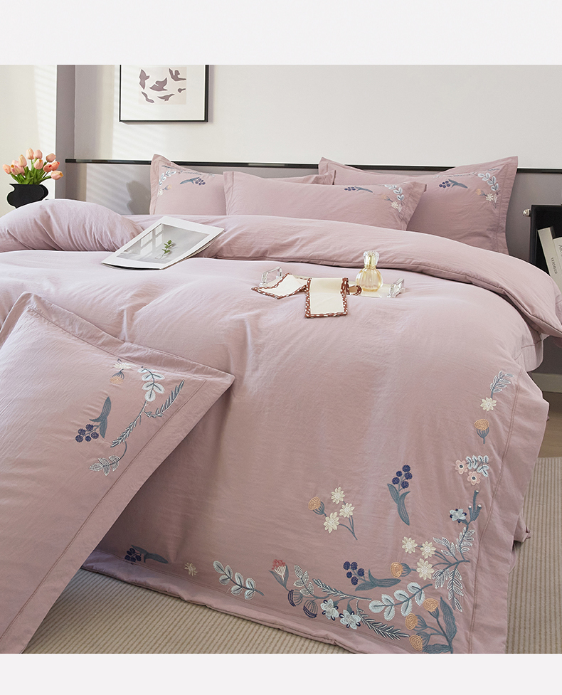 金纱玉纺家纺 2025新款水洗棉工艺刺绣四件套 恬静时光-紫豆沙