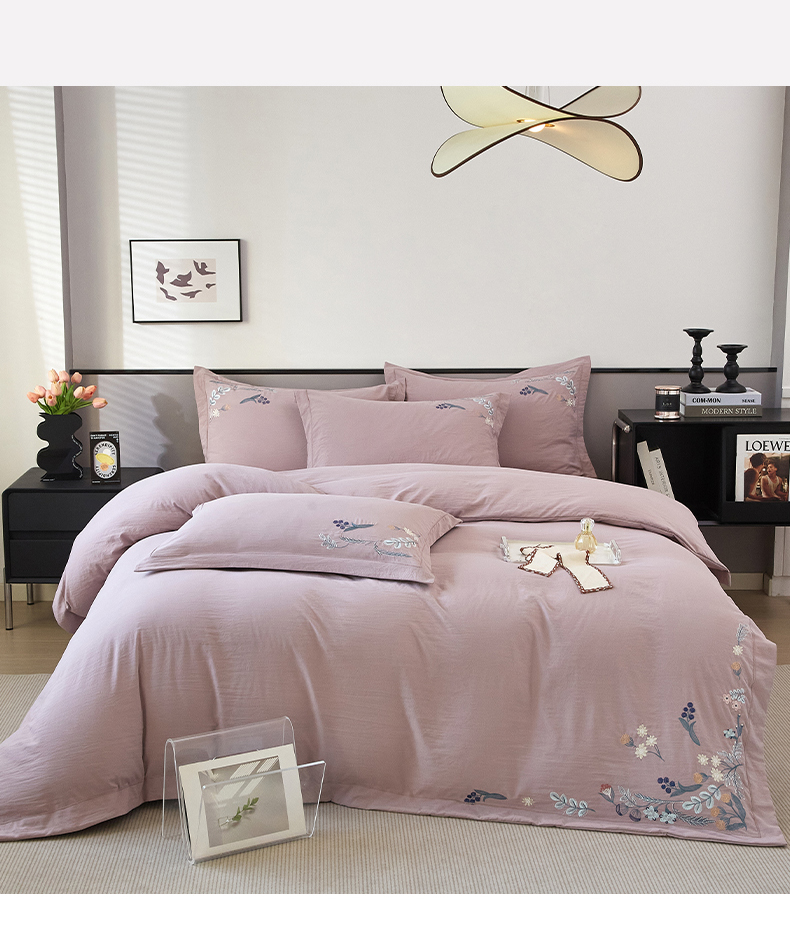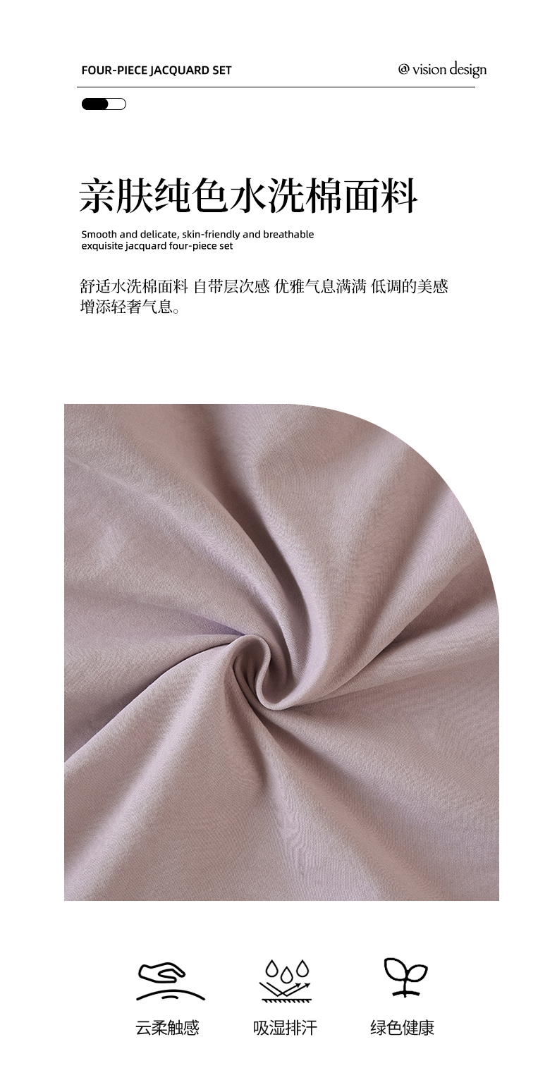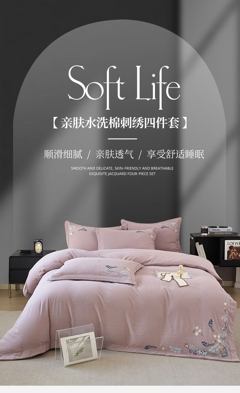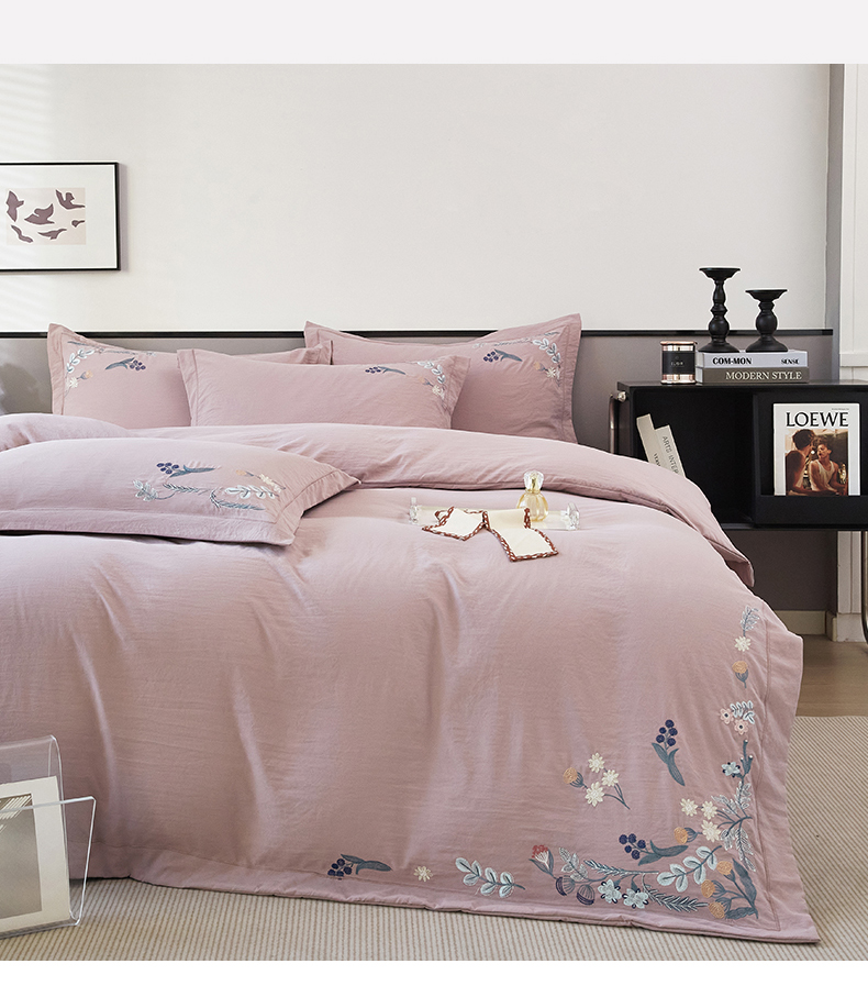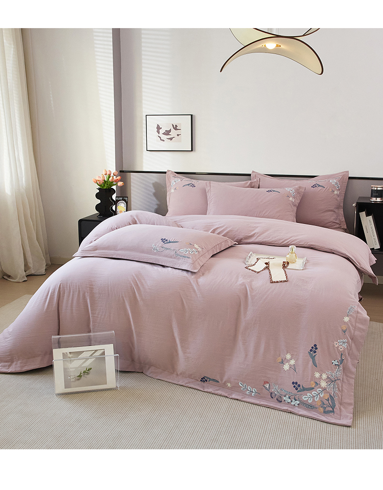 商品名称:金纱玉纺家纺 2025新款水洗棉工艺刺绣四件套 恬静时光-紫豆沙